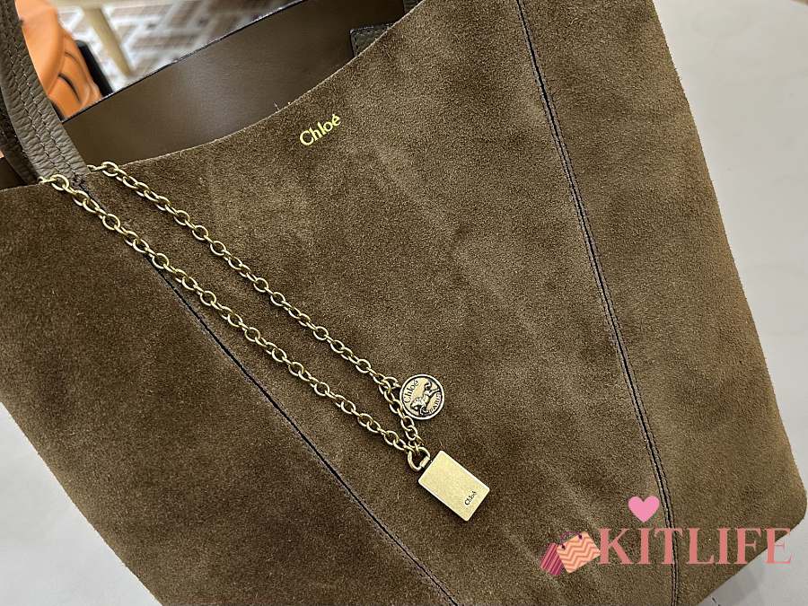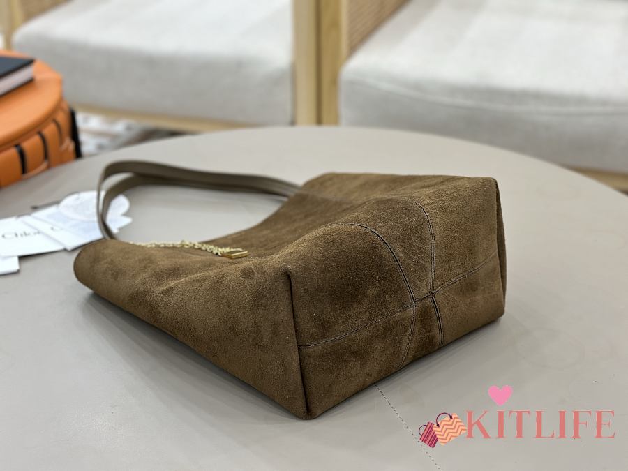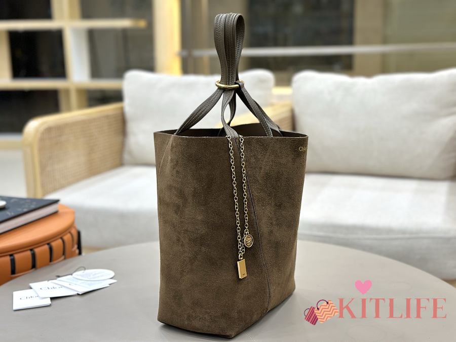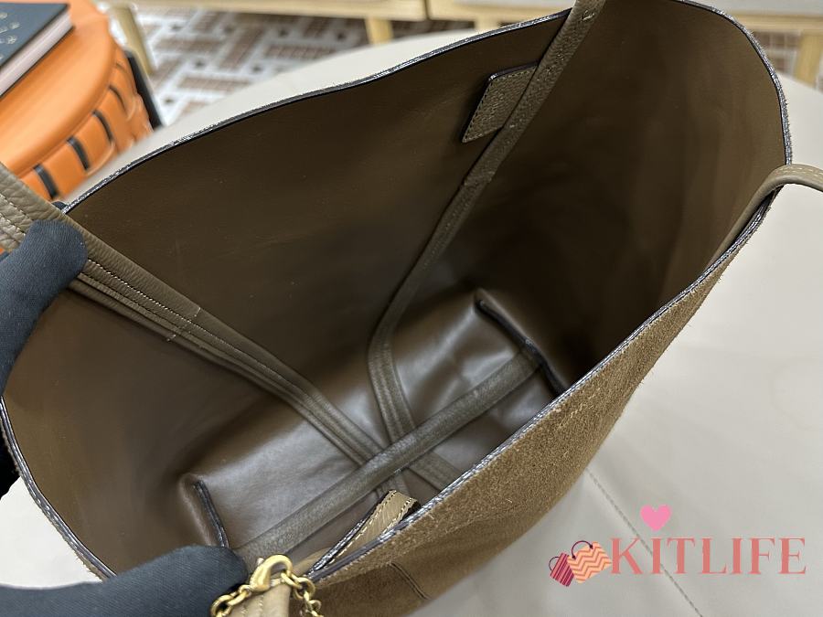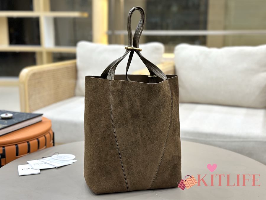 Kitlife Chloe Spin Tote Medium Bag Olive Brown Suede 27x30x14cm
