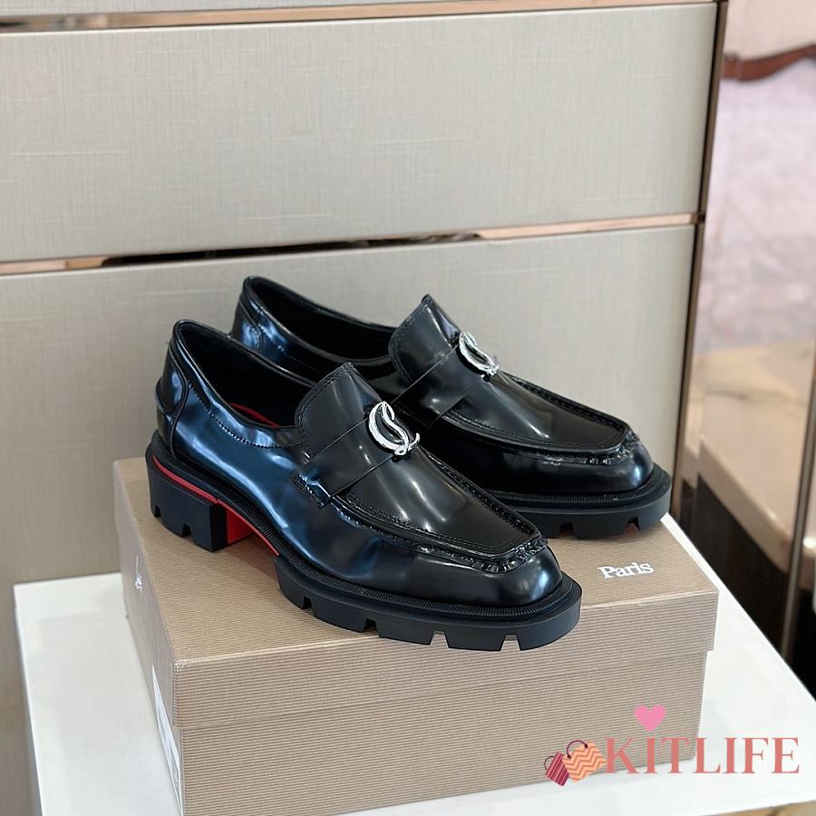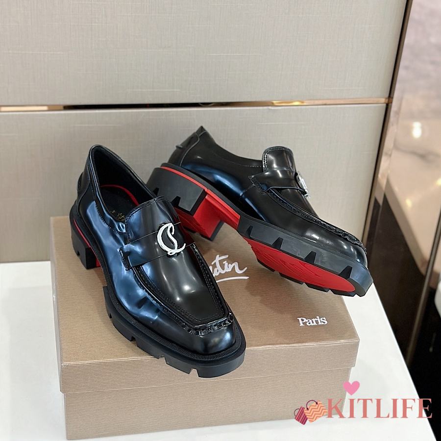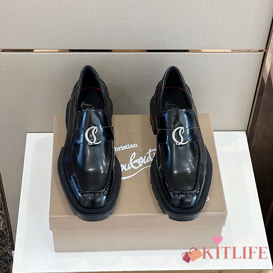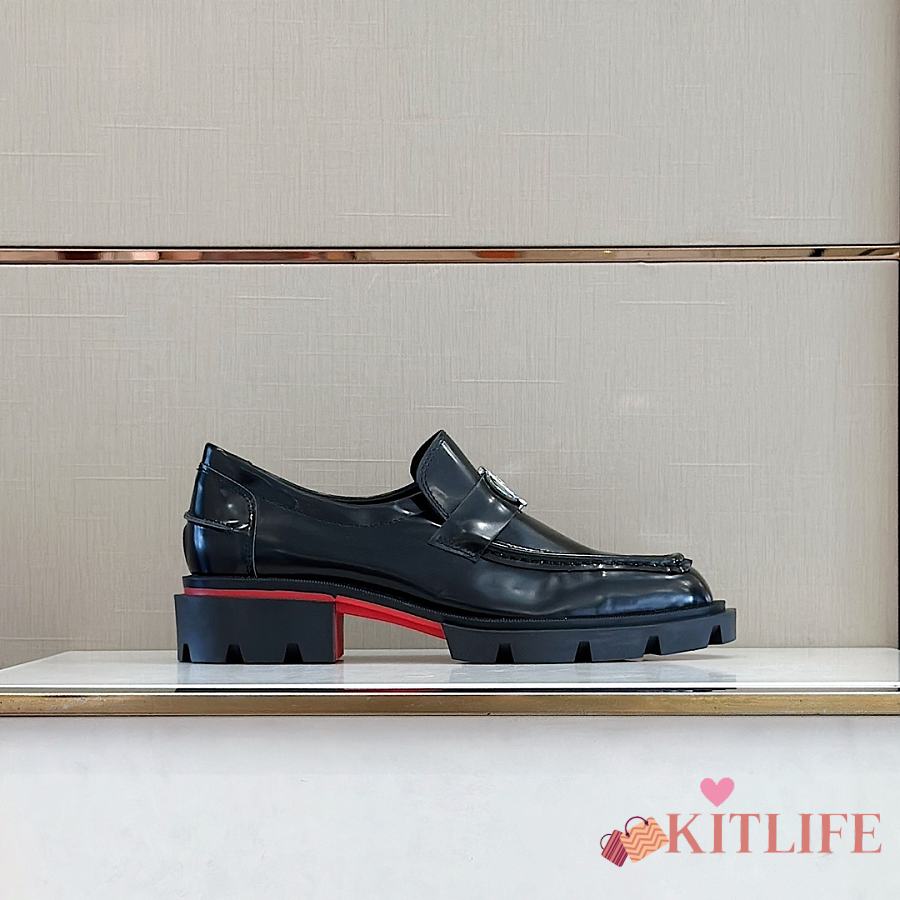 Kitlife Christian Louboutin CL Moc Lug Black Leather Loafers