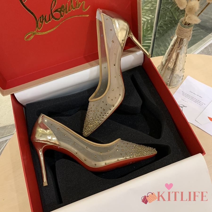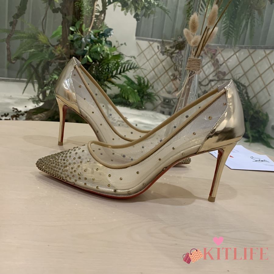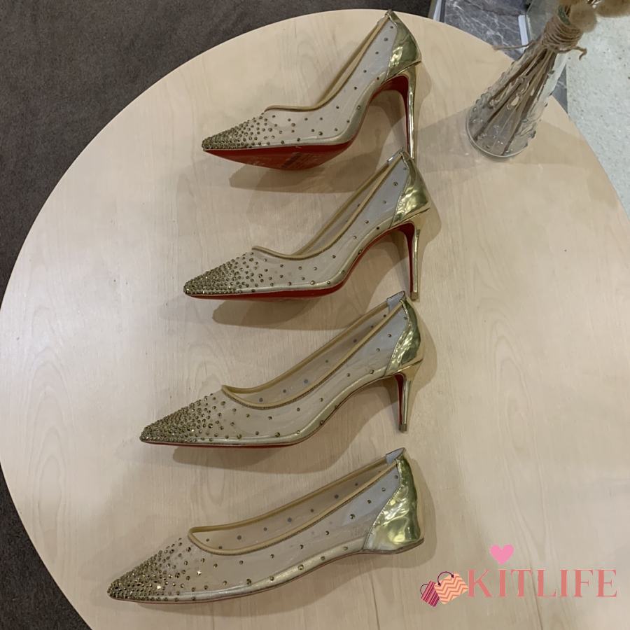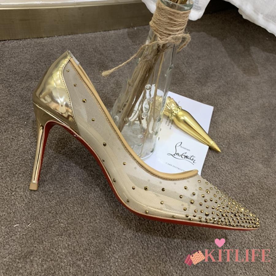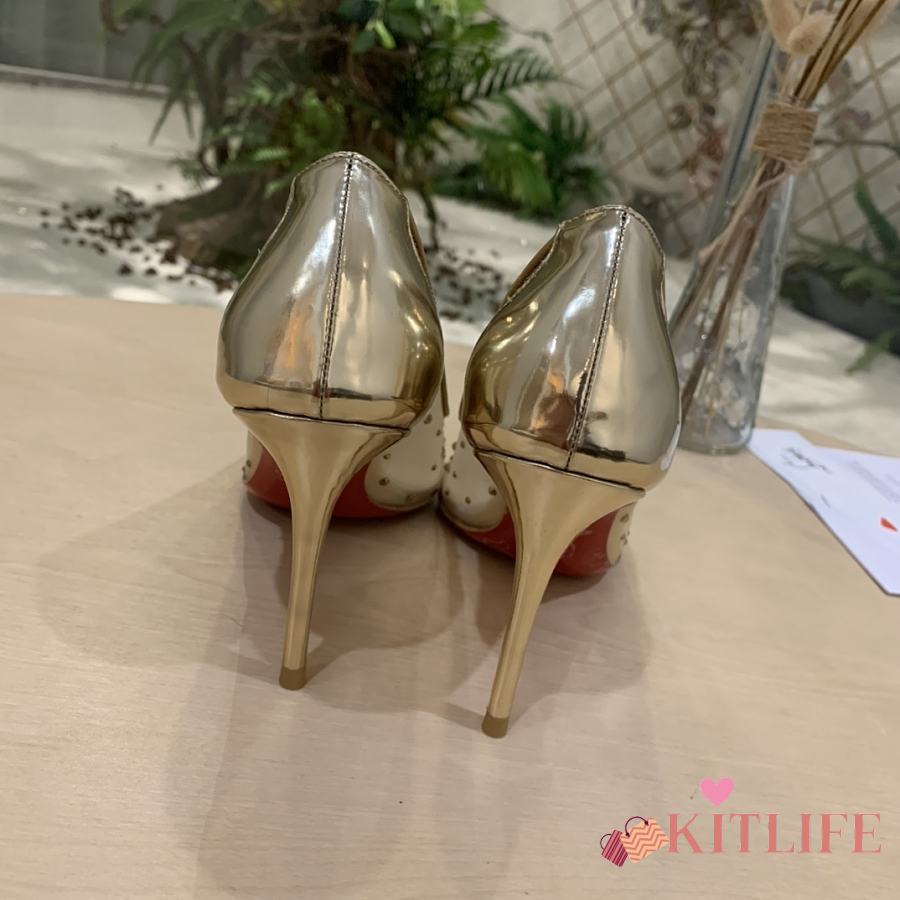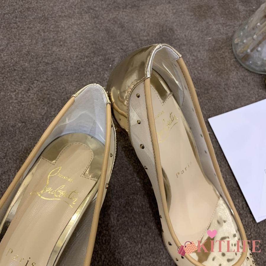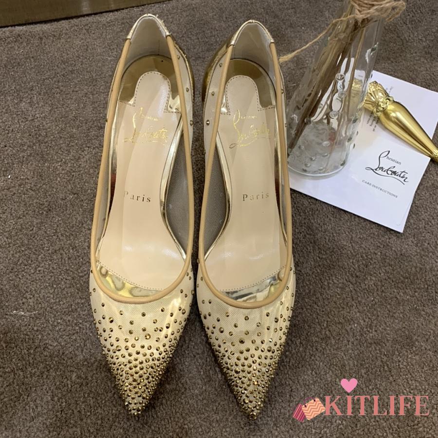 Kitlife Christian Louboutin Follies Mesh and Suede Gold Pumps