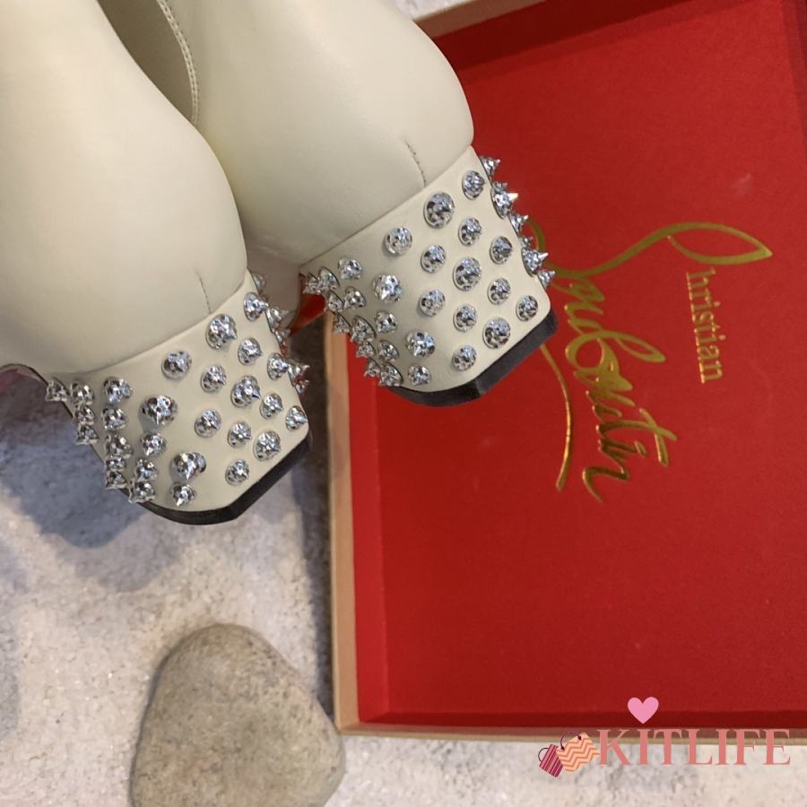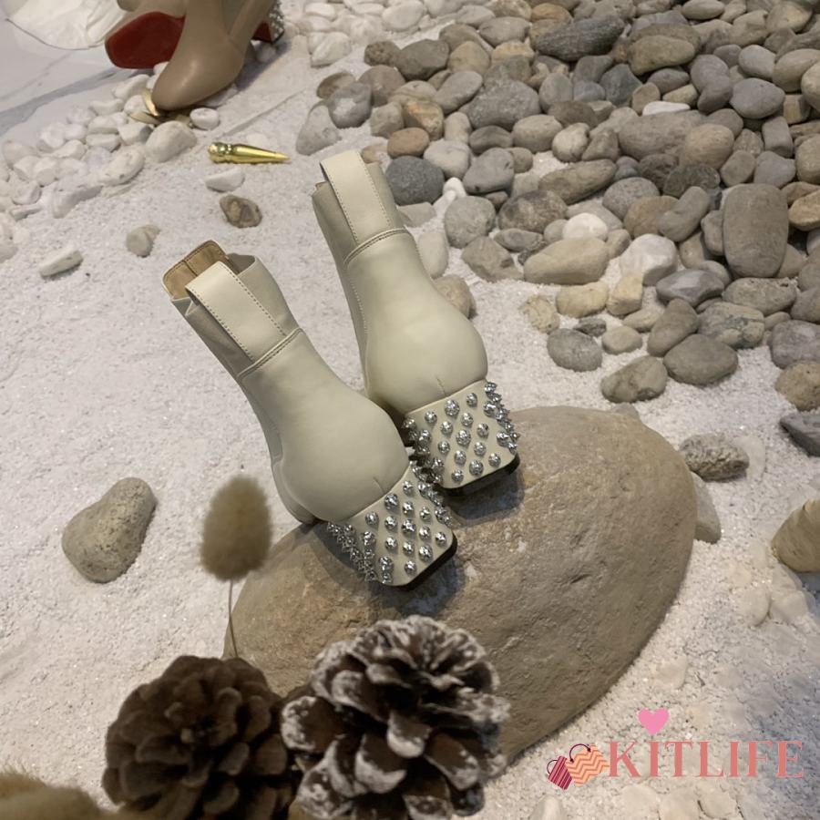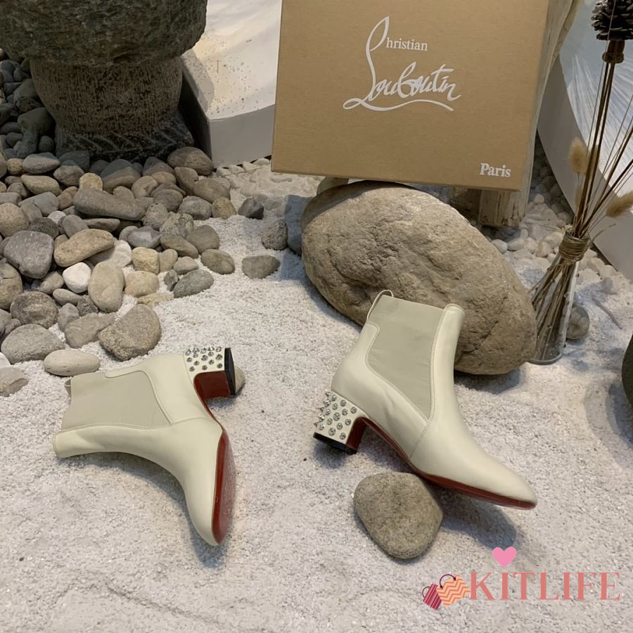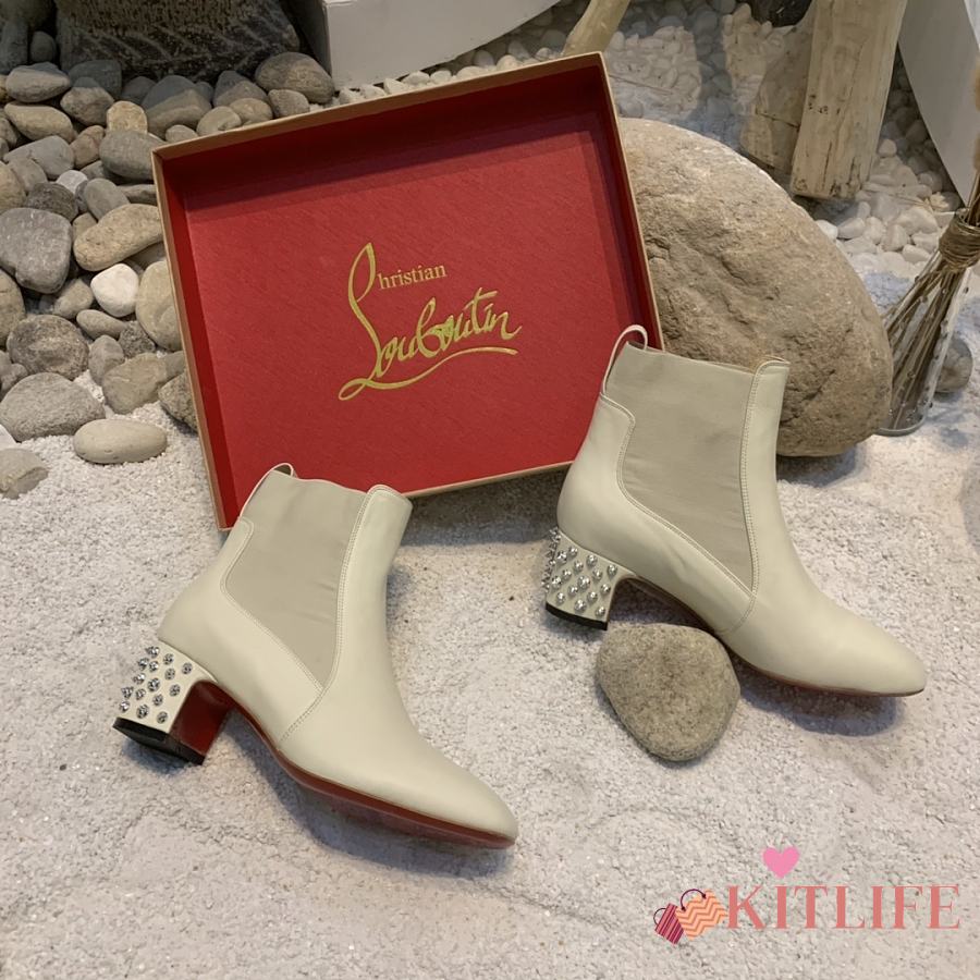 Kitlife Christian Louboutin Spike Accents Leather Chelsea Boots Cream