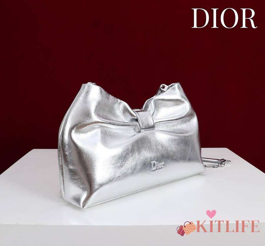 Kitlife Dior 2026 Bow Silver Lambskin Bag 27×8×18cm