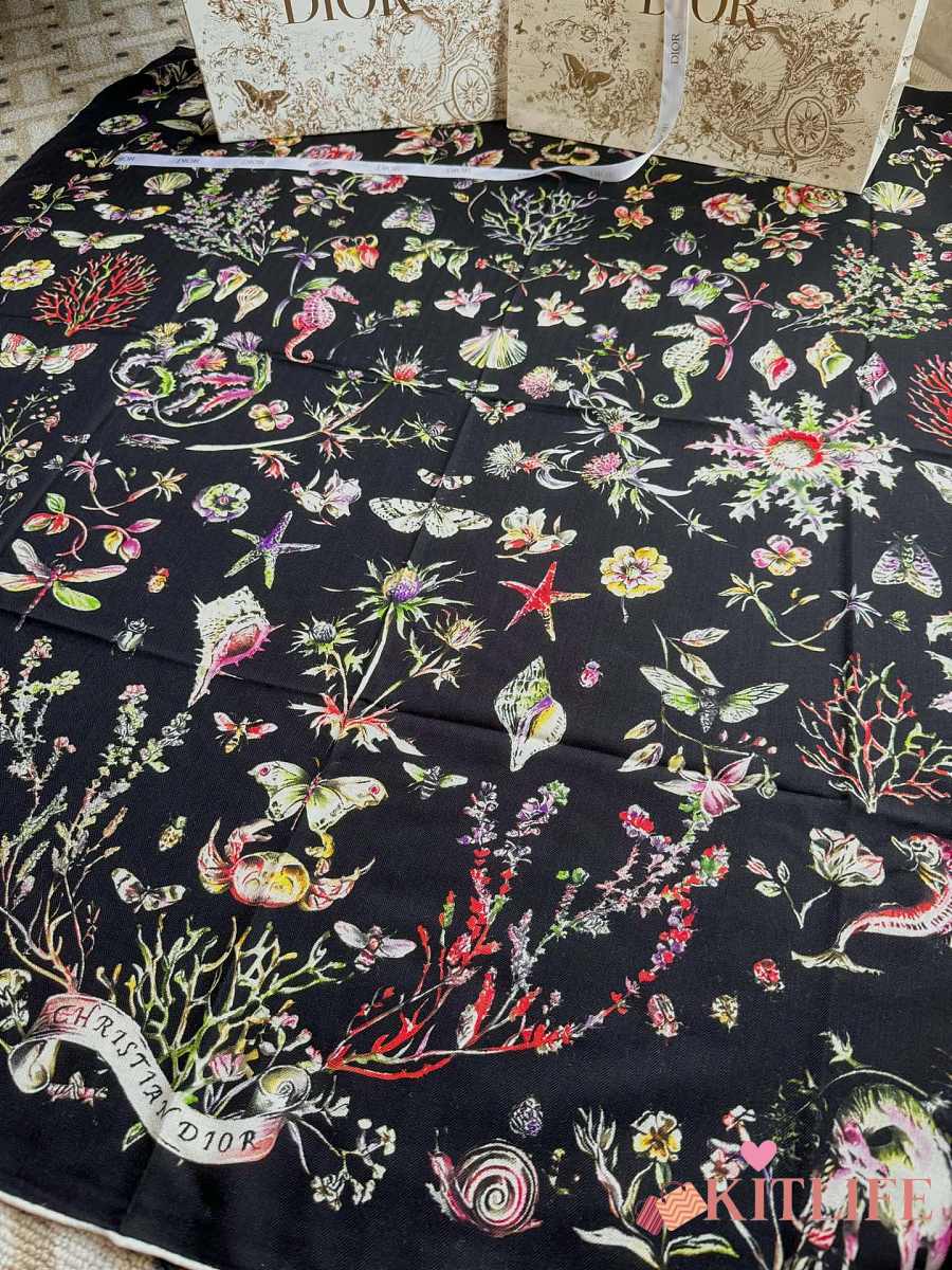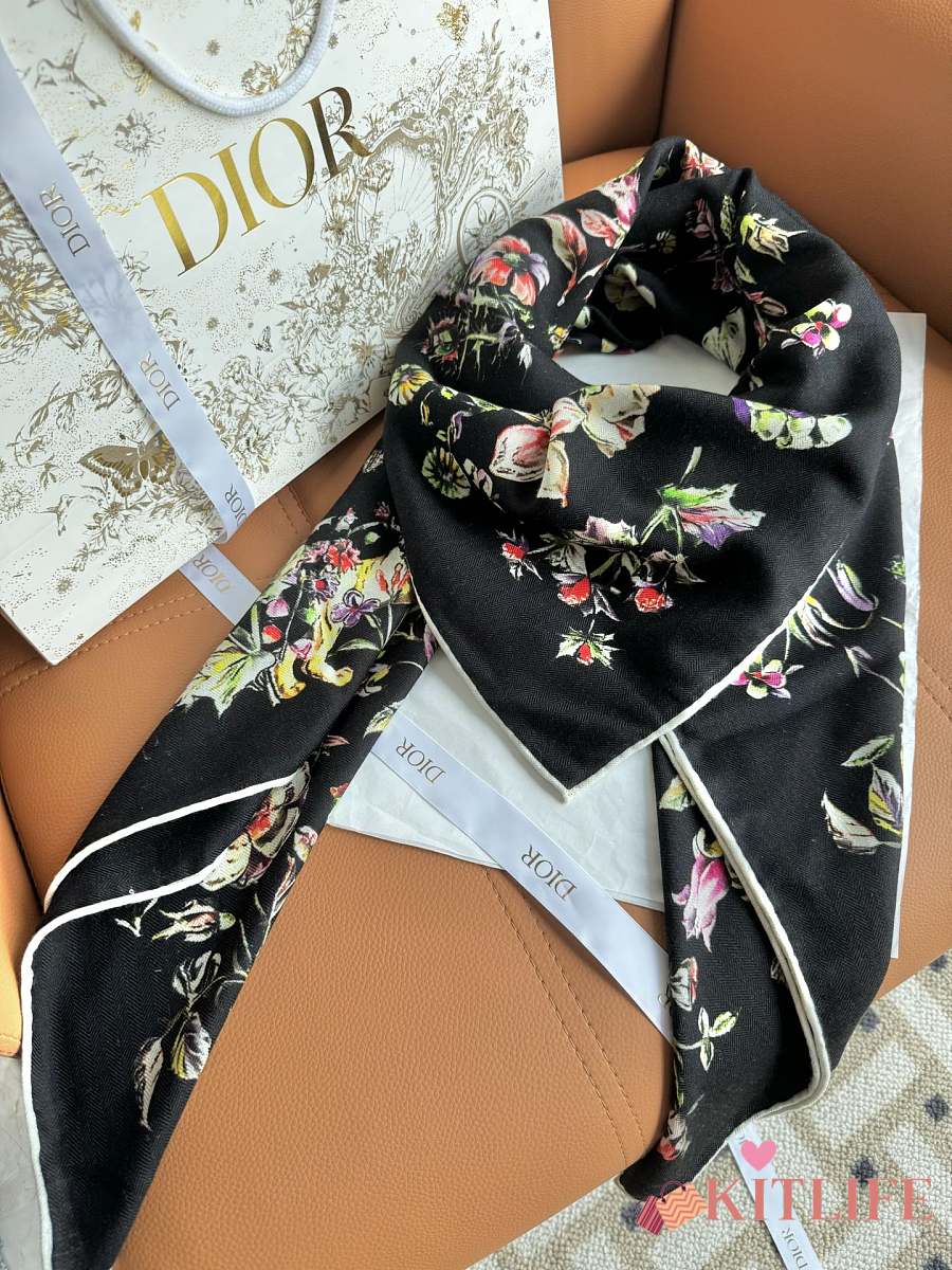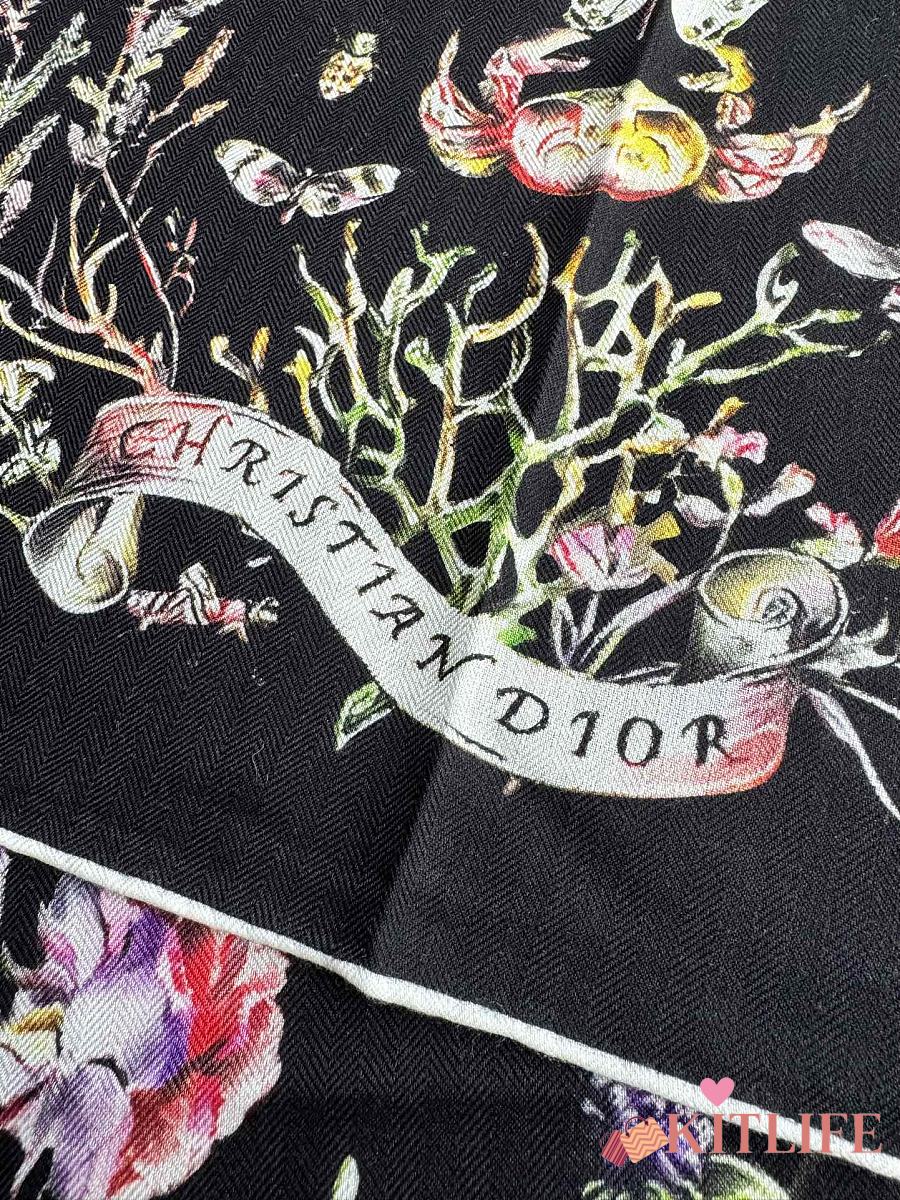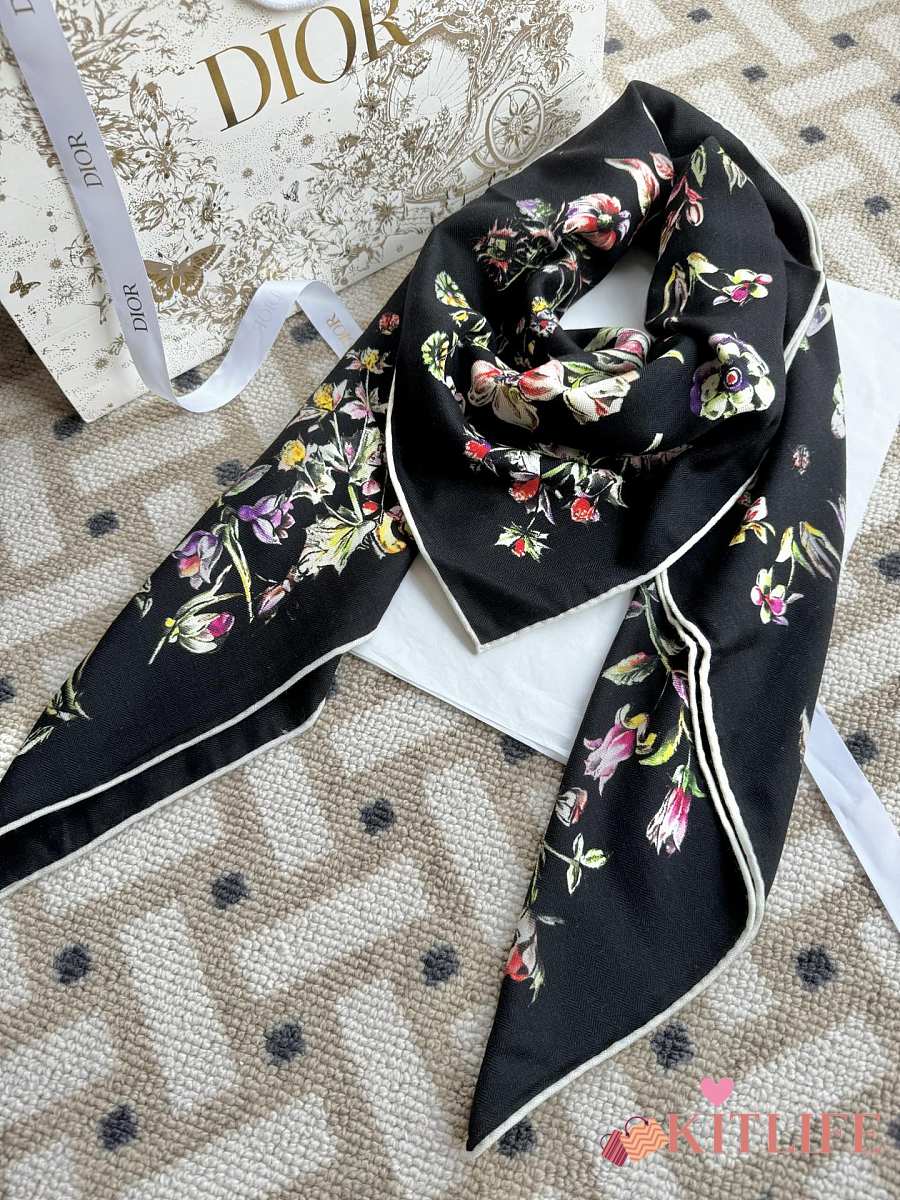 Kitlife Dior 25 Double-Sided Square Scarf Black 135x135cm