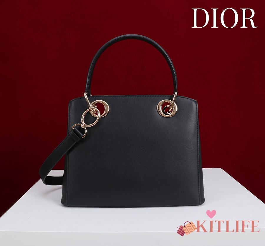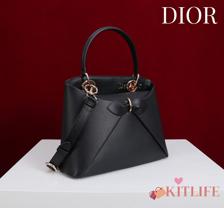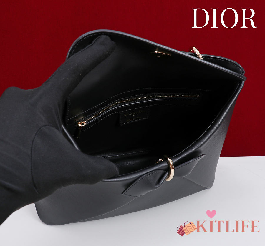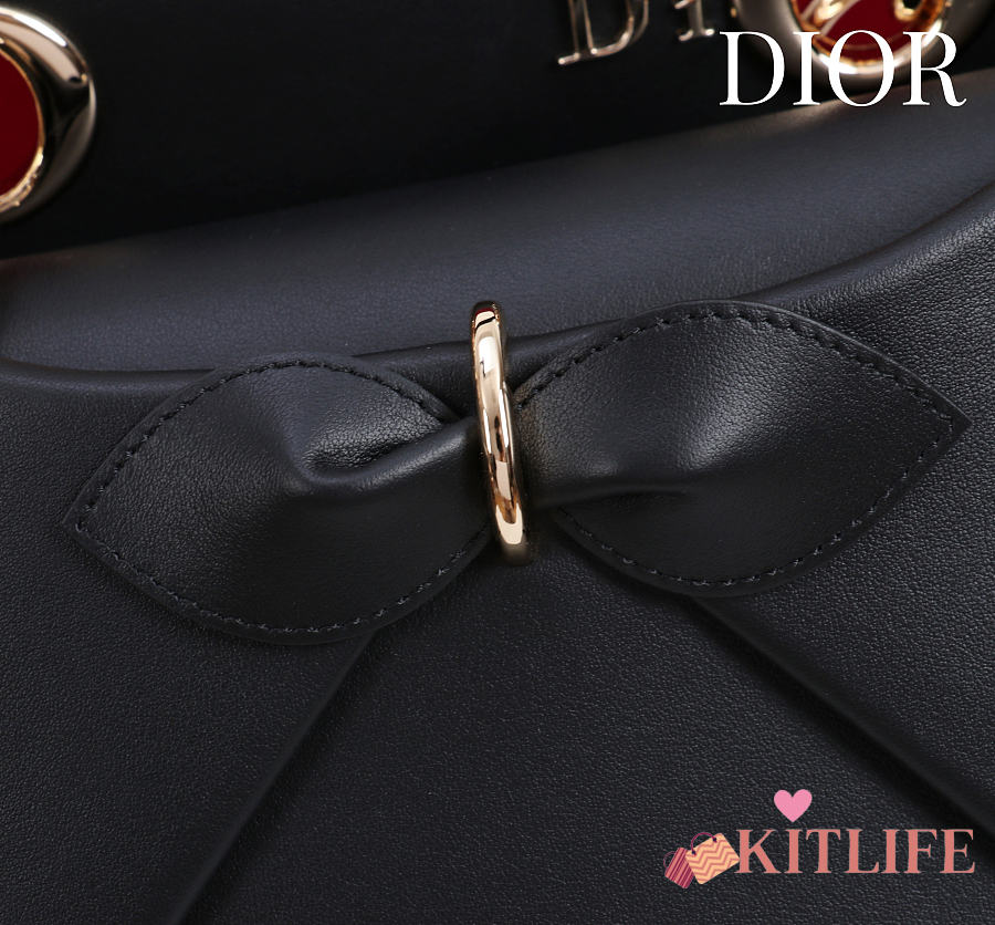 Kitlife Dior Bow Bag Black Leather 28x10x22cm
