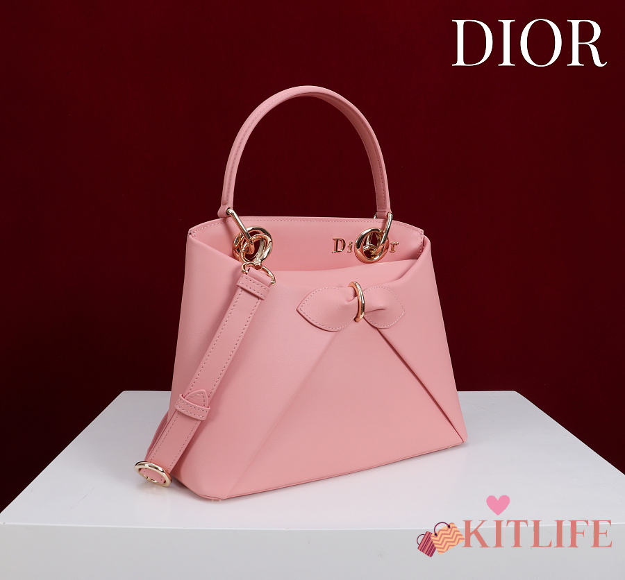Kitlife Dior Bow Bag Pink Leather 28x10x22cm