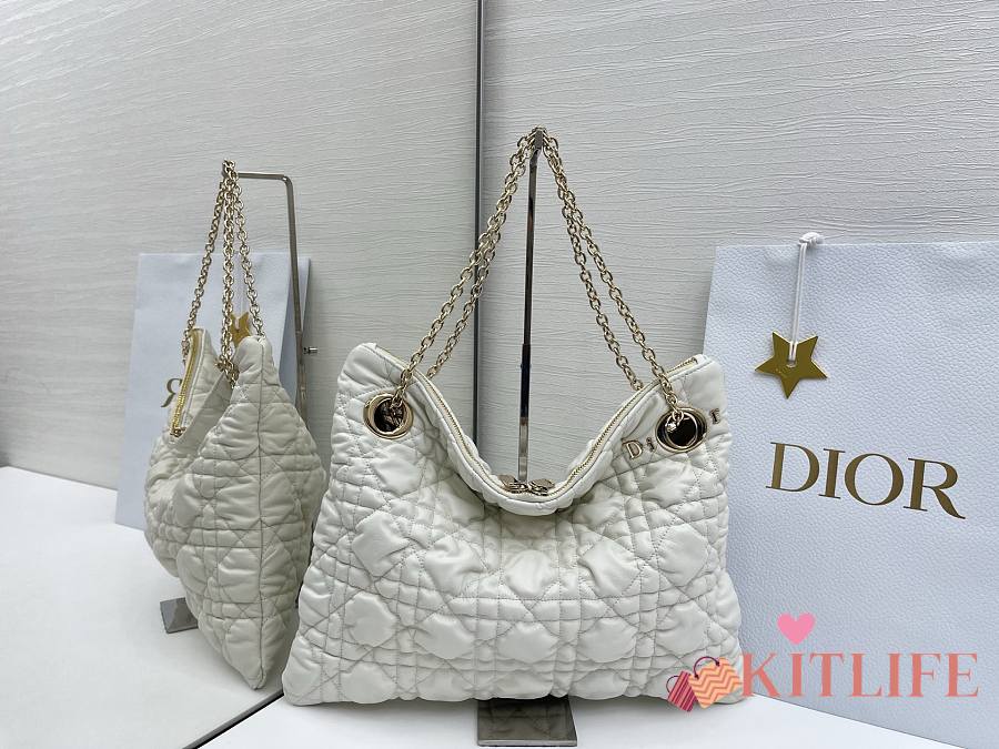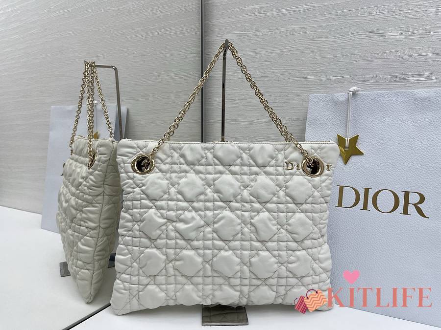 Kitlife Dior Cannage-Quilted Tote Bag White 38x28.5cm