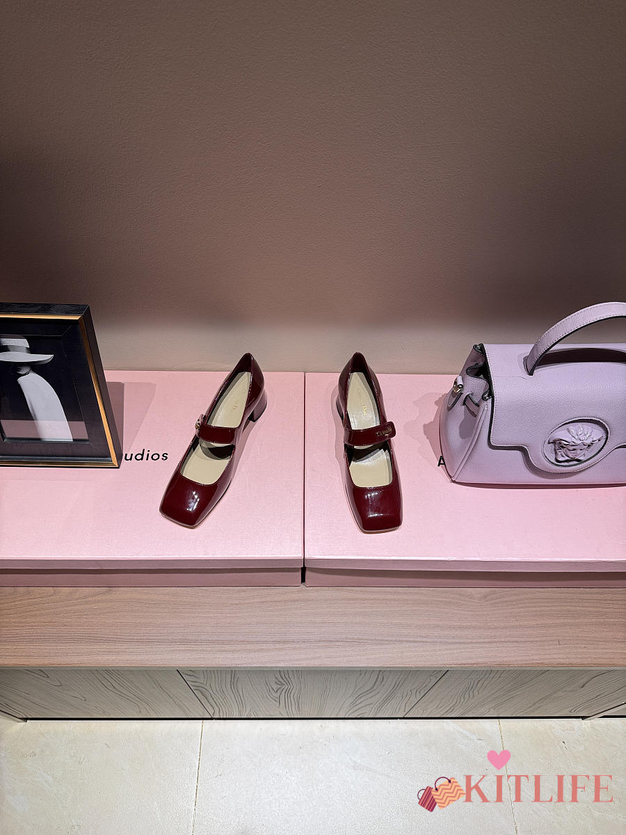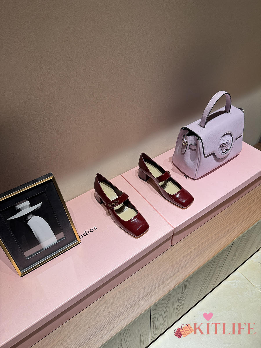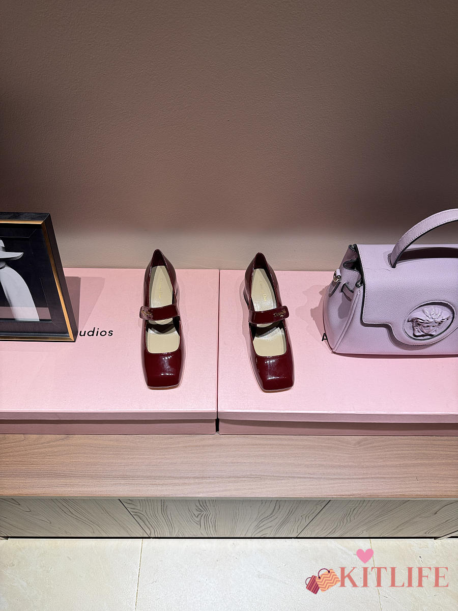 Kitlife Dior Chunky Heel Square Toe Mary Jane Shoes Red