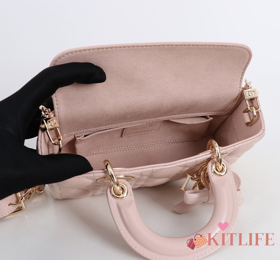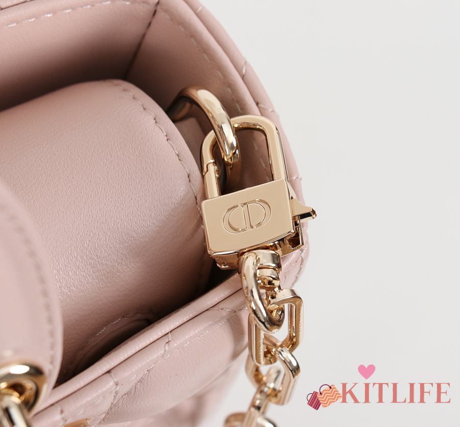 Kitlife Dior Lady Mini Bag in Pink Cannage Lambskin Leather
