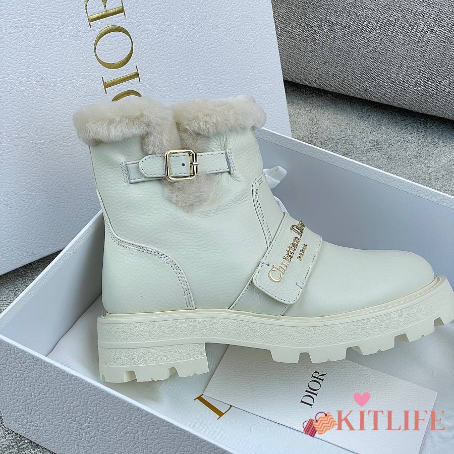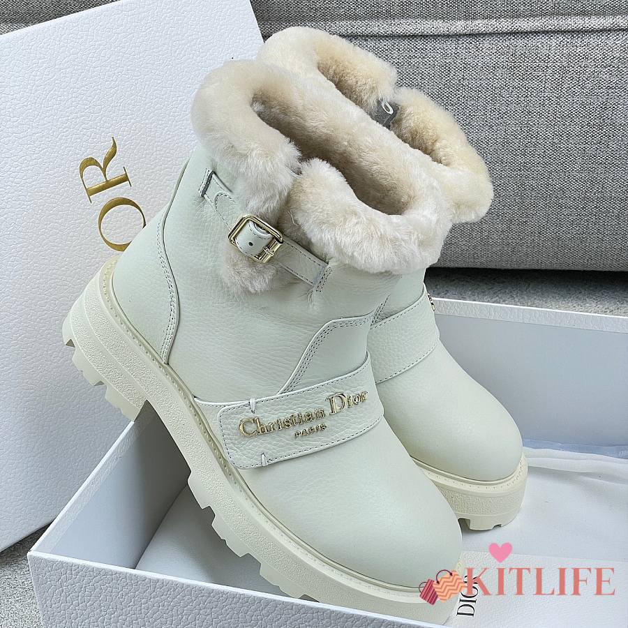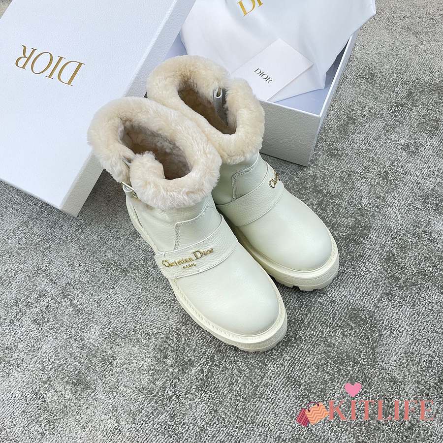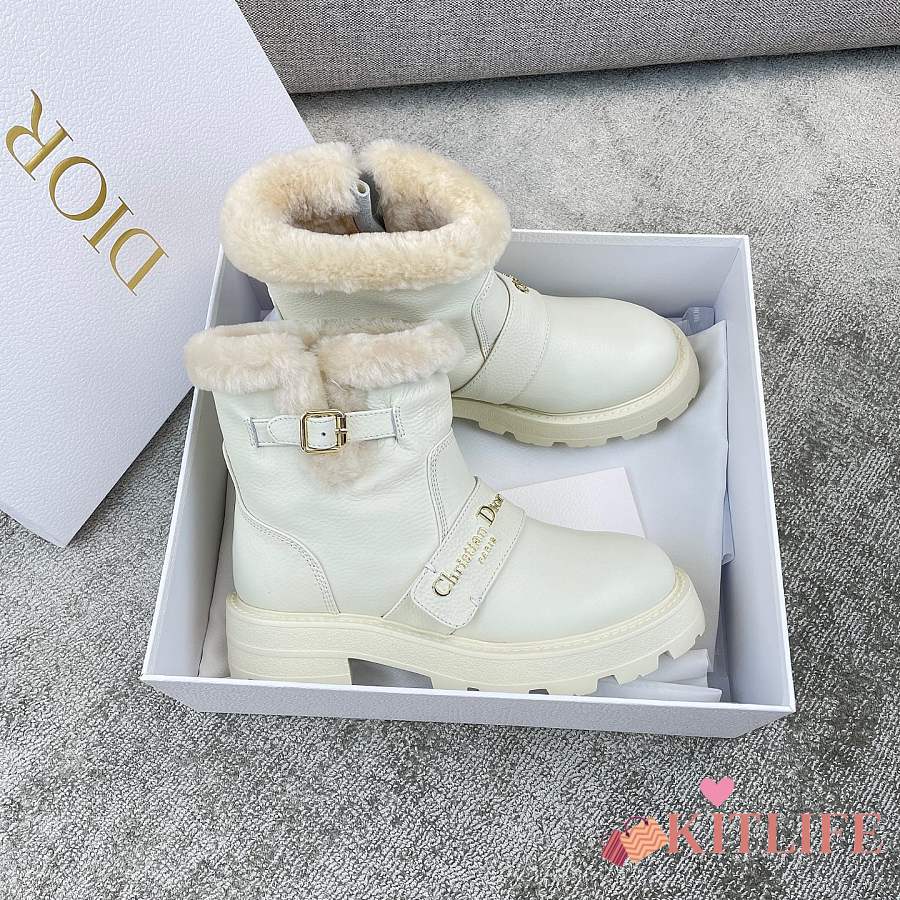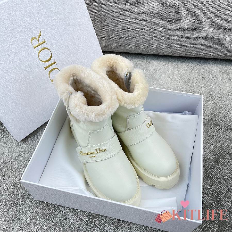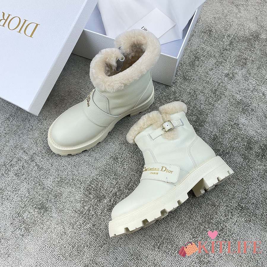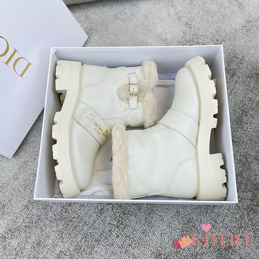 Kitlife Dior D-Quest Ankle Boot White Calfskin & Shearling