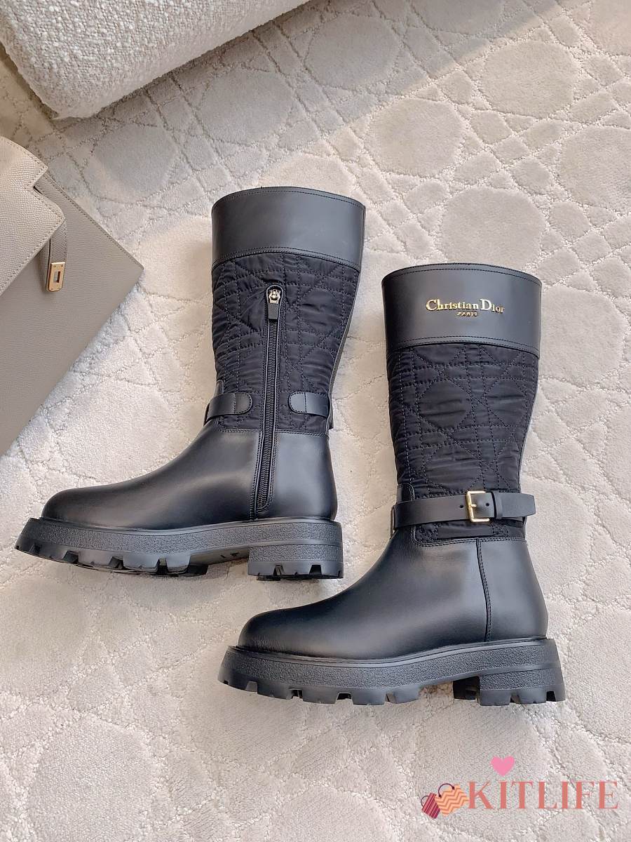 Kitlife Dior D-Town Boot Black Calfskin and Nylon with Embroidered Cannage Motif