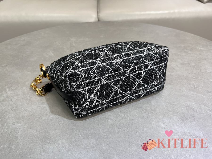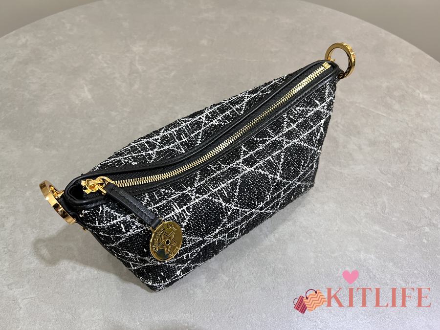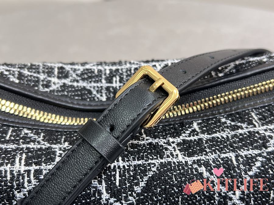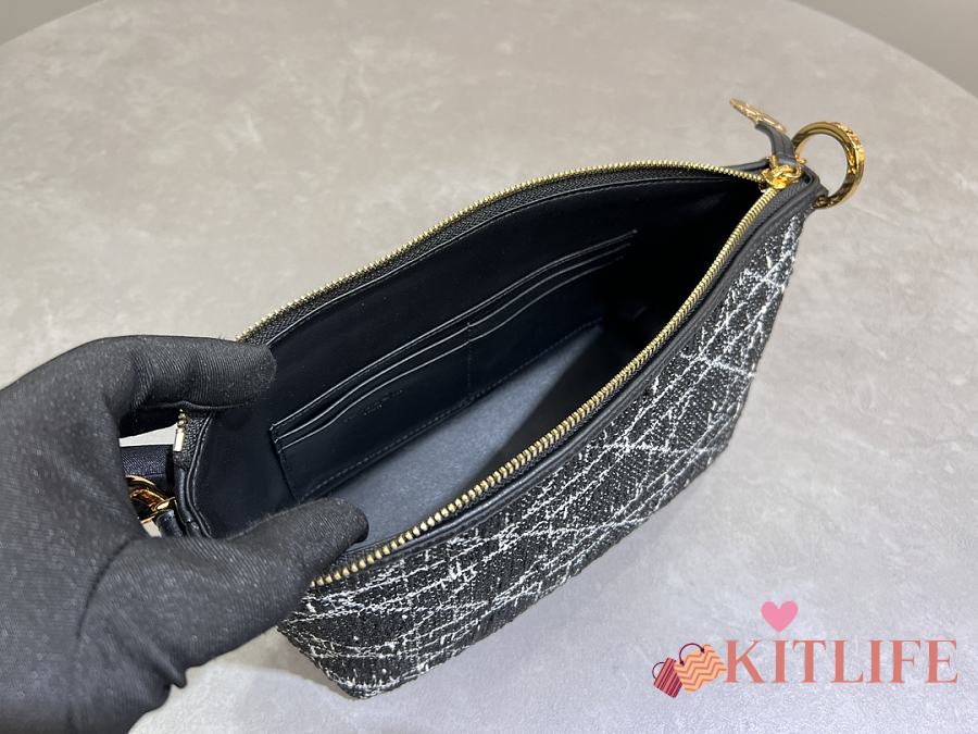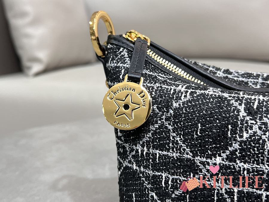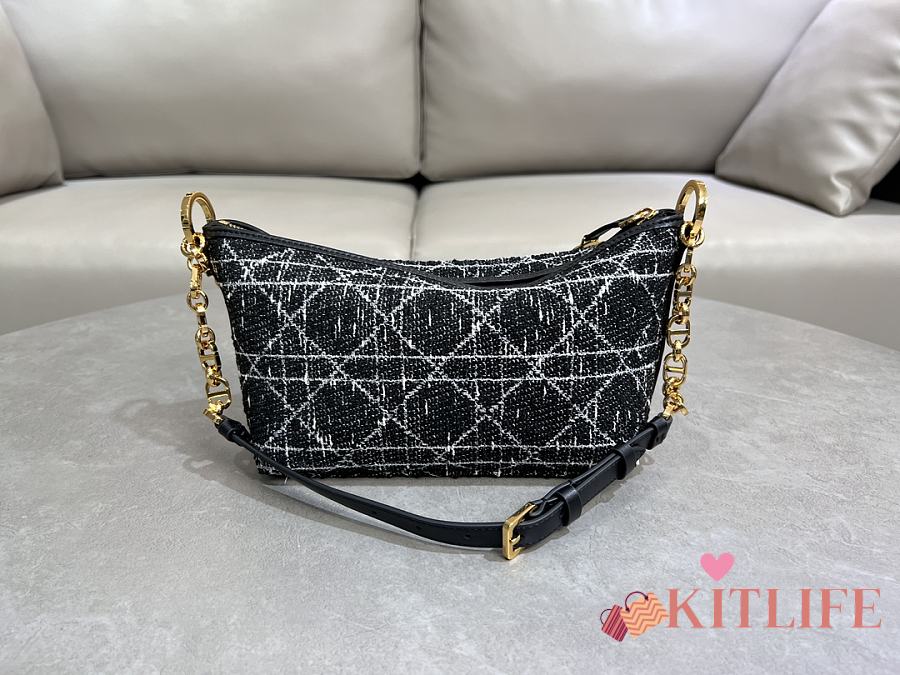 Kitlife Dior Diorstar Hobo Chain Bag Black Tweed with White Cannage Motif 28.5x14.5x10cm