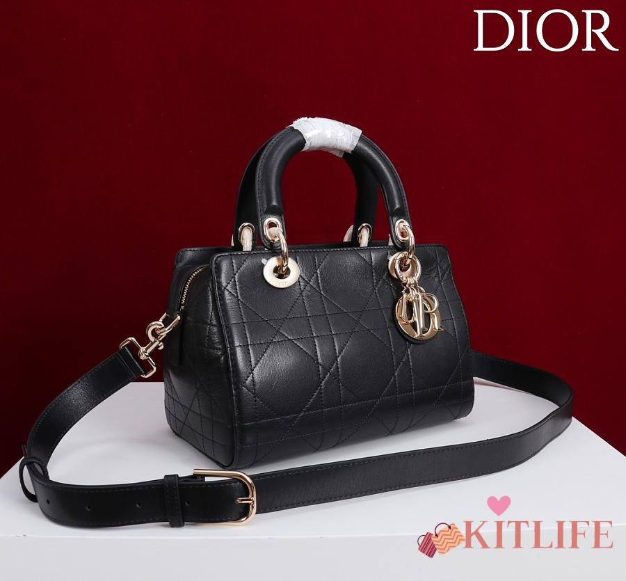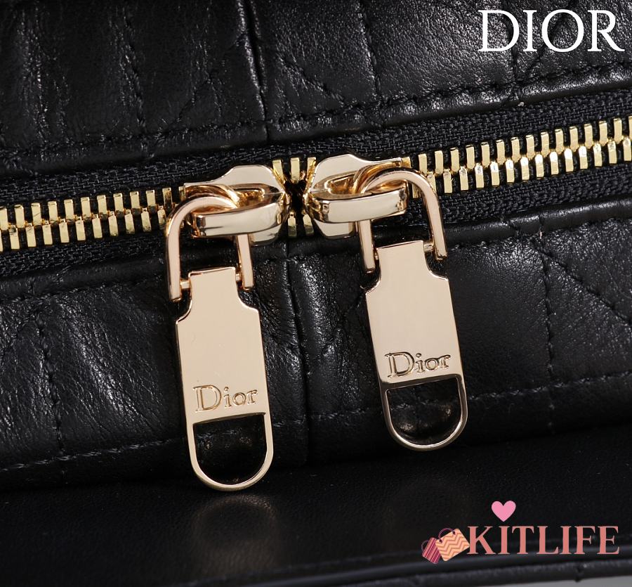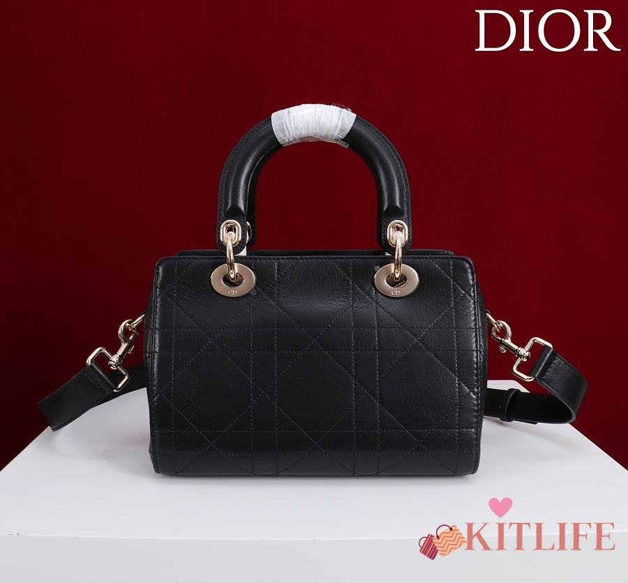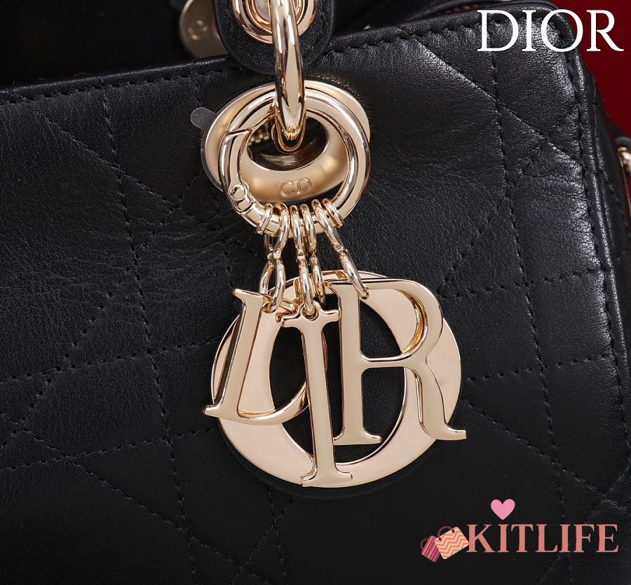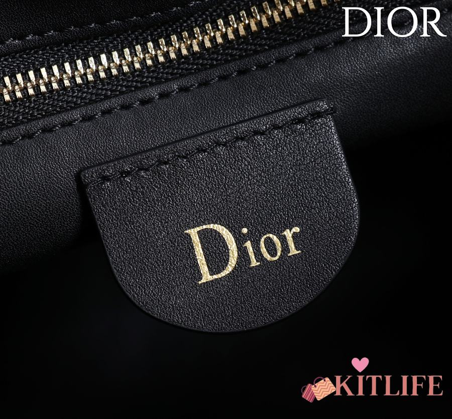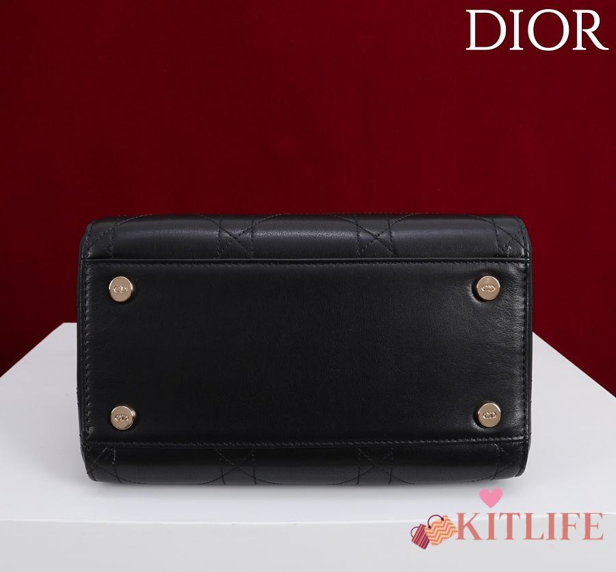Kitlife Dior Lady Cannage Handbag Black Leather 24×27×14cm