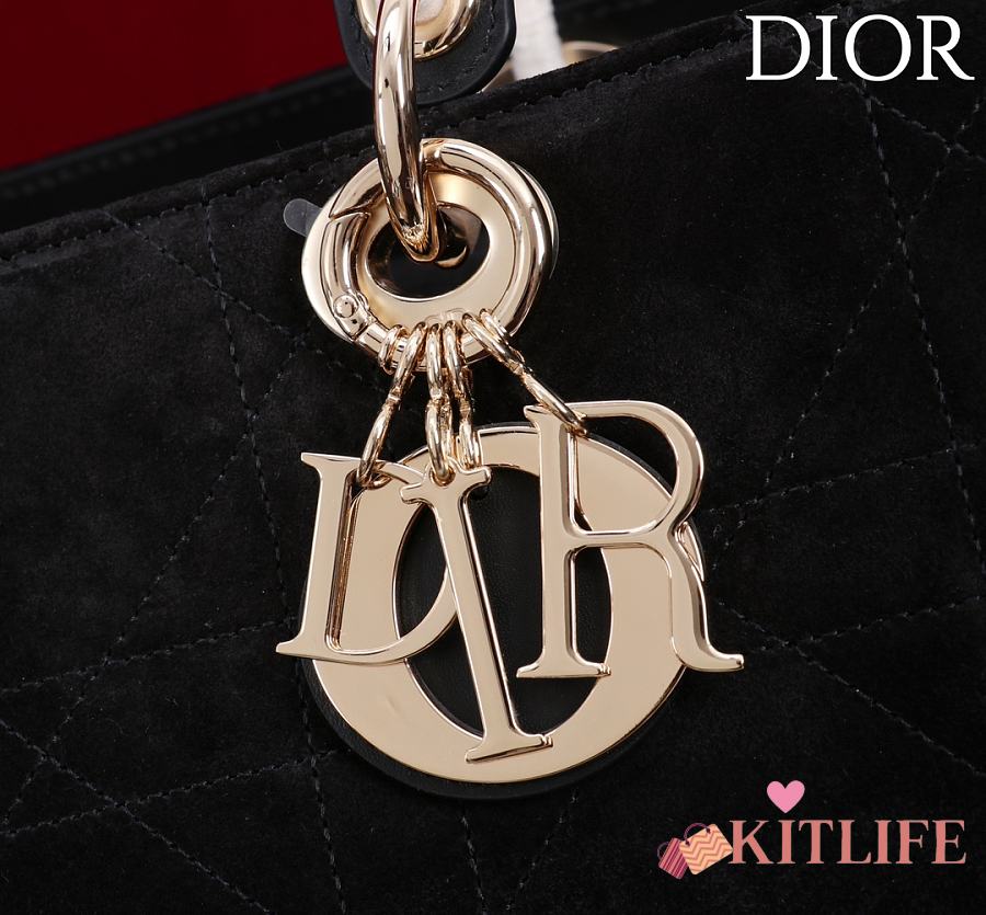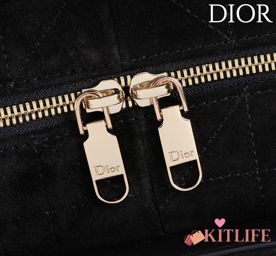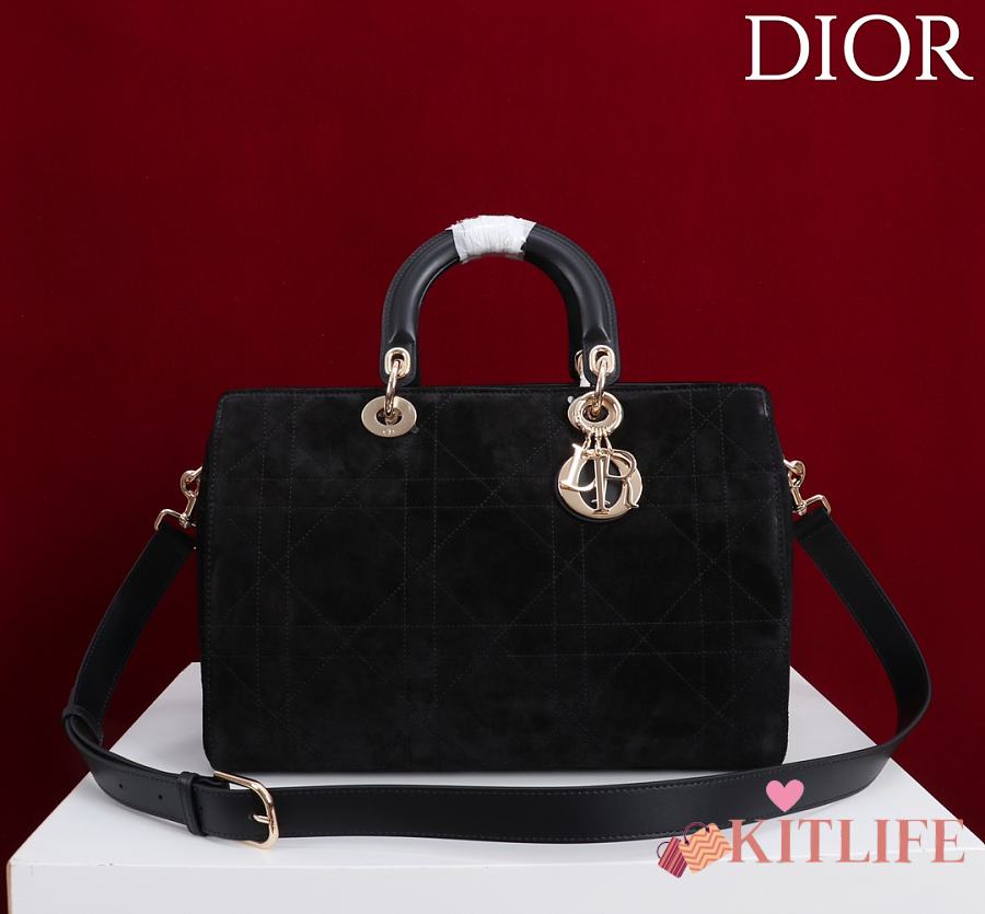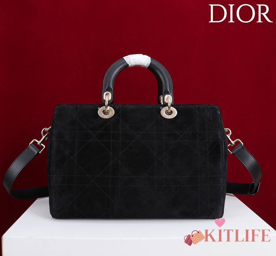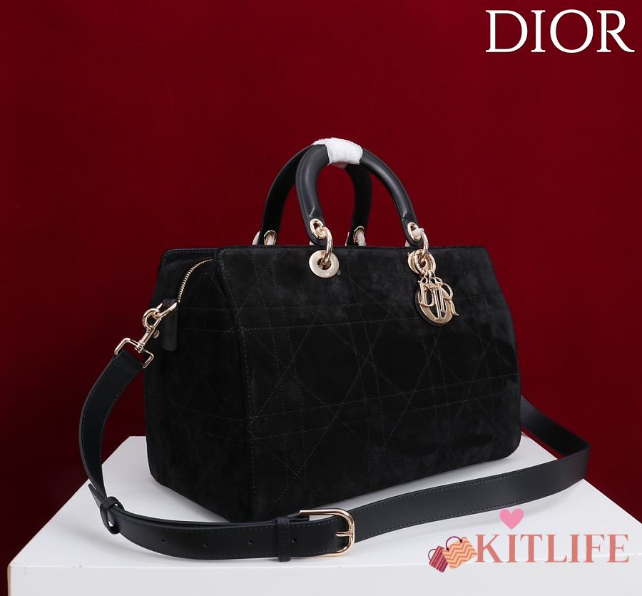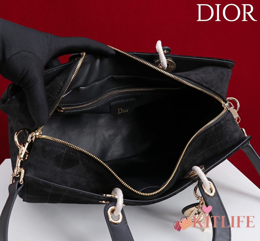 Kitlife Dior Lady Cannage Handbag Black Suede 34×35×20cm