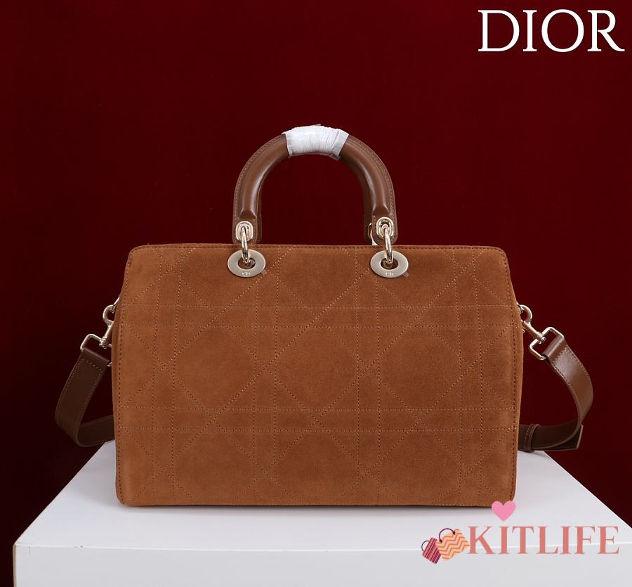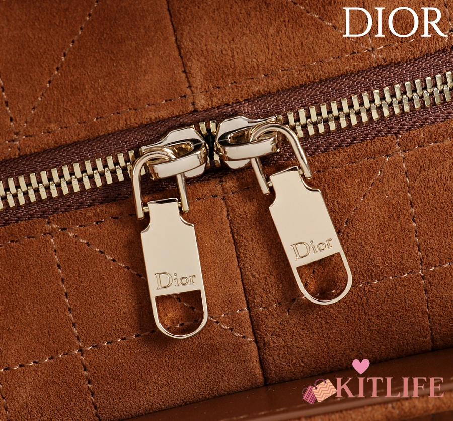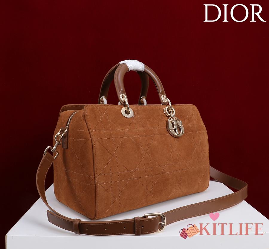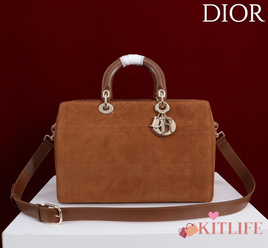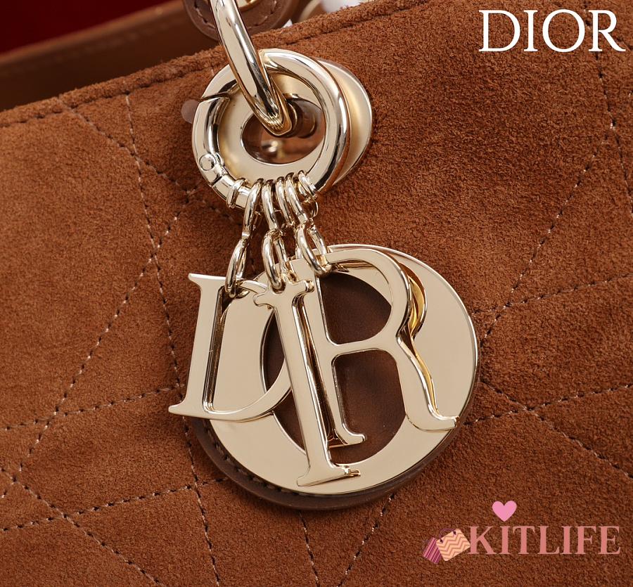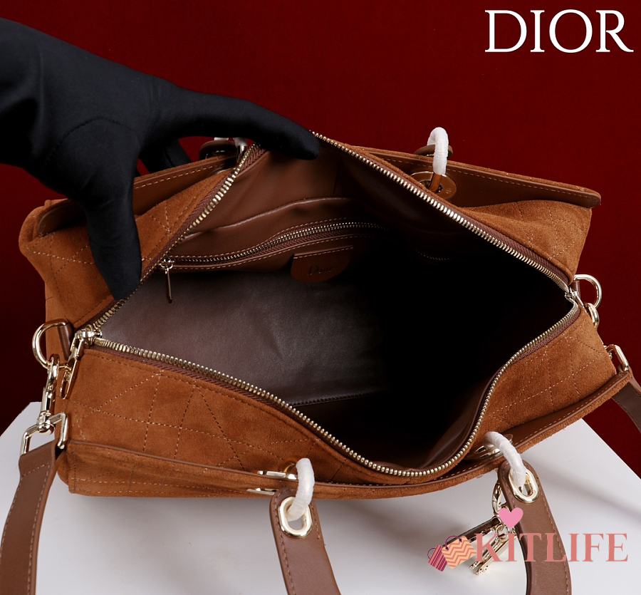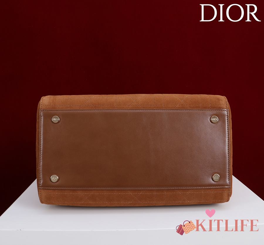 Kitlife Dior Lady Cannage Handbag Brown Suede 34×35×20cm