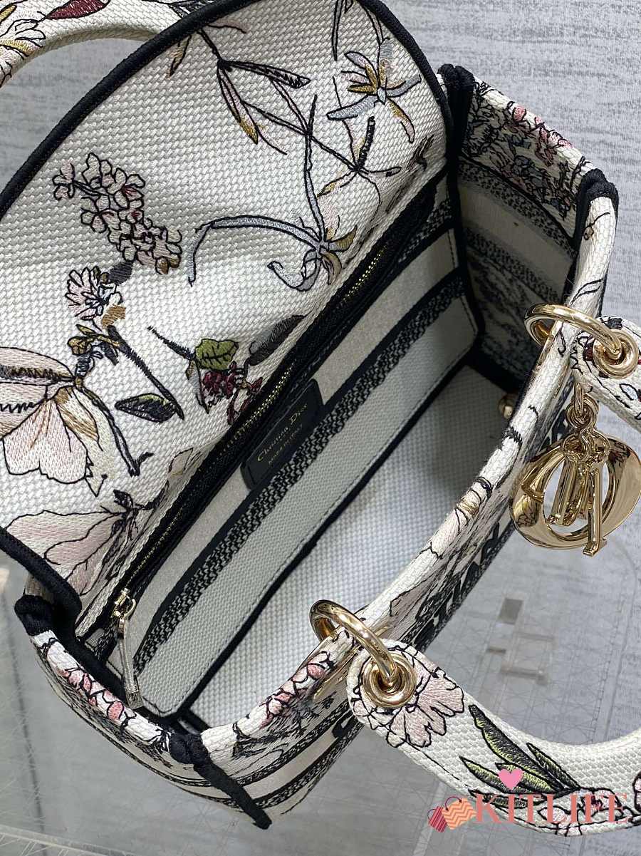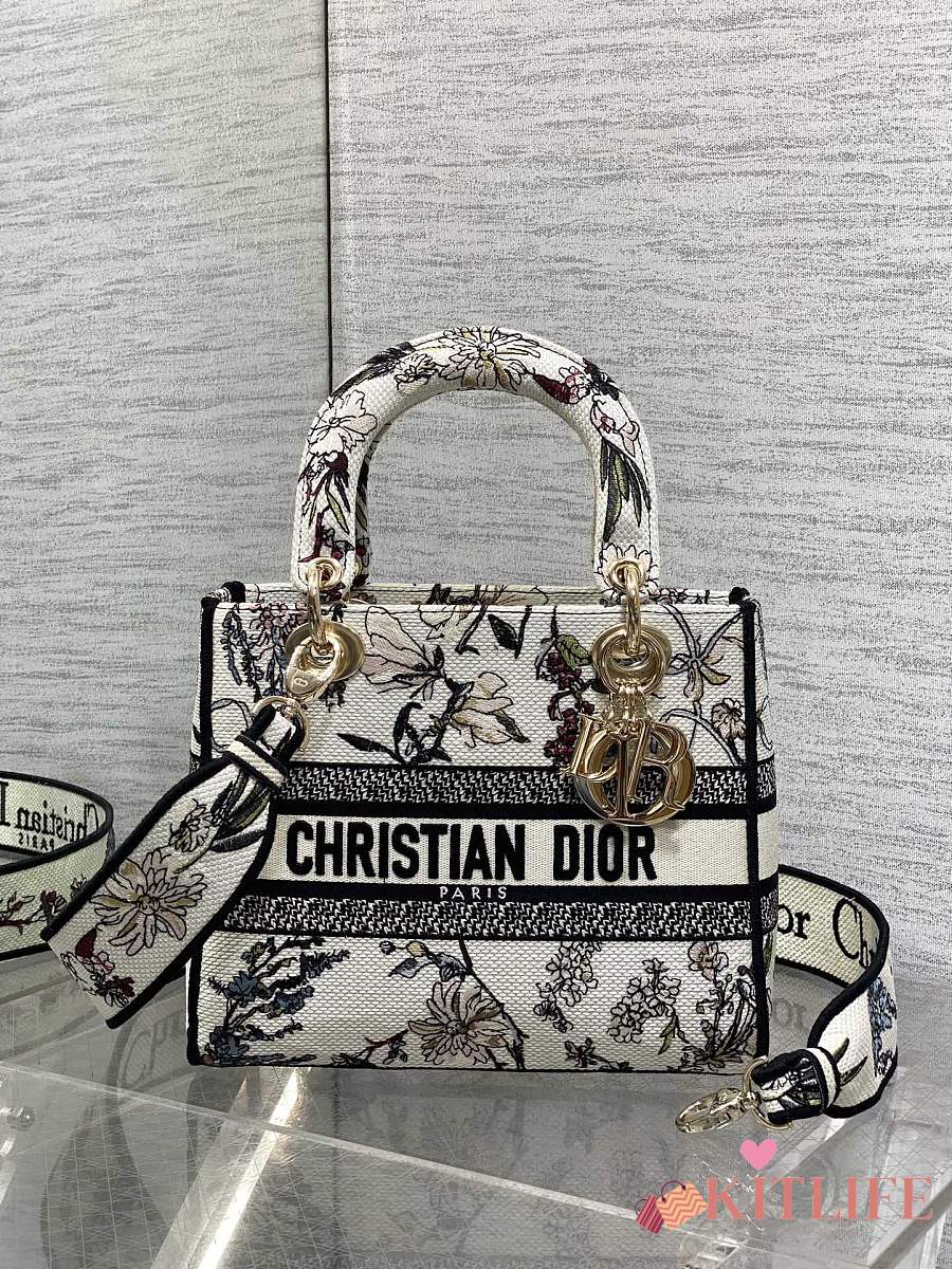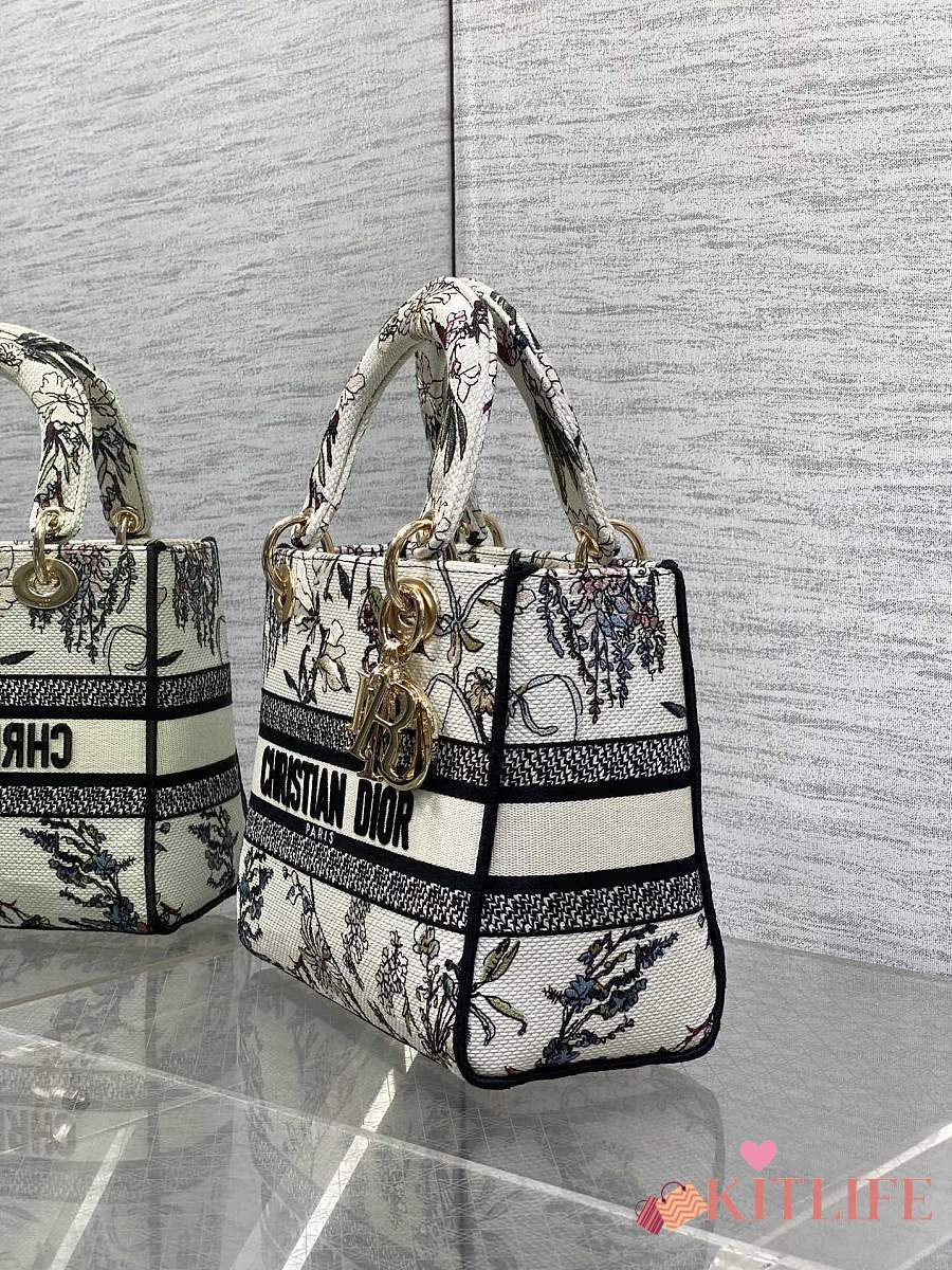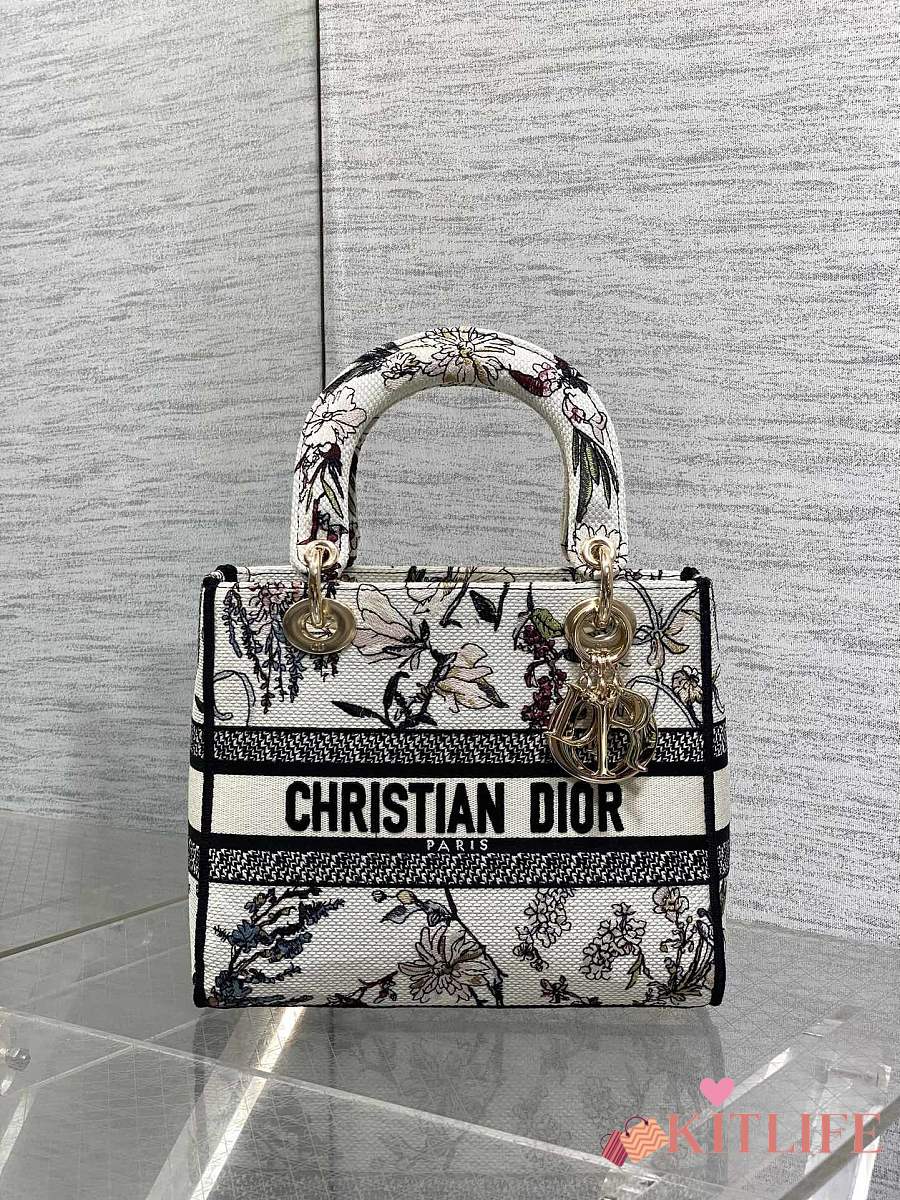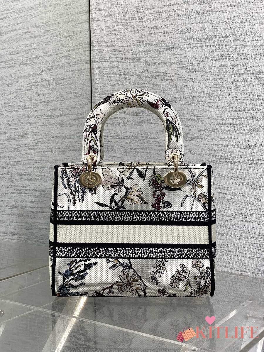Kitlife Dior Lady Diana Black, White and Multicolor Embroidered Bag 24x11x20cm