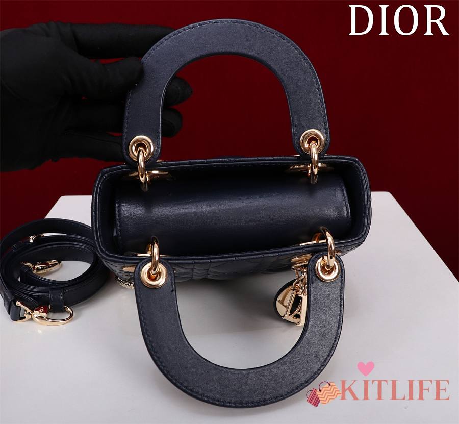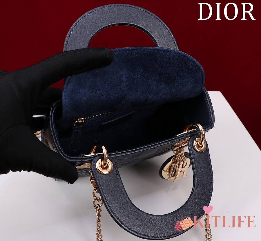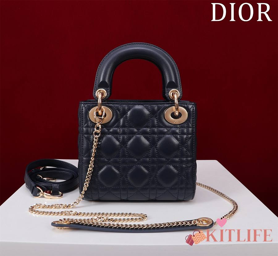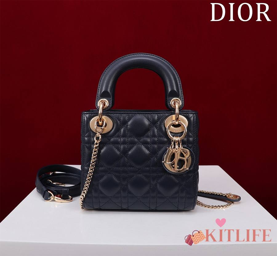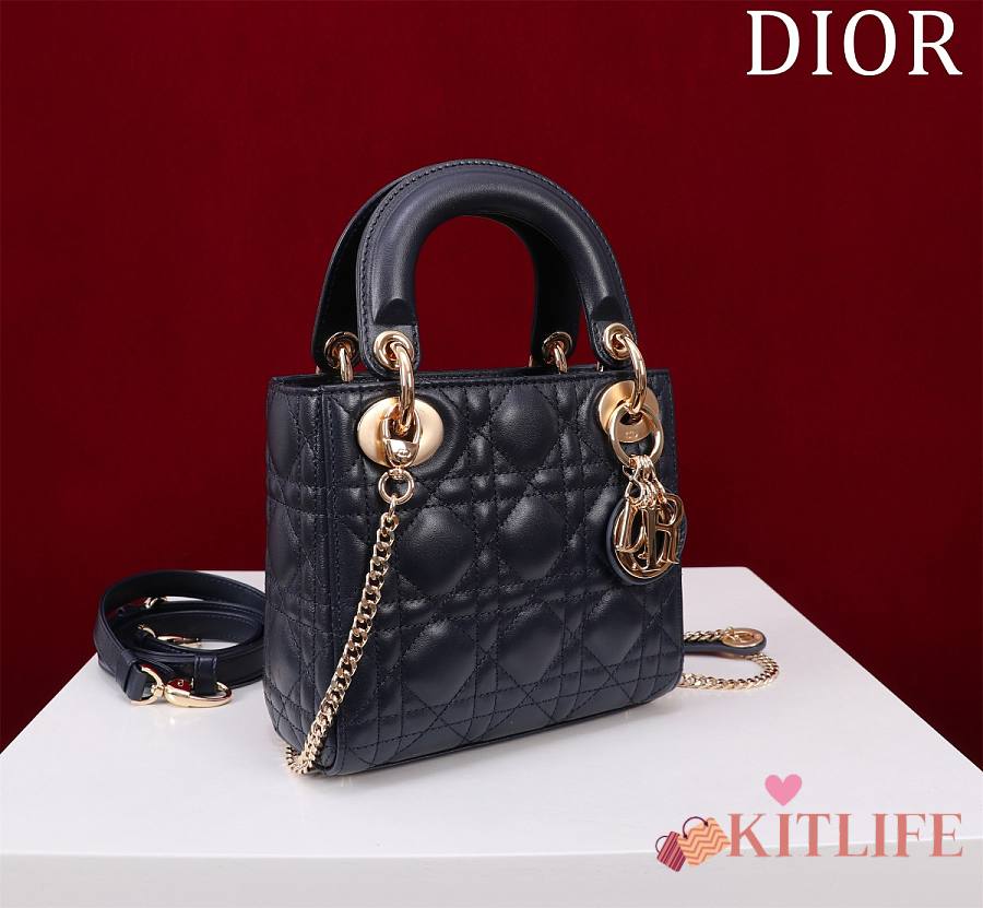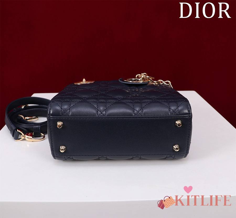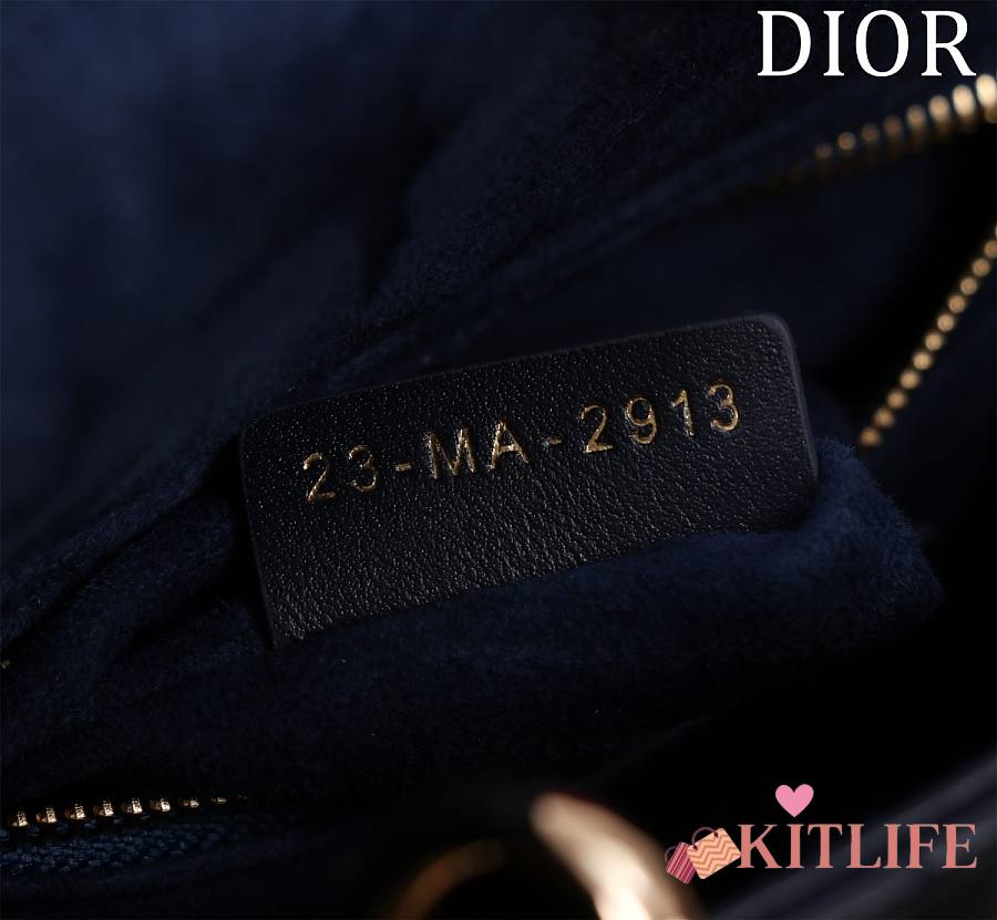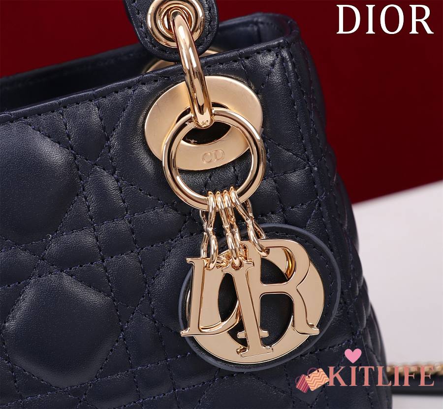 Kitlife Dior Lady Diana Dark Blue Leather Bag M0505 17x15x7cm