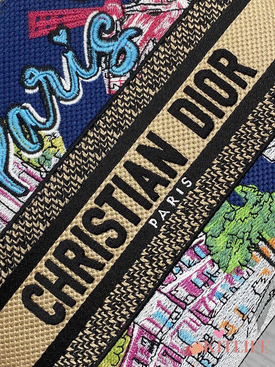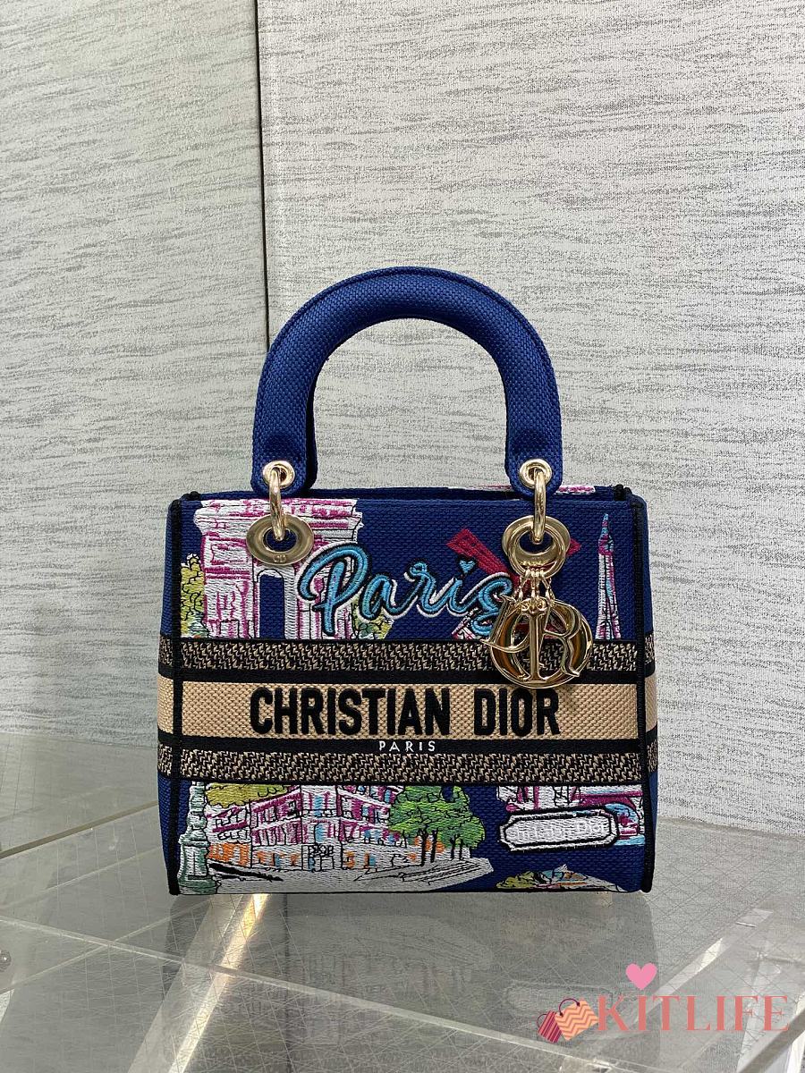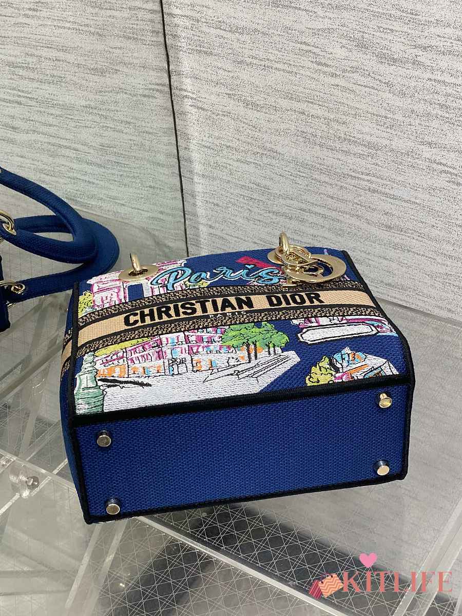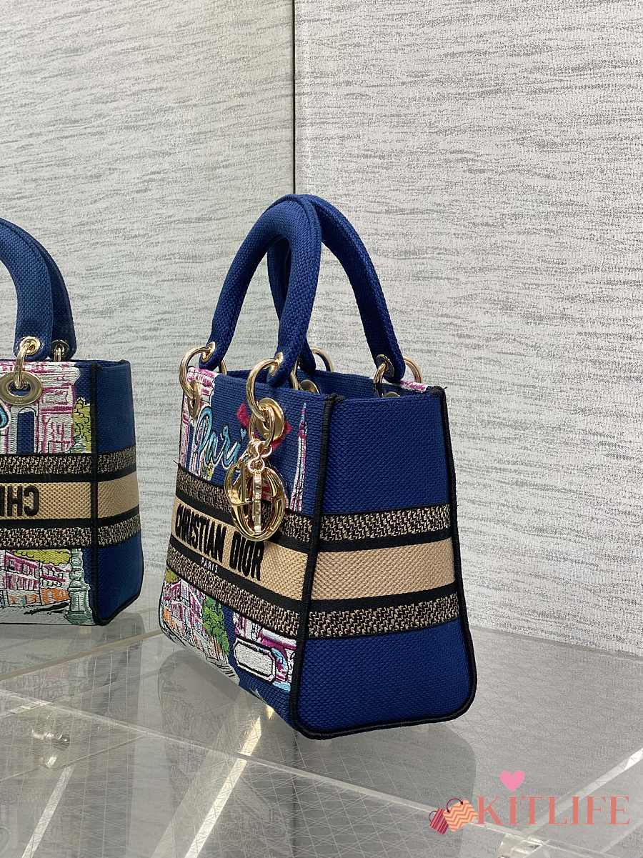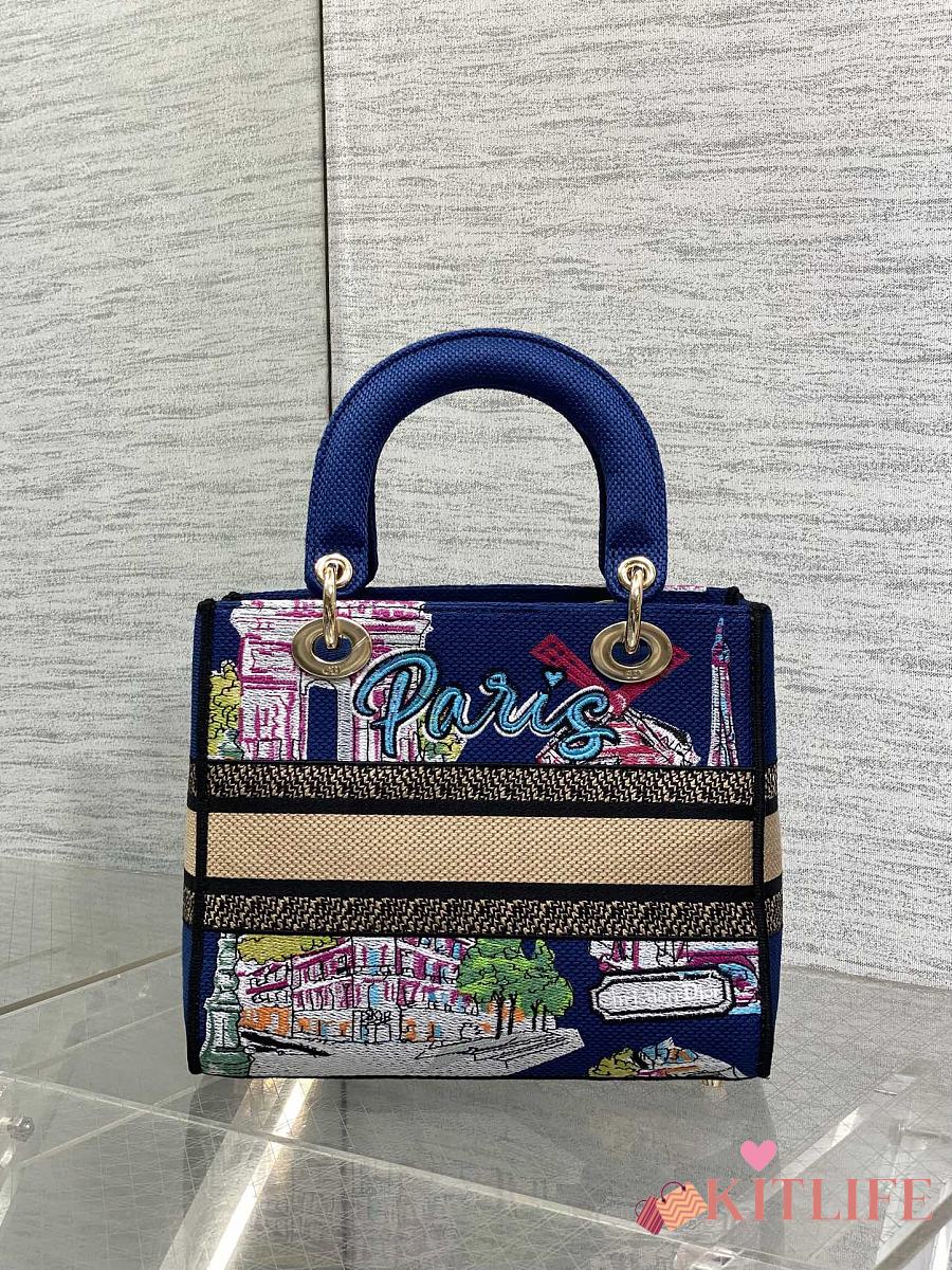 Kitlife Dior Lady Diana Dark Blue Raffia and Multicolor Embroidered Bag 24x11x20cm