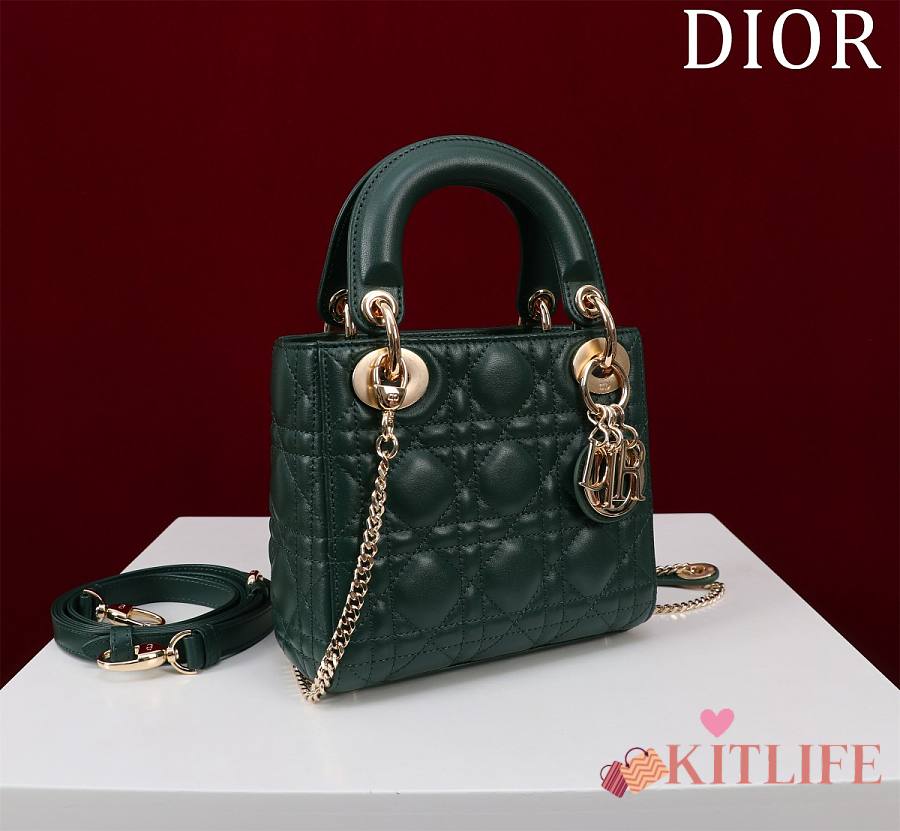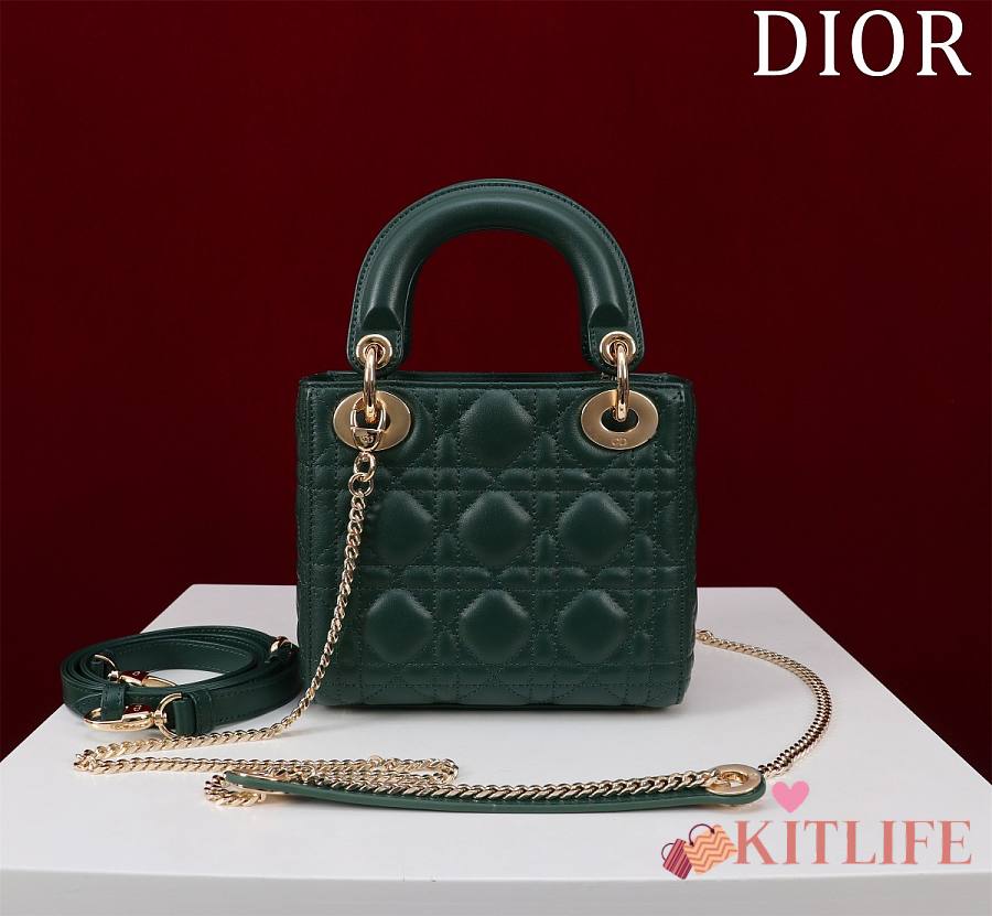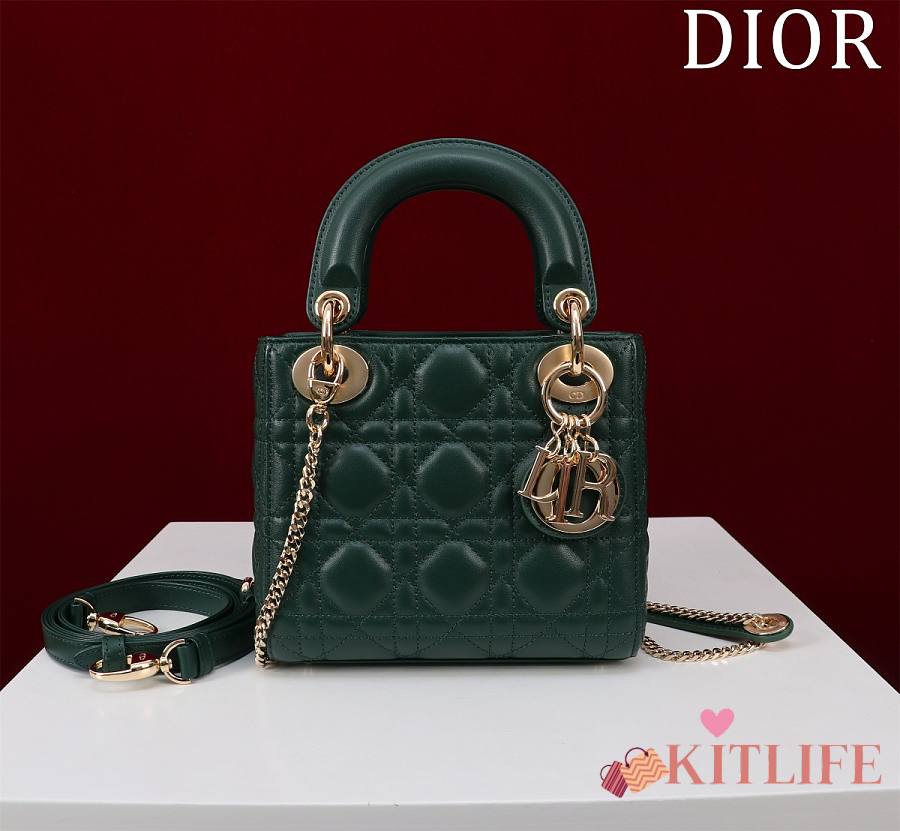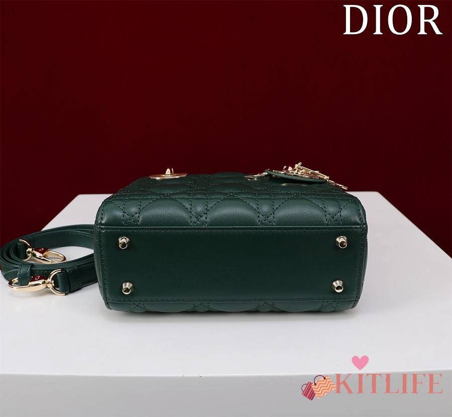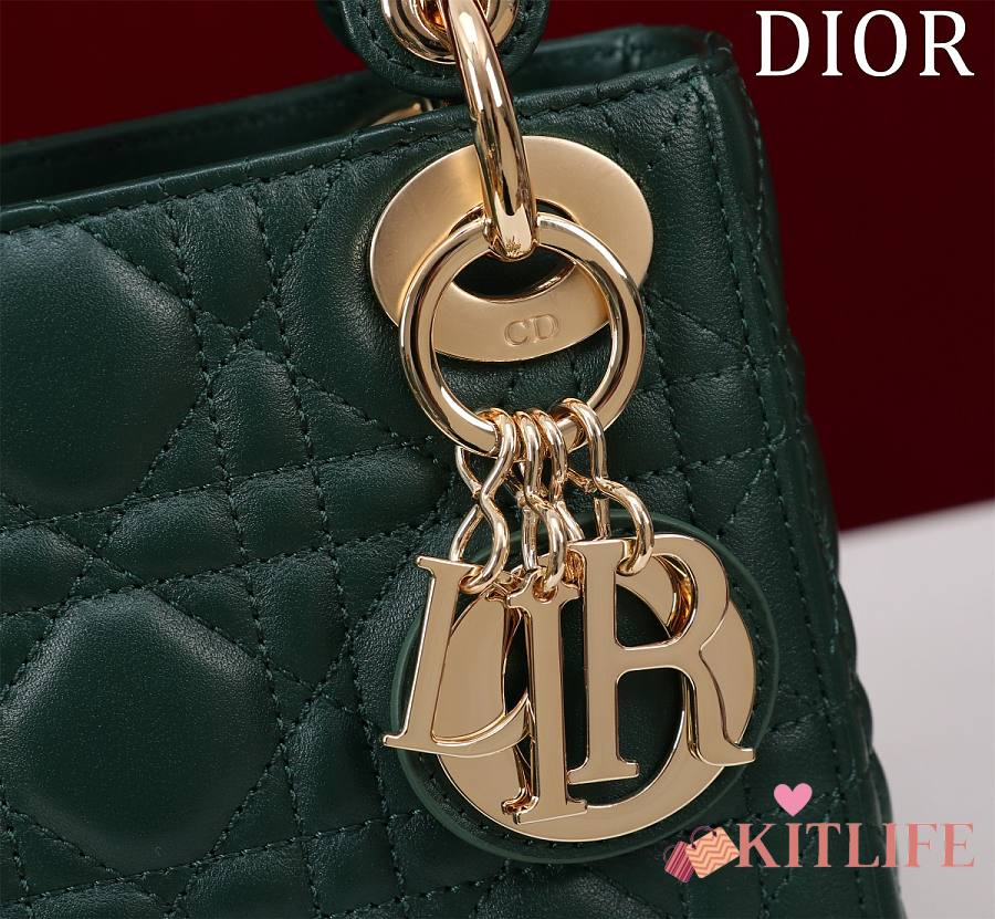 Kitlife Dior Lady Diana Green Leather Bag M0505 17x15x7cm