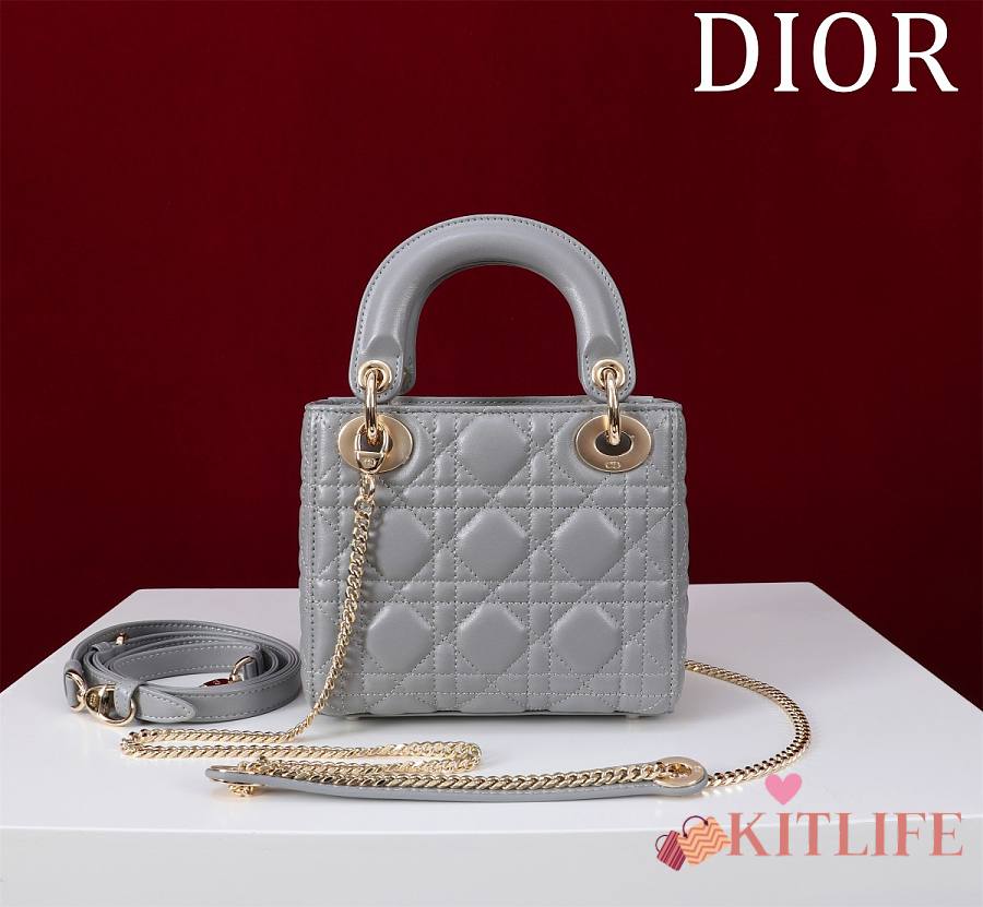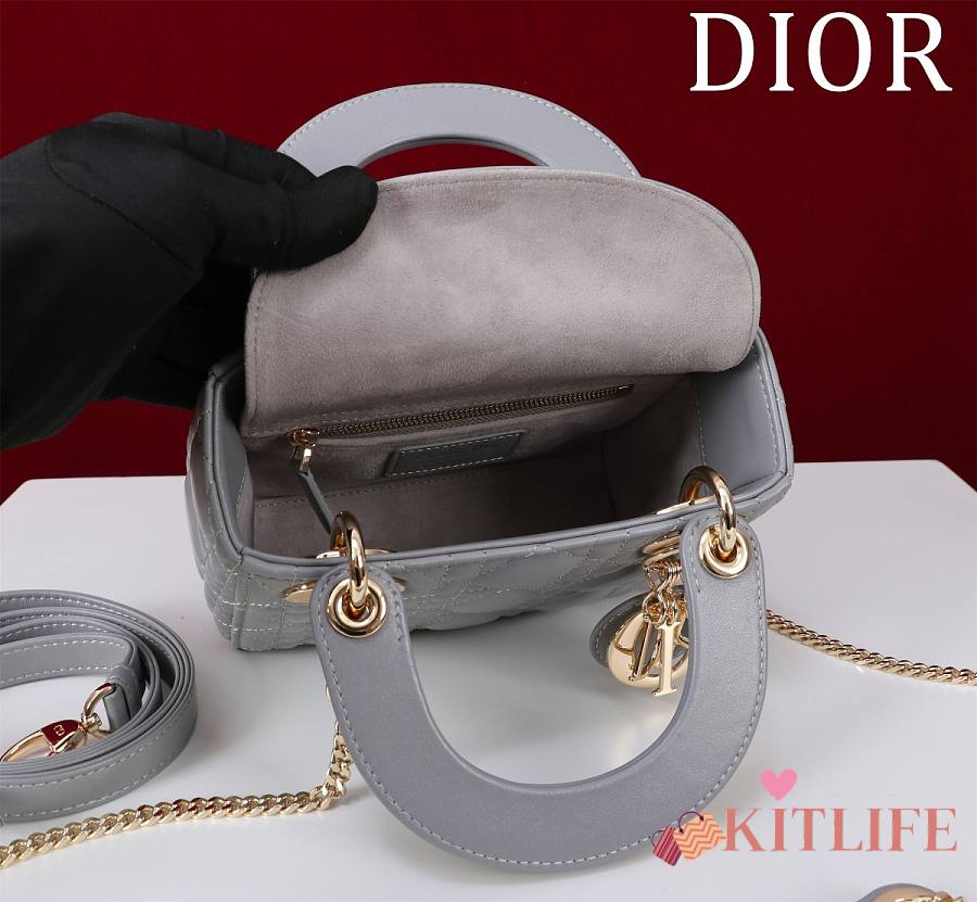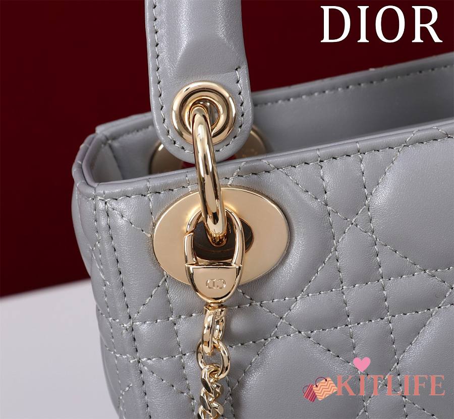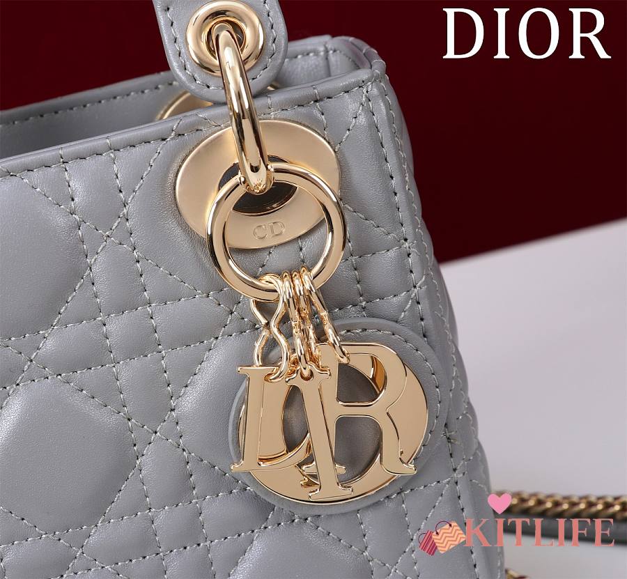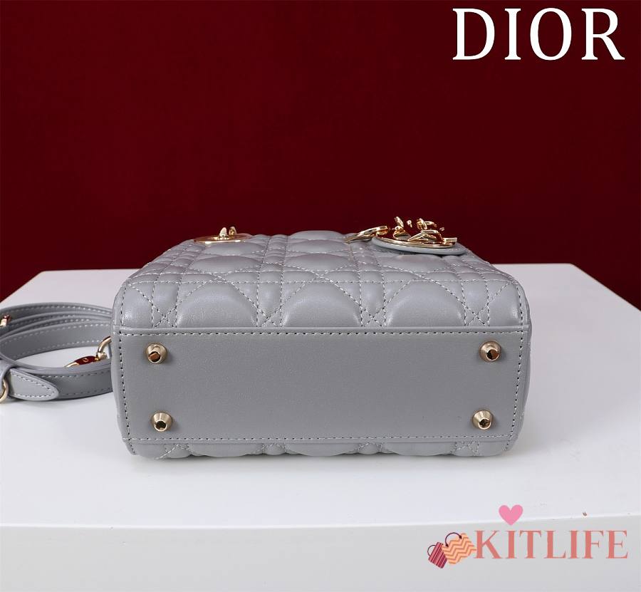 Kitlife Dior Lady Diana Grey Leather Bag M0505 17x15x7cm