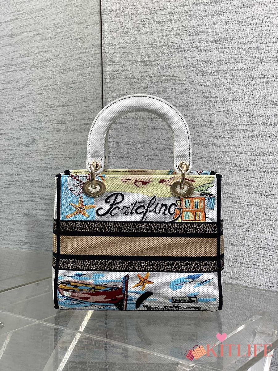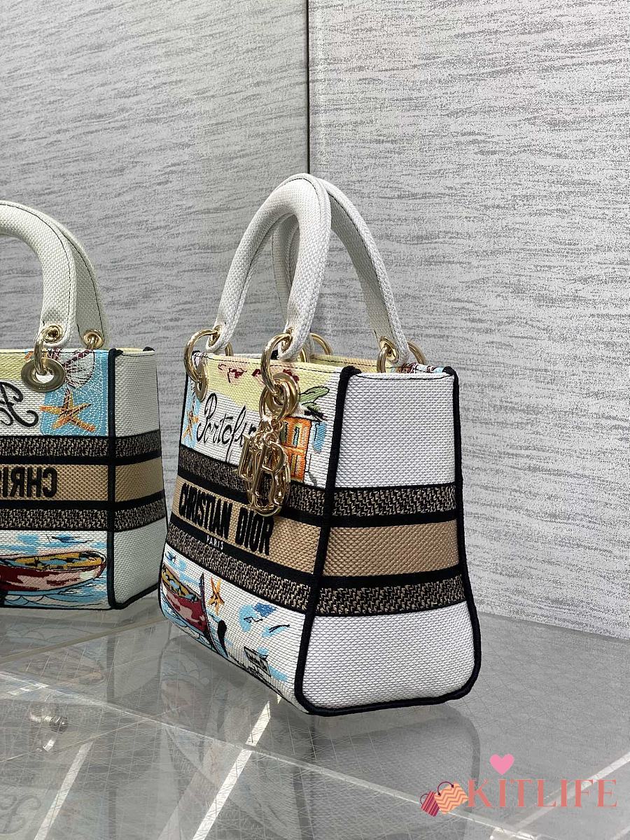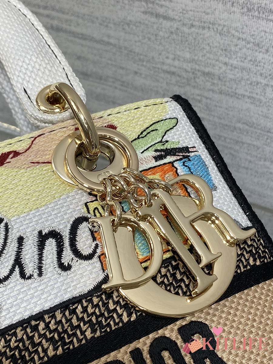 Kitlife Dior Lady Diana Natural Raffia and Multicolor Embroidered Bag 24x11x20cm