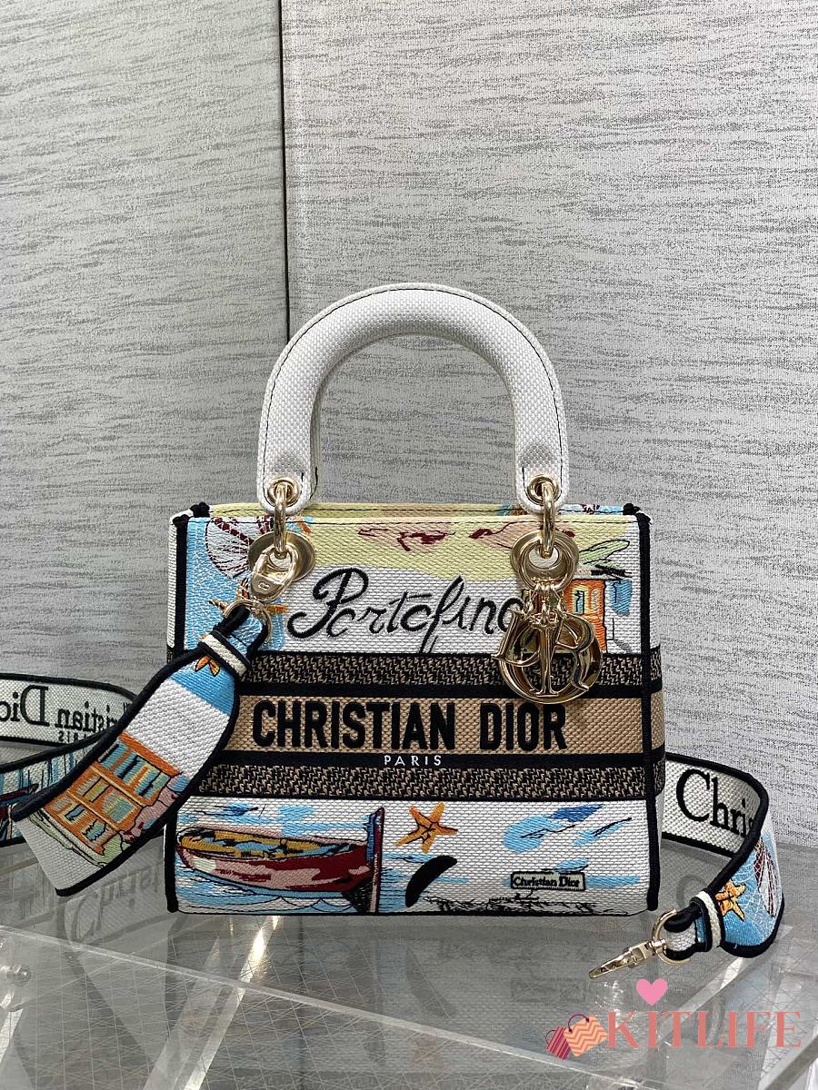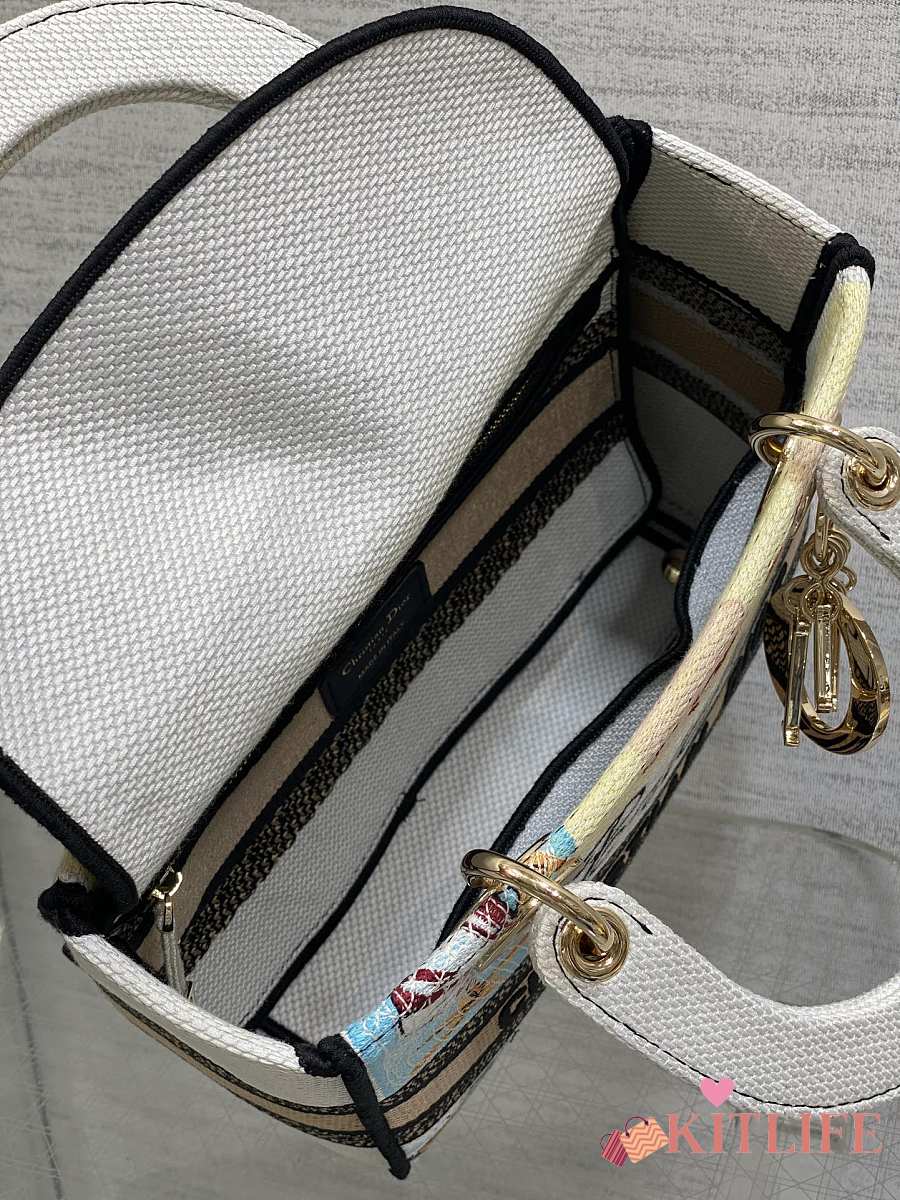 Kitlife Dior Lady Toile de Jouy Papillon Embroidery Beige 24x20x11cm