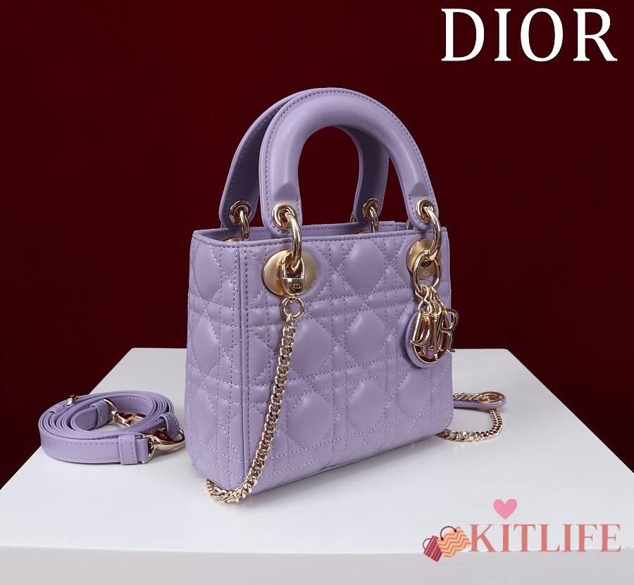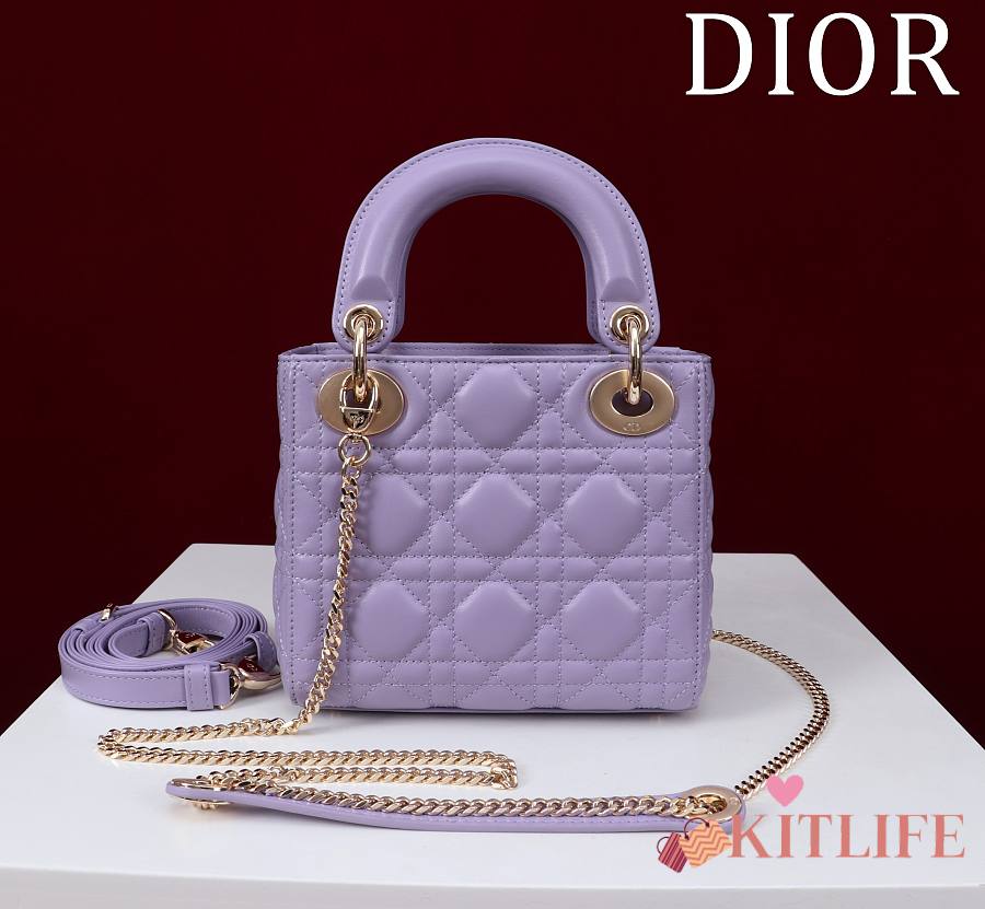 Kitlife Dior Lady Diana Purple Leather Bag M0505 17x15x7cm