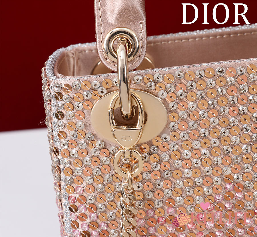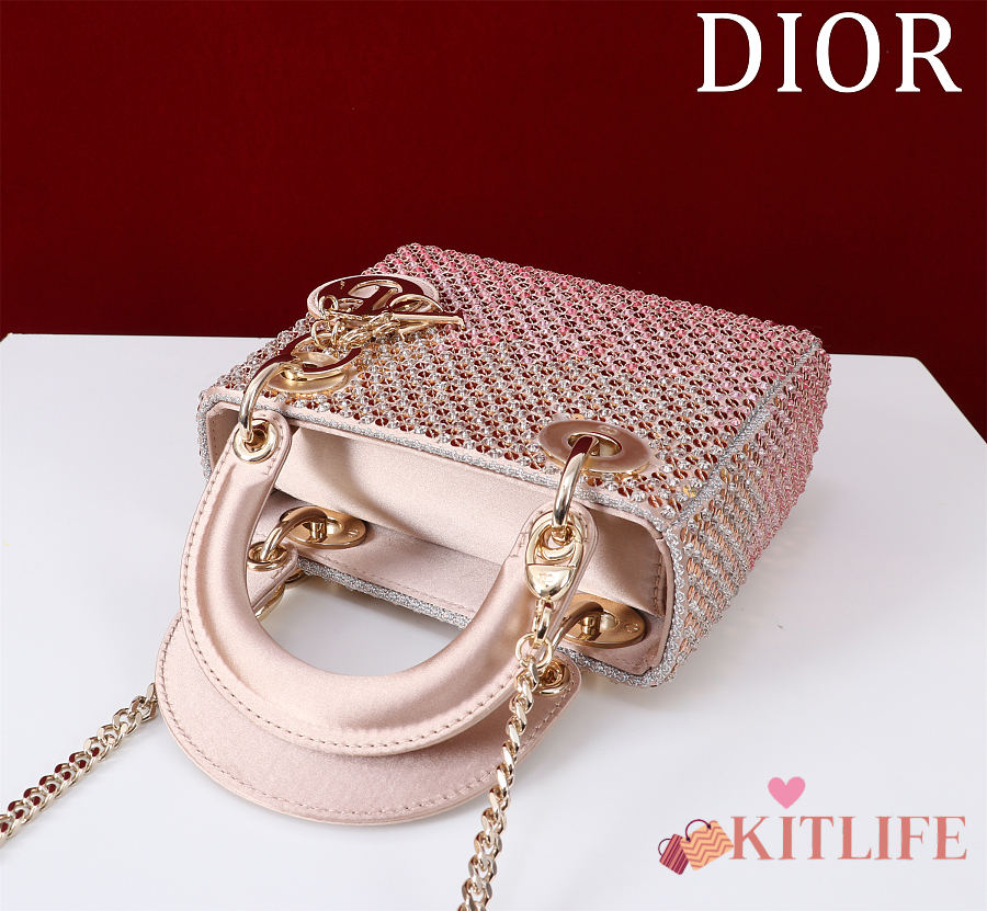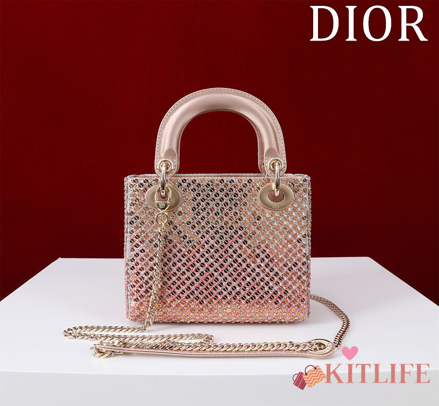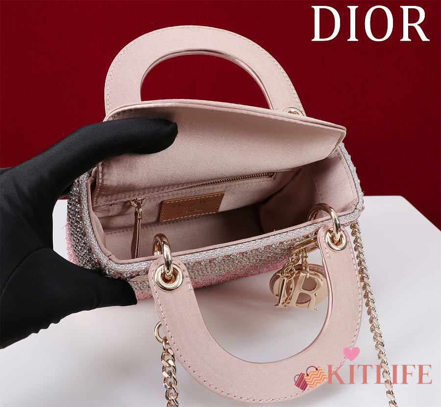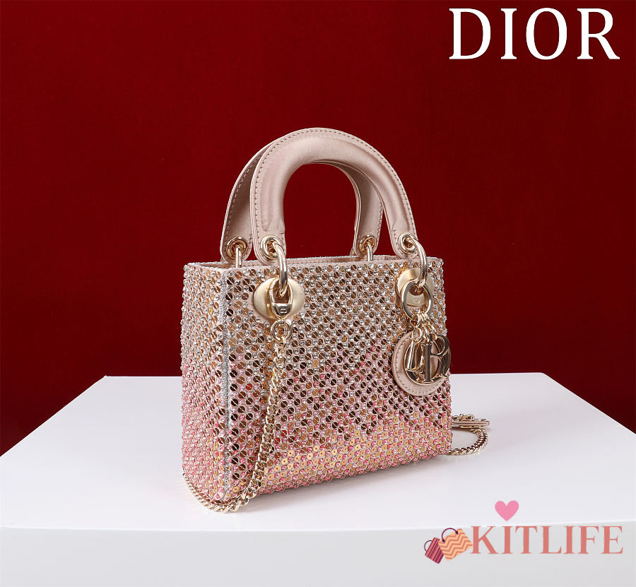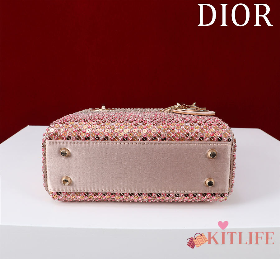 Kitlife Dior Lady Diana Three-Grid Embroidered Gradient Beads Pink M0505821 17x15x7cm