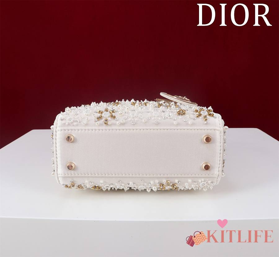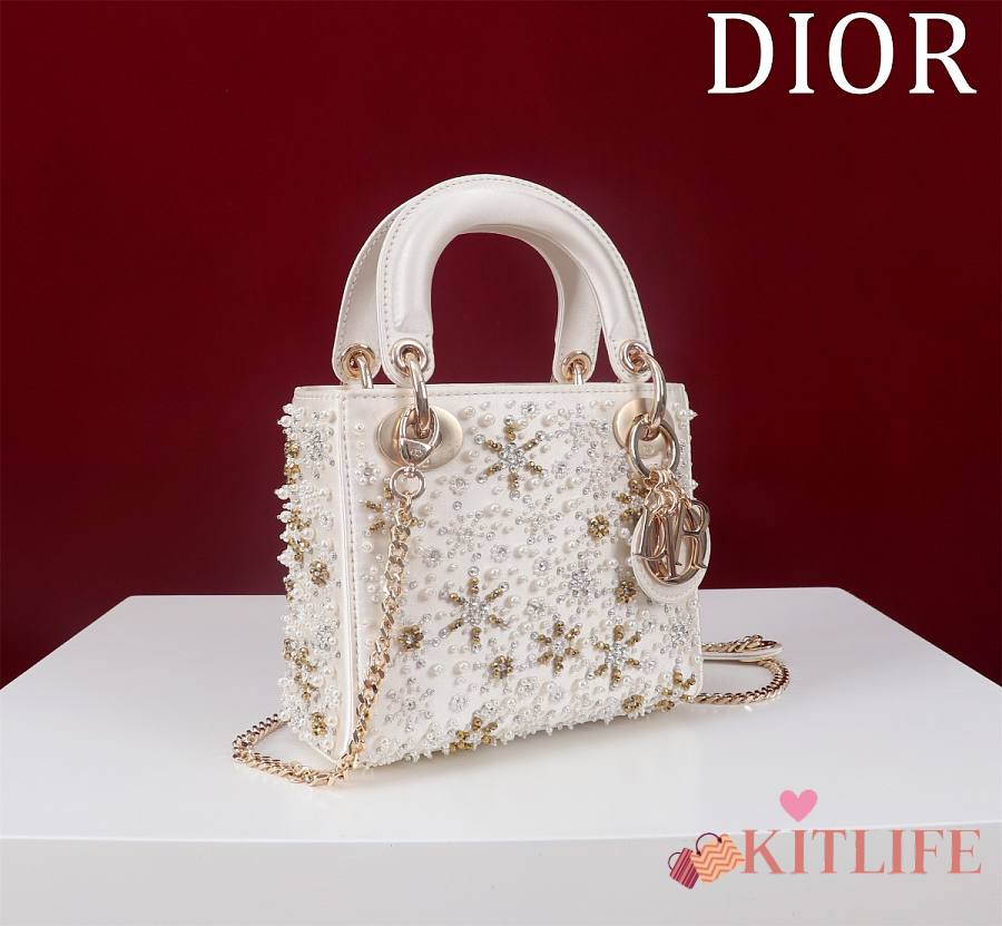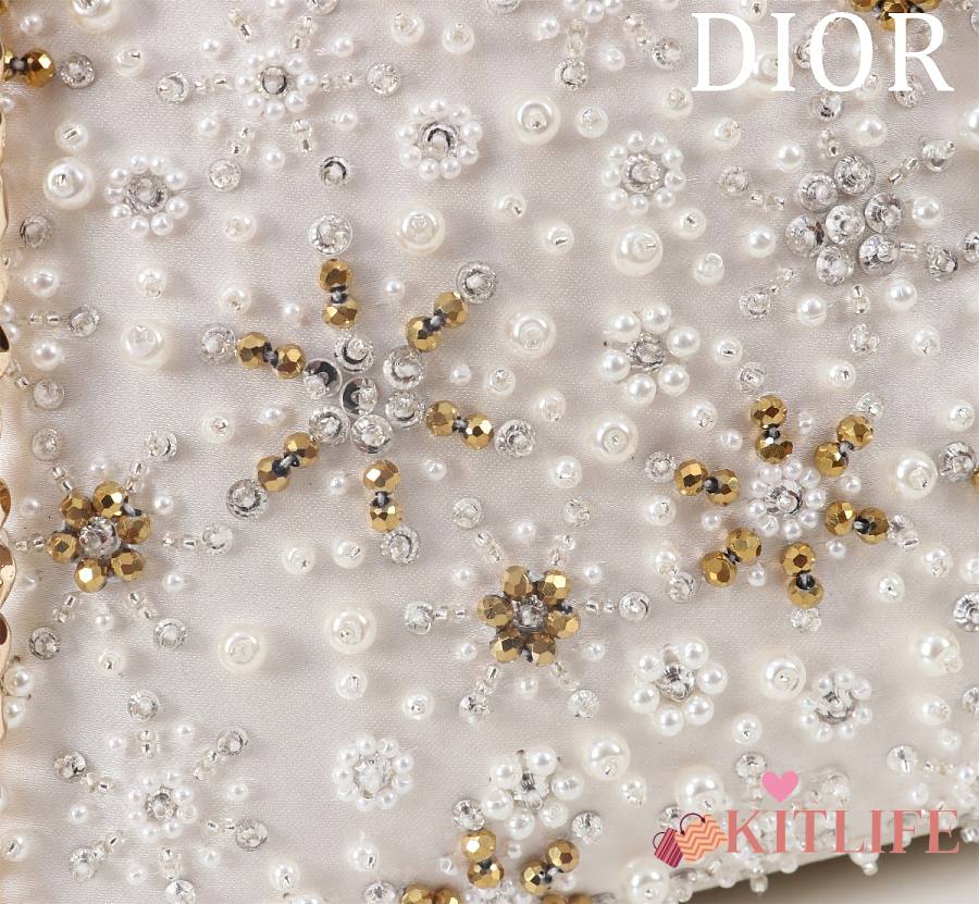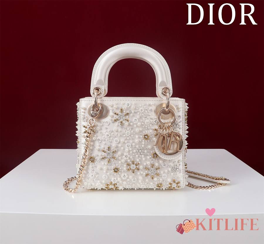 Kitlife Dior Lady Diana Three-Panel Embroidery Snowflake Pearl Bag M0505821 17x15x7cm