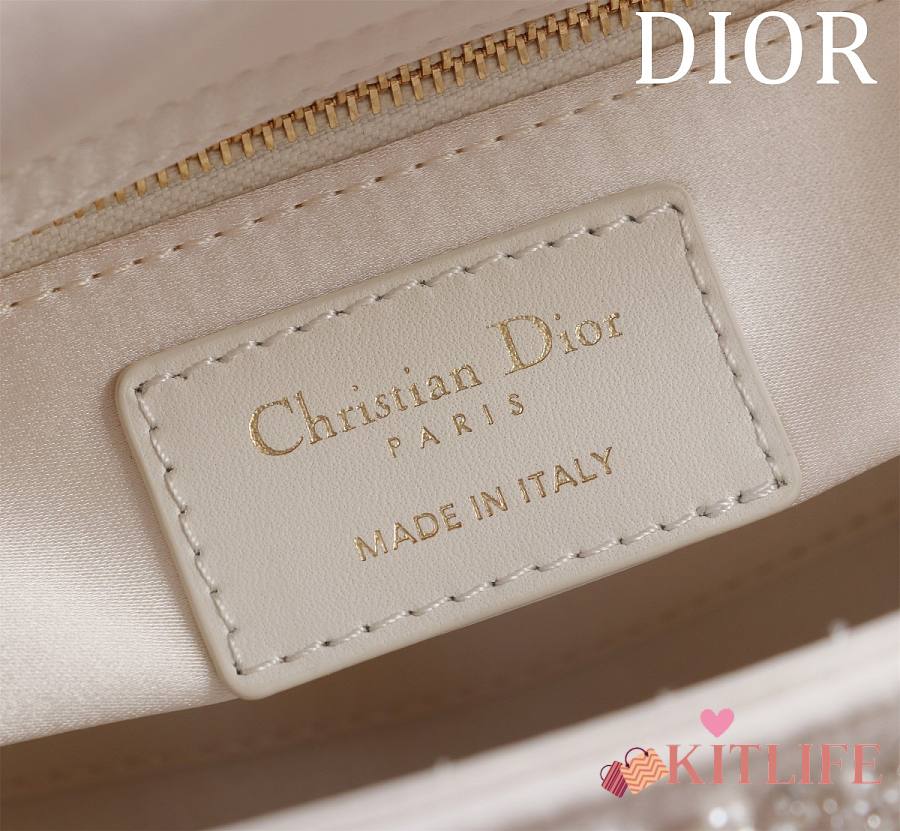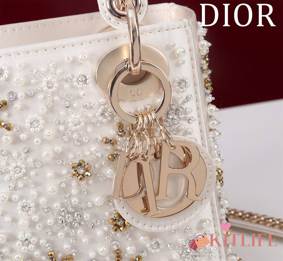 Kitlife Dior Lady Diana Three-Grid Embroidery with Diamonds and Pearls M0505811 17x15x7cm