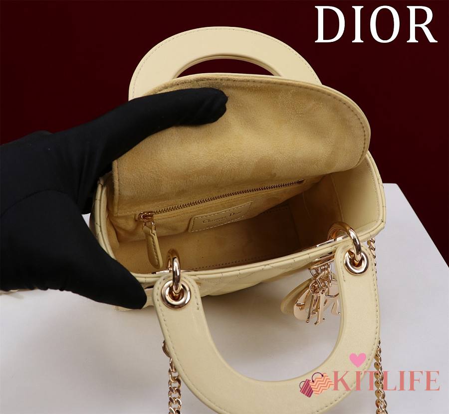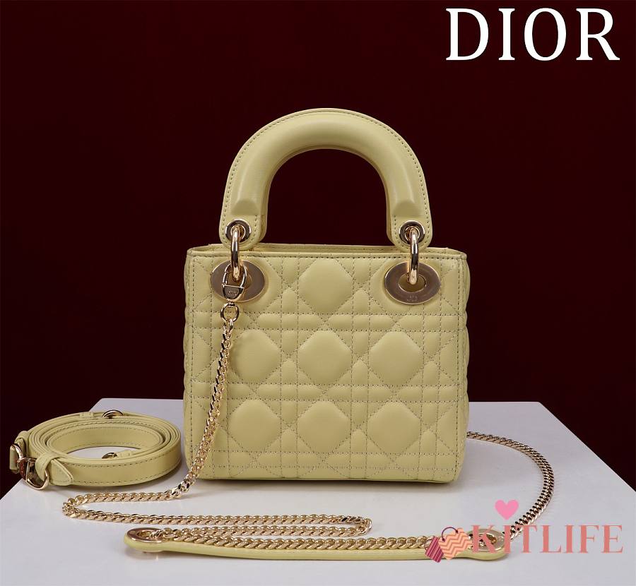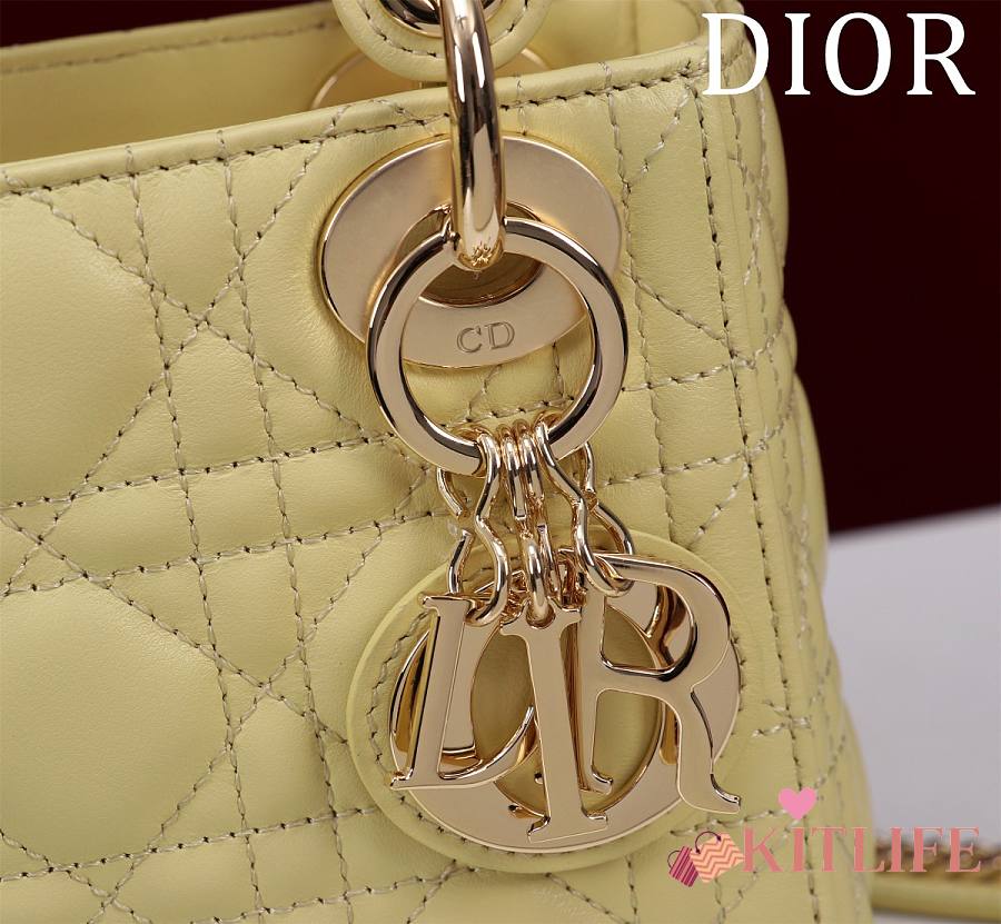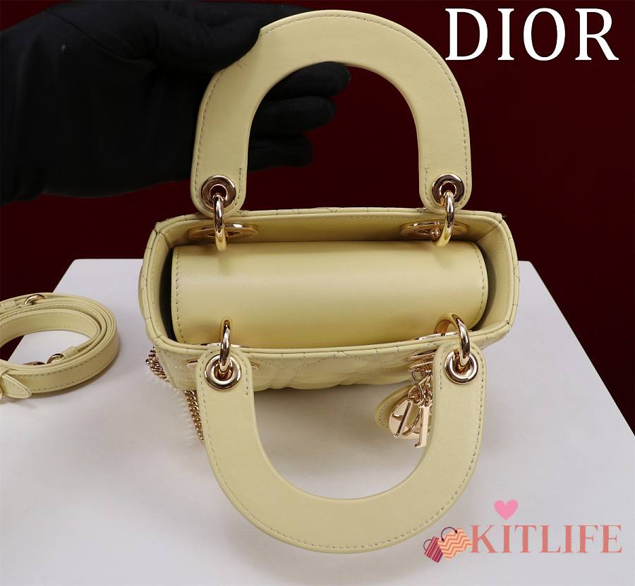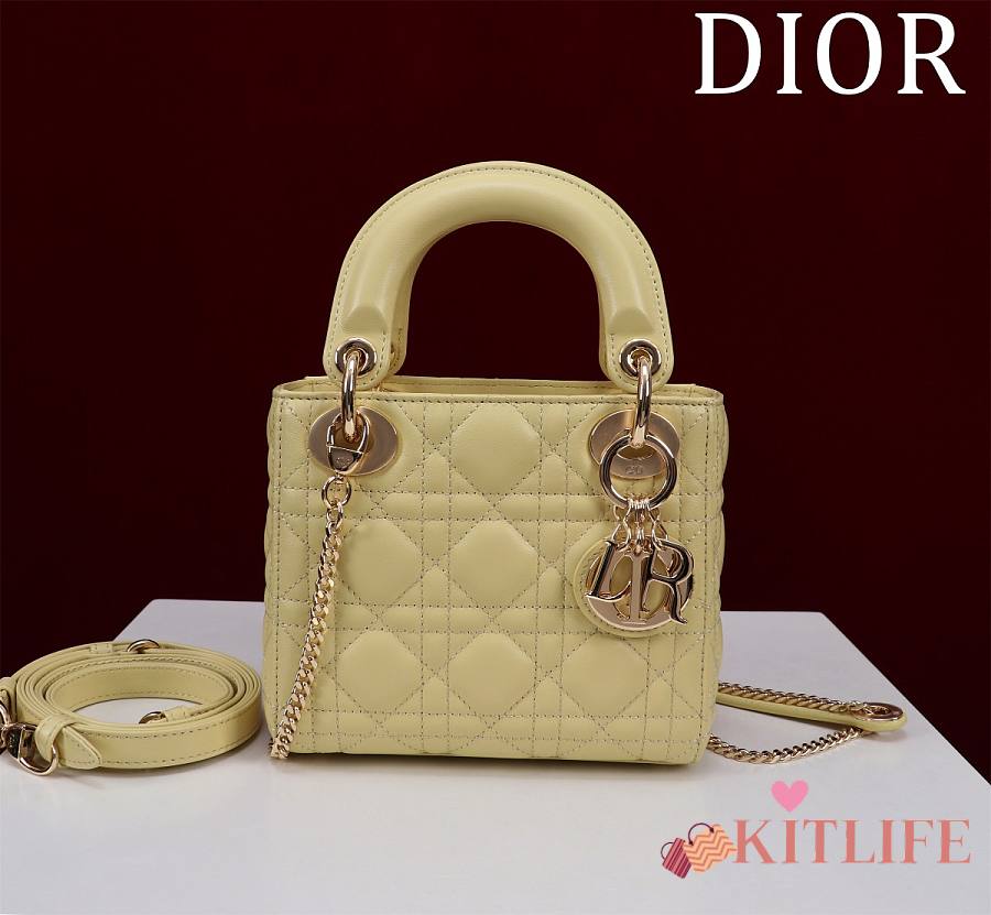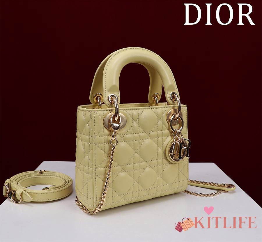 Kitlife Dior Lady Diana Yellow Leather Bag M0505 17x15x7cm