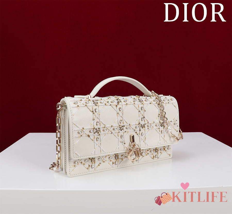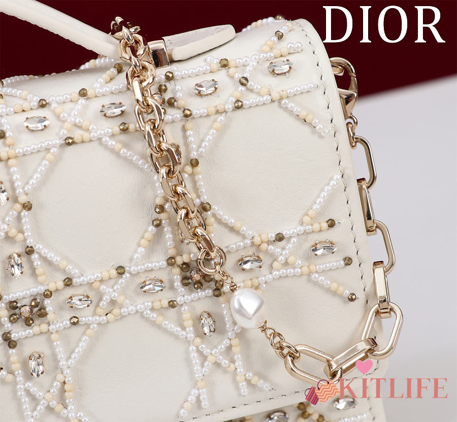 Kitlife Dior Lady Dior Pearl Clutch White 21x11.5x4.5cm