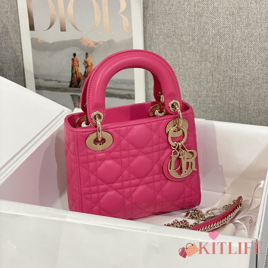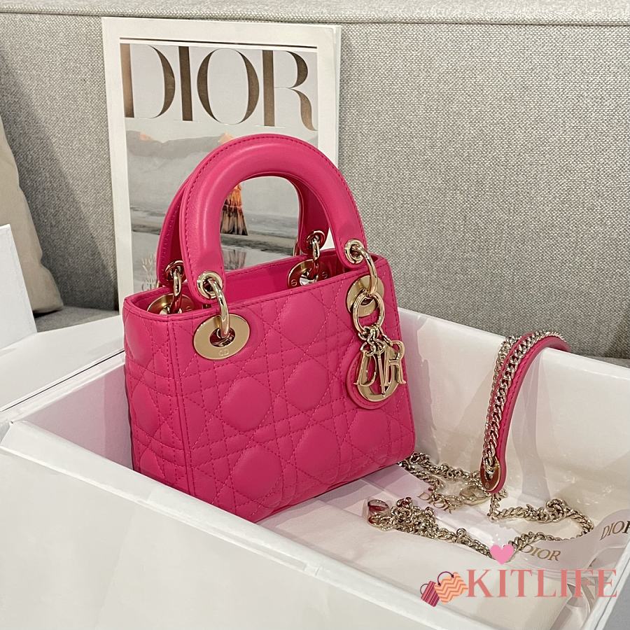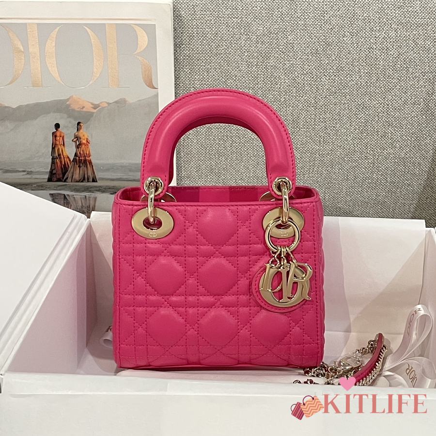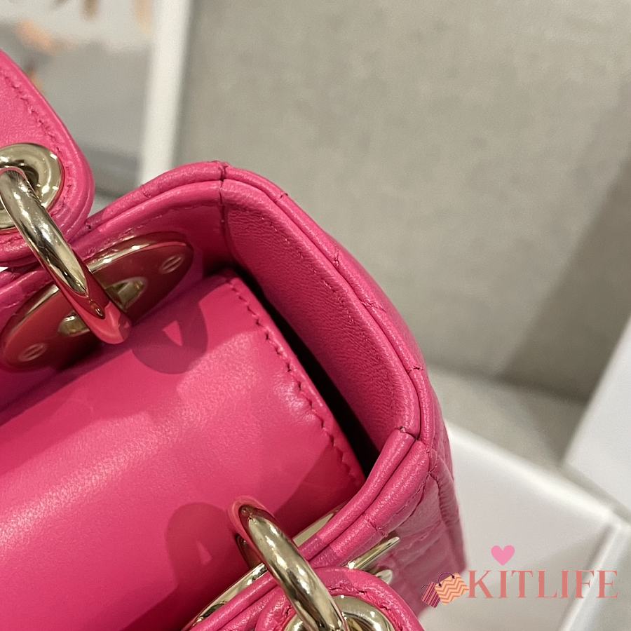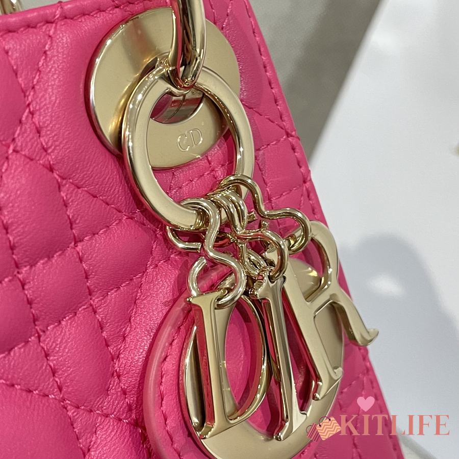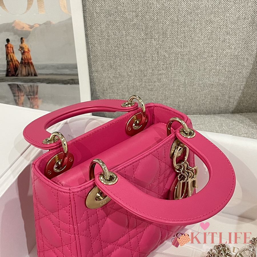 Kitlife Dior Lady Mini Bag in Pink Cannage Lambskin Leather