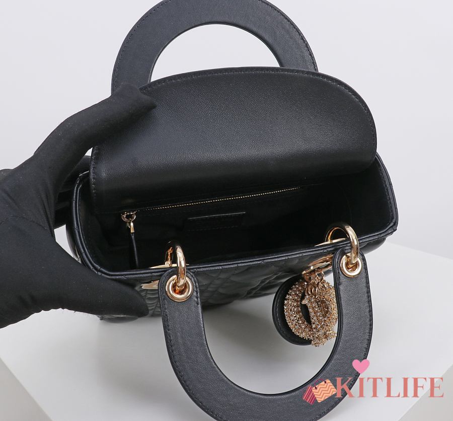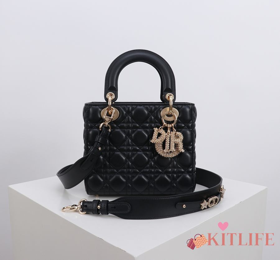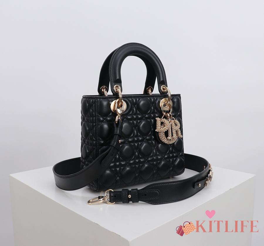 Kitlife Dior Lady Small Amour Cannage Lambskin Black - 20x16.5x8cm