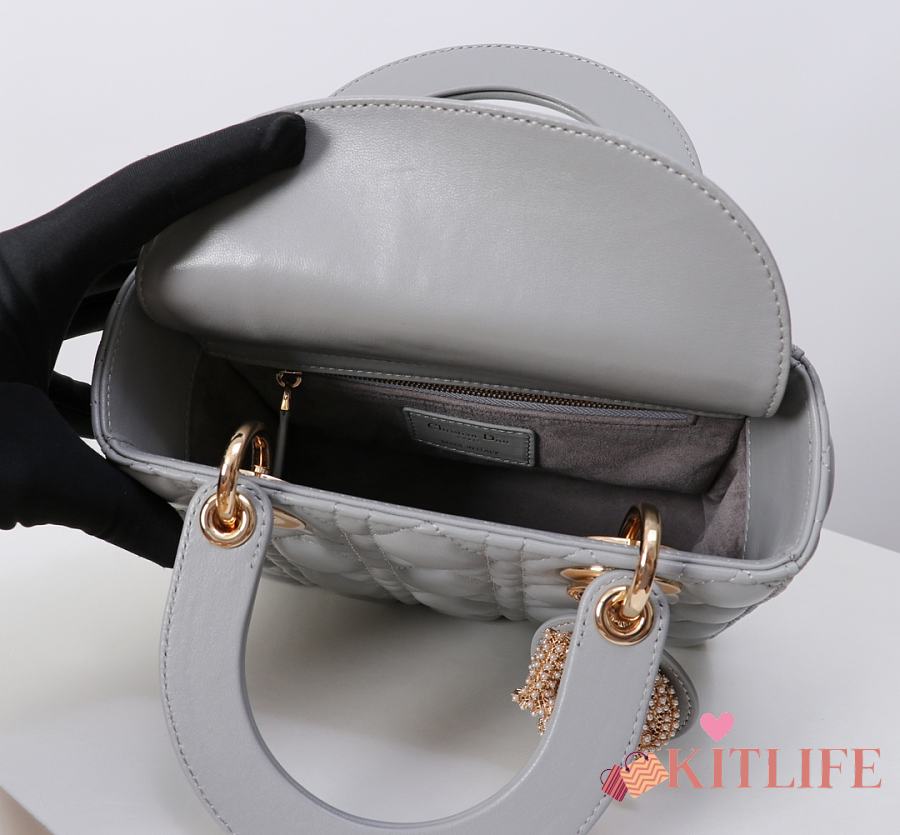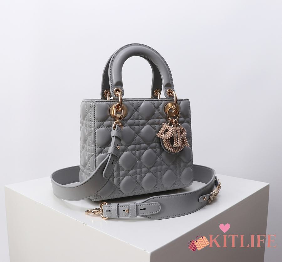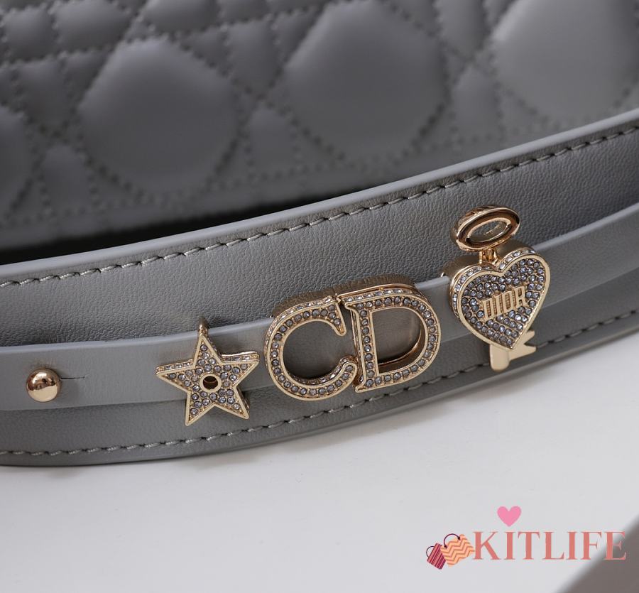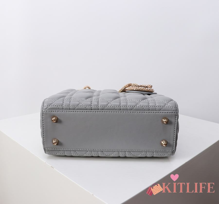 Kitlife Dior Lady My ABC Dior Pearl Buckle Bag Grey 8878 20x16.5x8cm