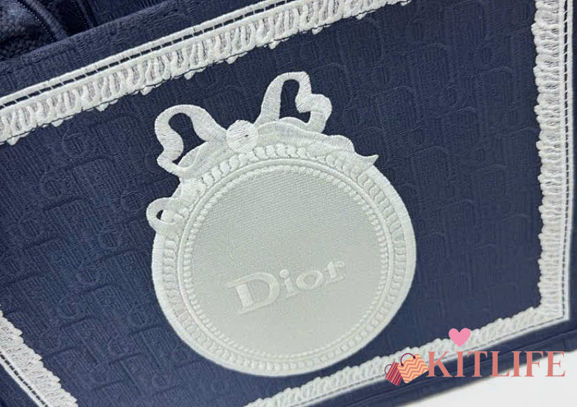 Kitlife Dior Medium Book Tote with Strap Celestial Blue Oblique Embroidery with White Lace and Dior Médaillon 36x27.5x16.5cm