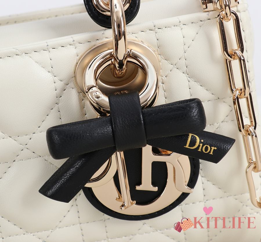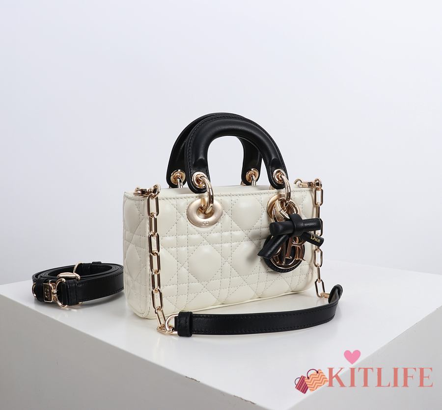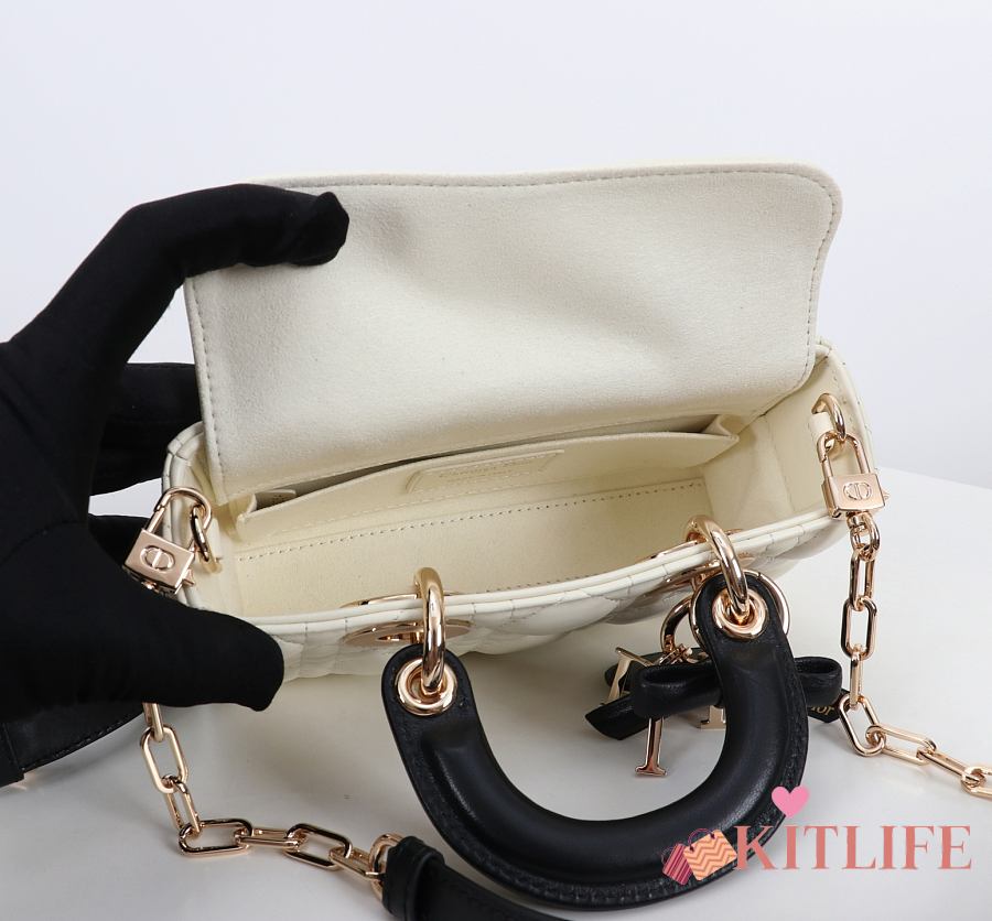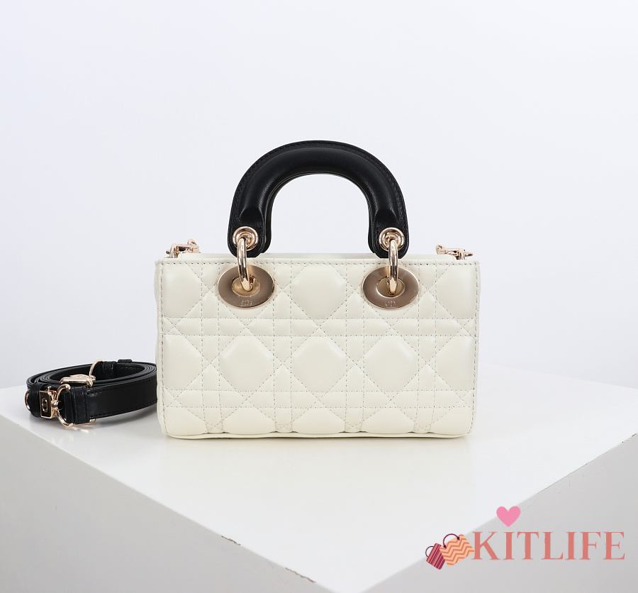 Kitlife Dior Micro Lady D-Joy Bag Two-Tone Latte and Black Cannage Lambskin 16x9x5cm