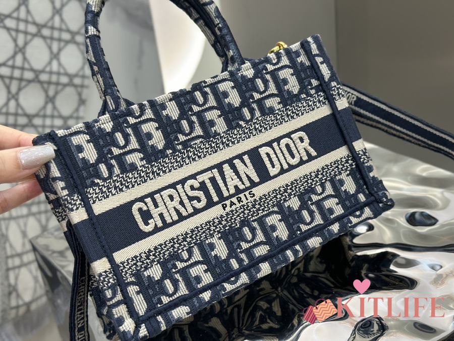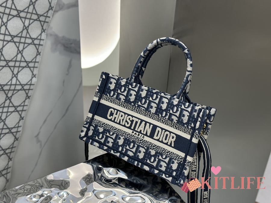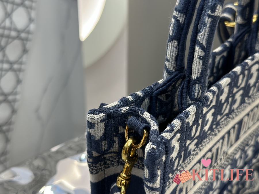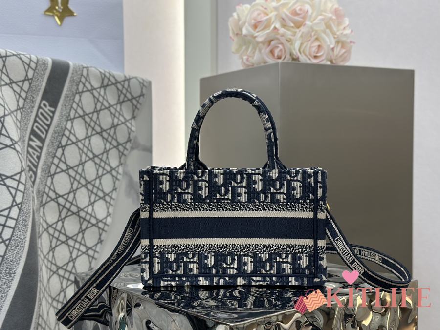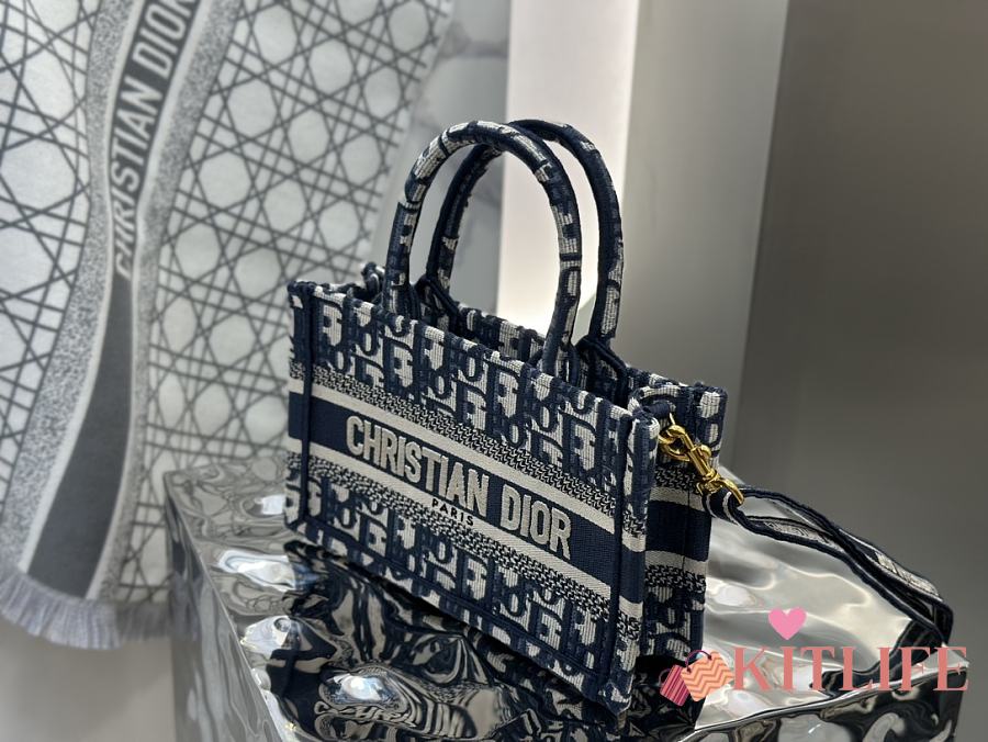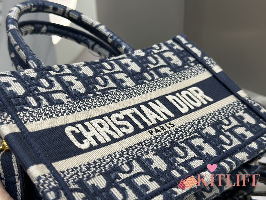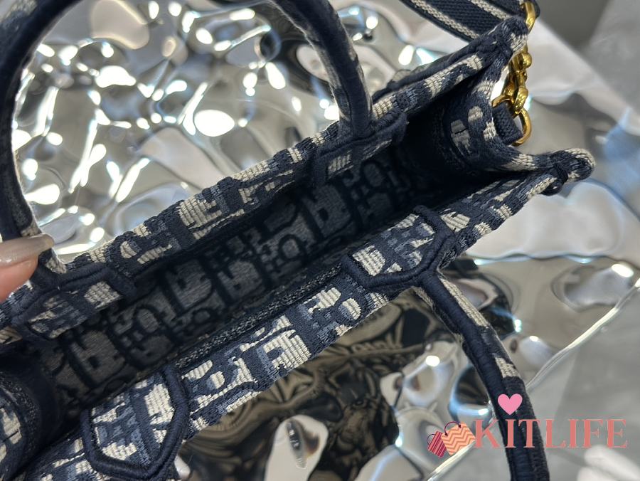 Kitlife Dior Mini Book Tote Blue Dior Oblique Embroidery 21.5x13x7.5cm