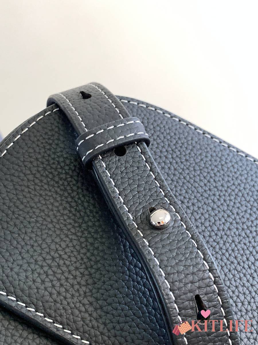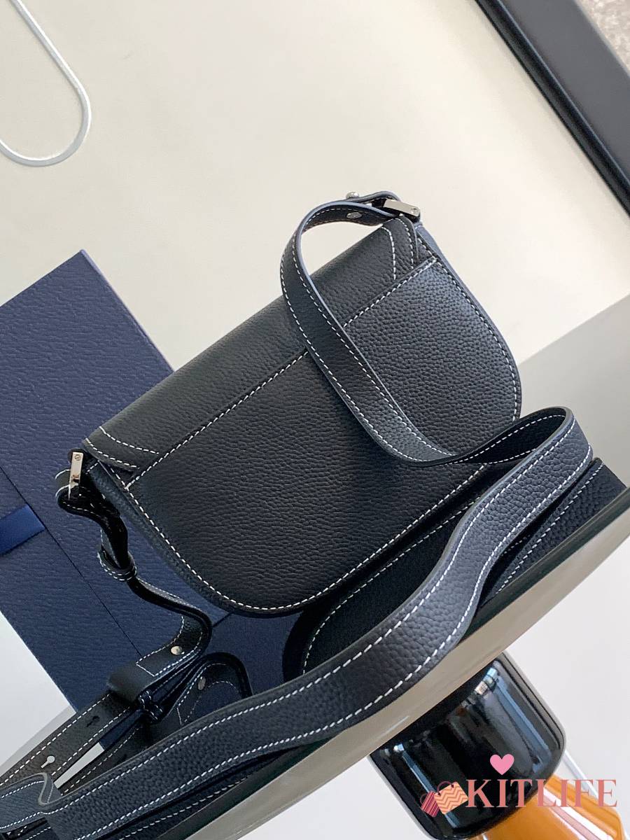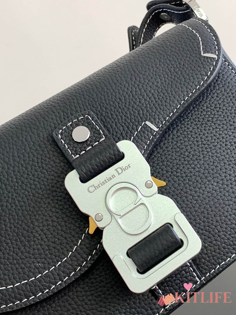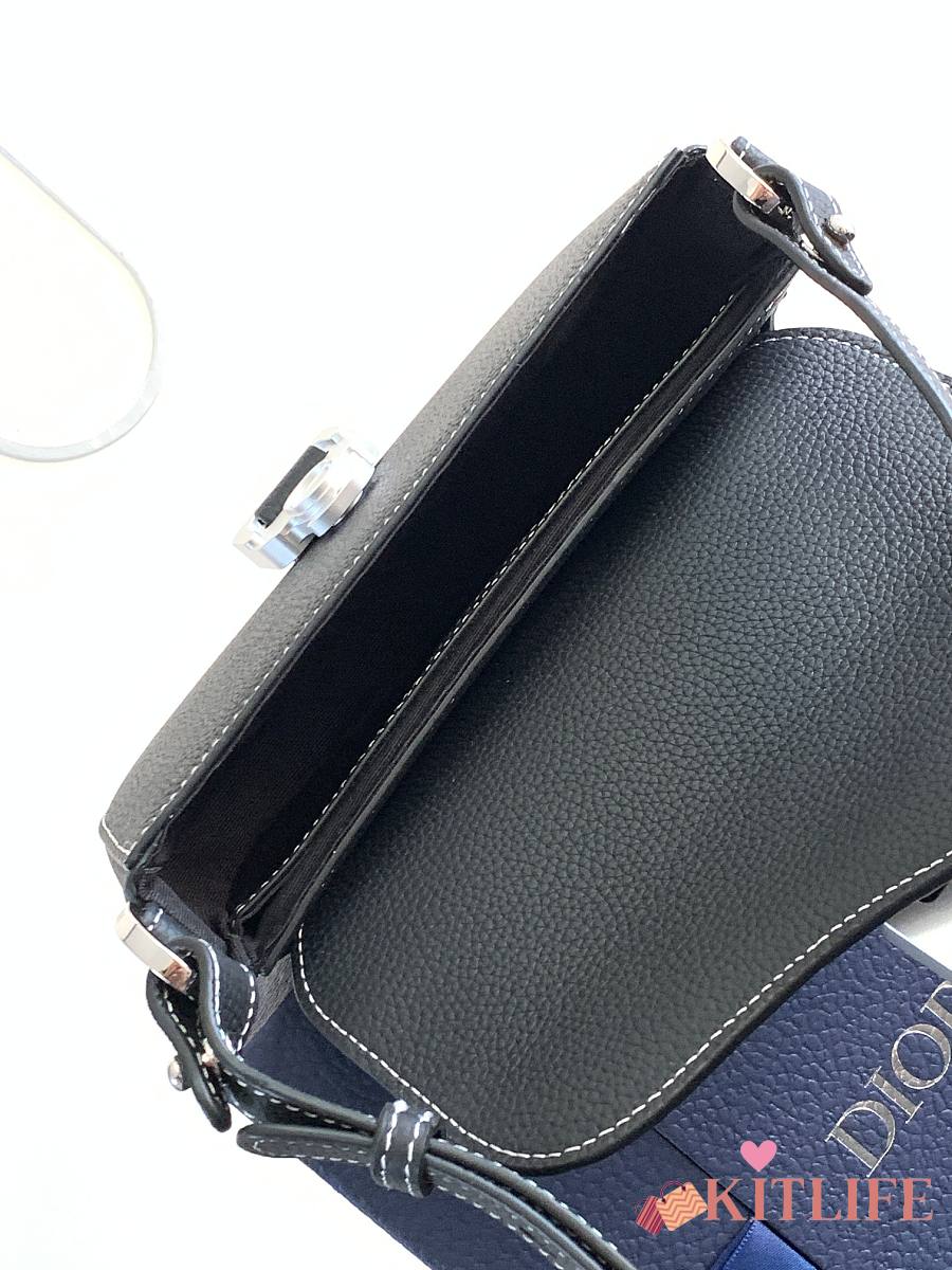 Kitlife Dior Mini Saddle Messenger Bag with Flap Black Grained Calfskin 20x13.5x5.5cm