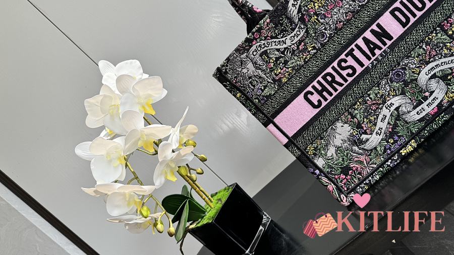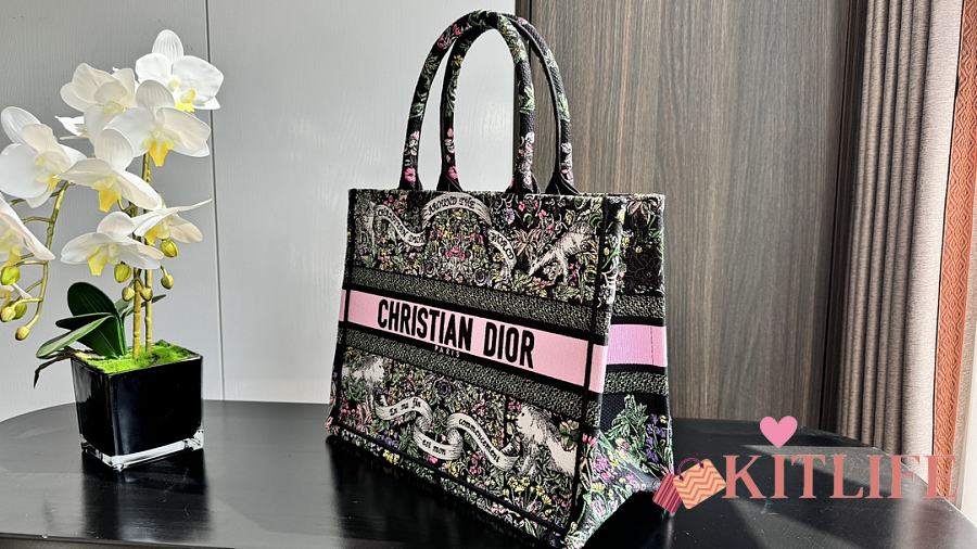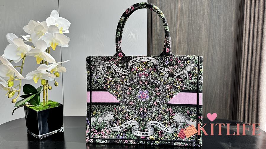Kitlife Dior Medium Book Tote White Multicolor Dior Jardin Botanique Embroidery - 36x18x28cm