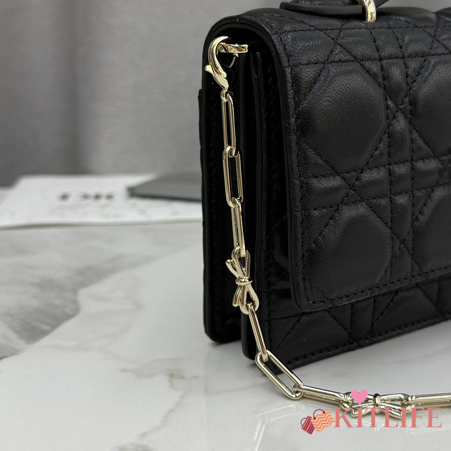 Kitlife Dior Lady Top Handle Black Bag - 25x17x9cm