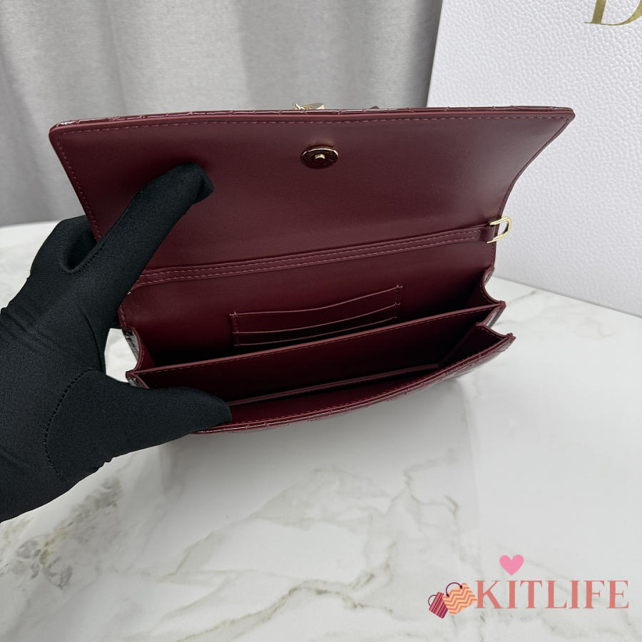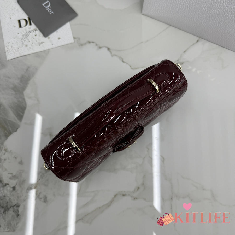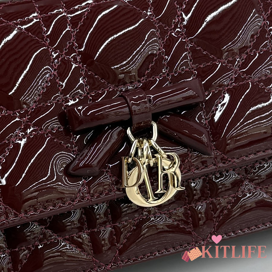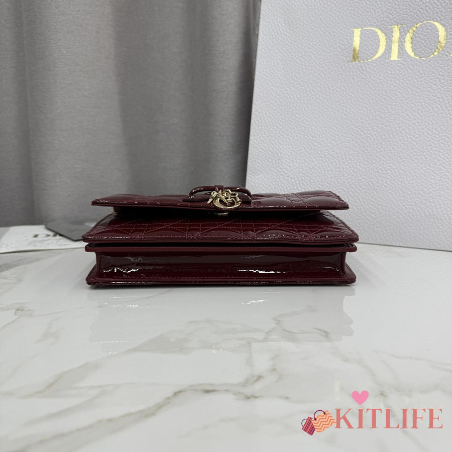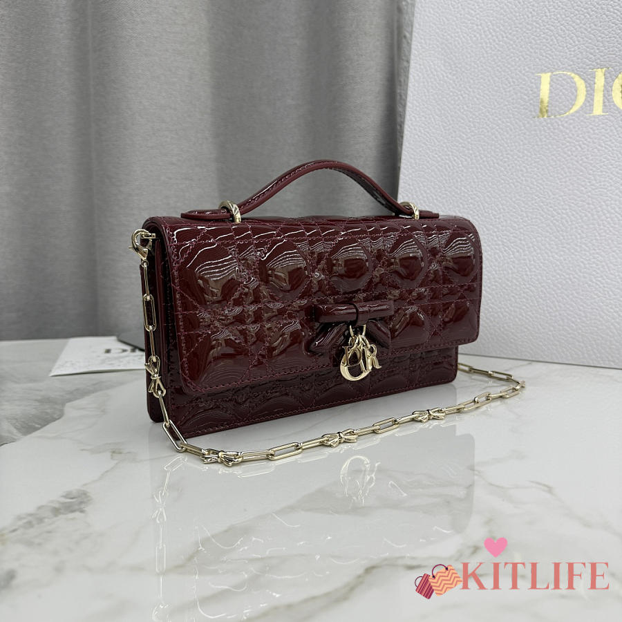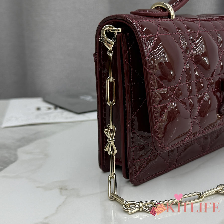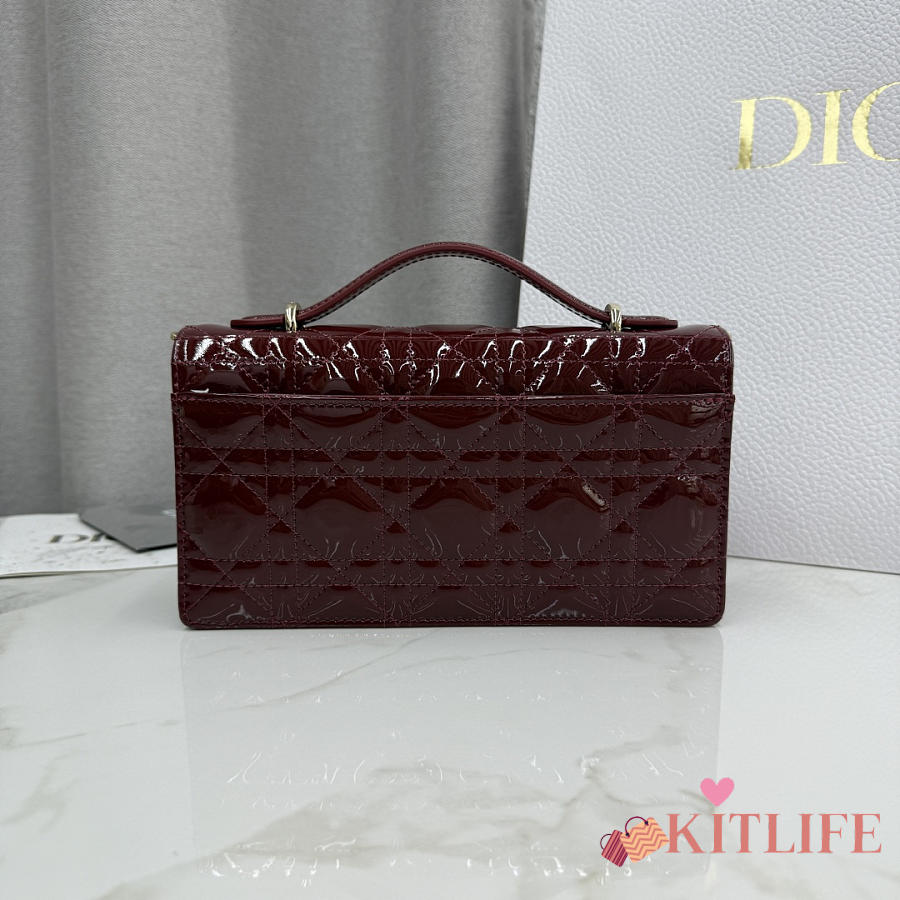 Kitlife Dior My Dior Mini Bag Burgundy Cannage Patent Leather 21x11.5x4.5cm