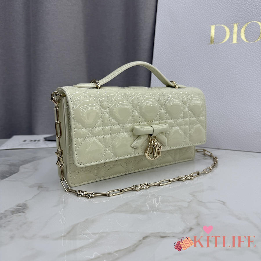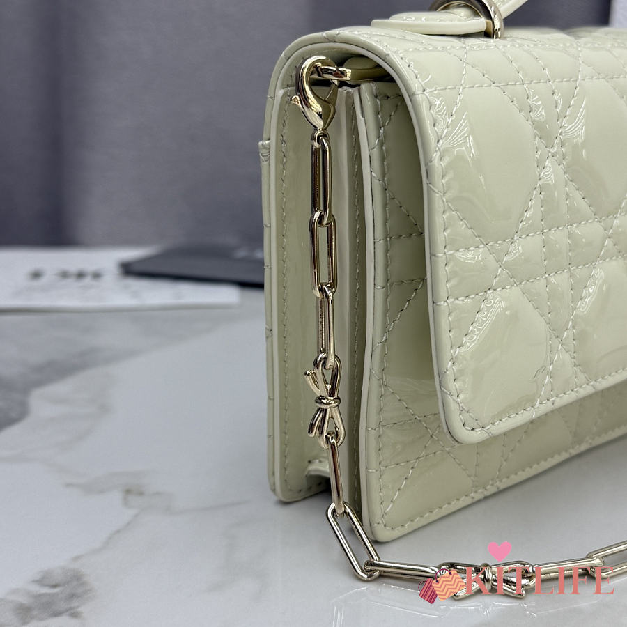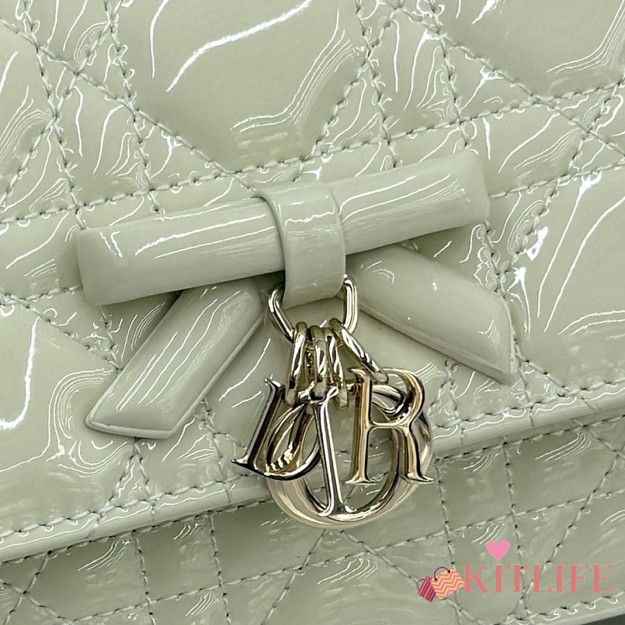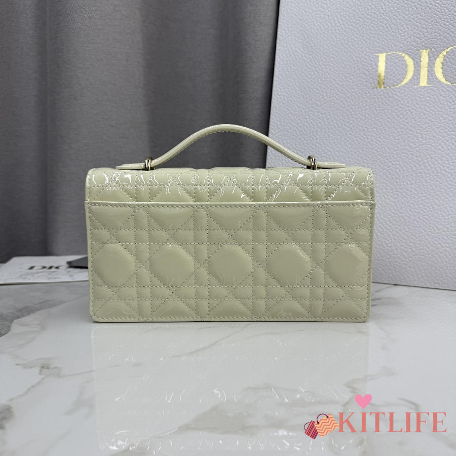 Kitlife Dior My Dior Mini Bag Light Green Cannage Patent Leather 21x11.5x4.5cm