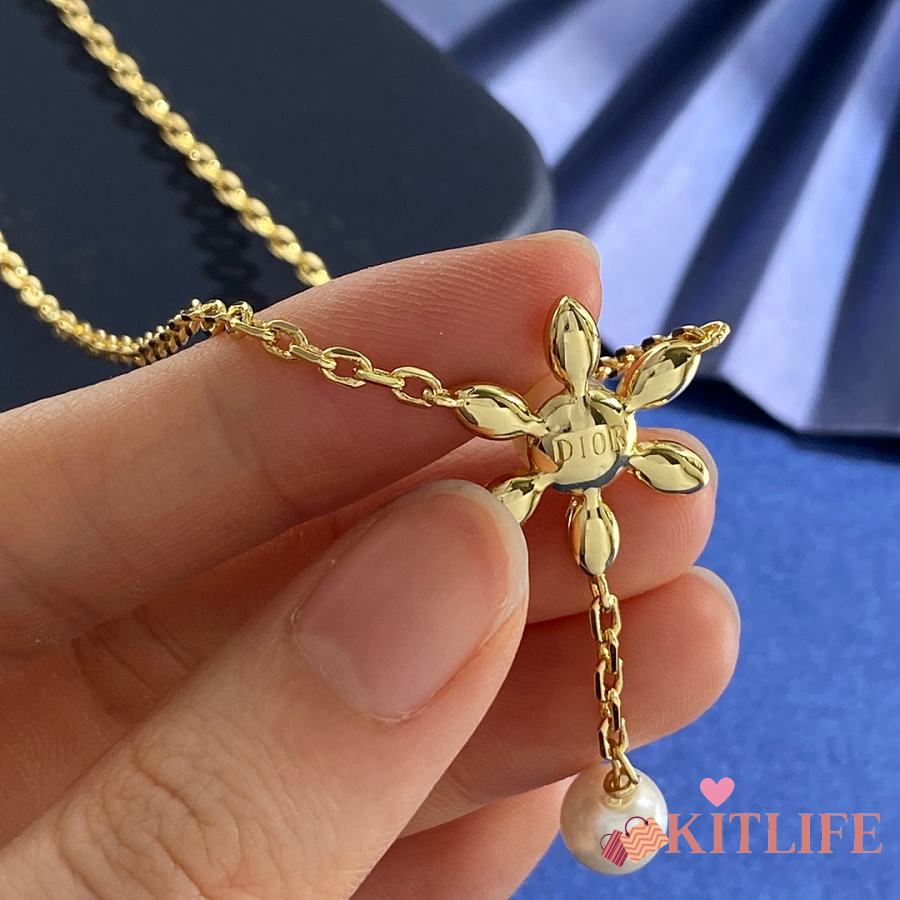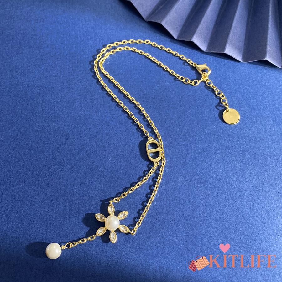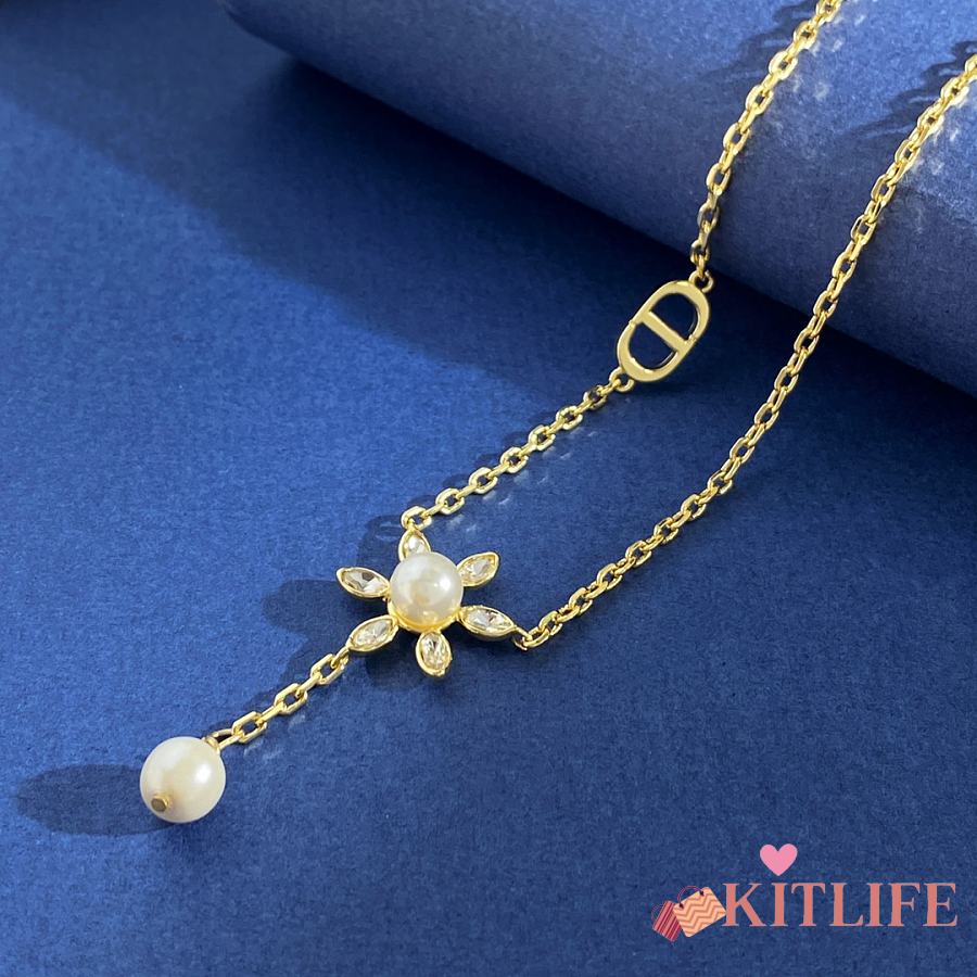 Kitlife Dior Necklace With Diamonds, Zircon, Sunflower Pearls, and CD Letters
