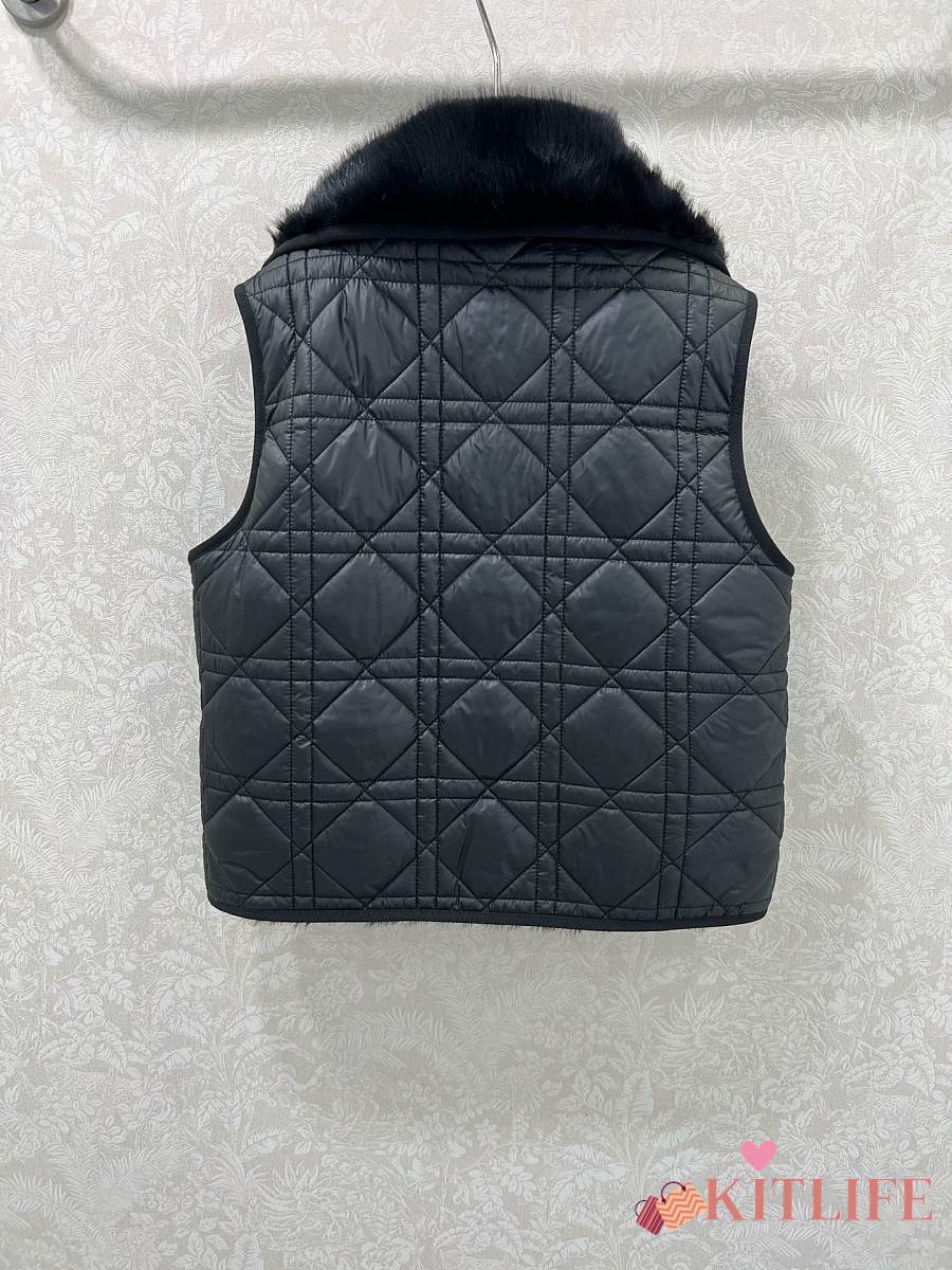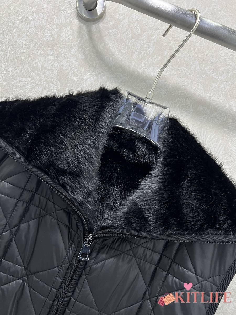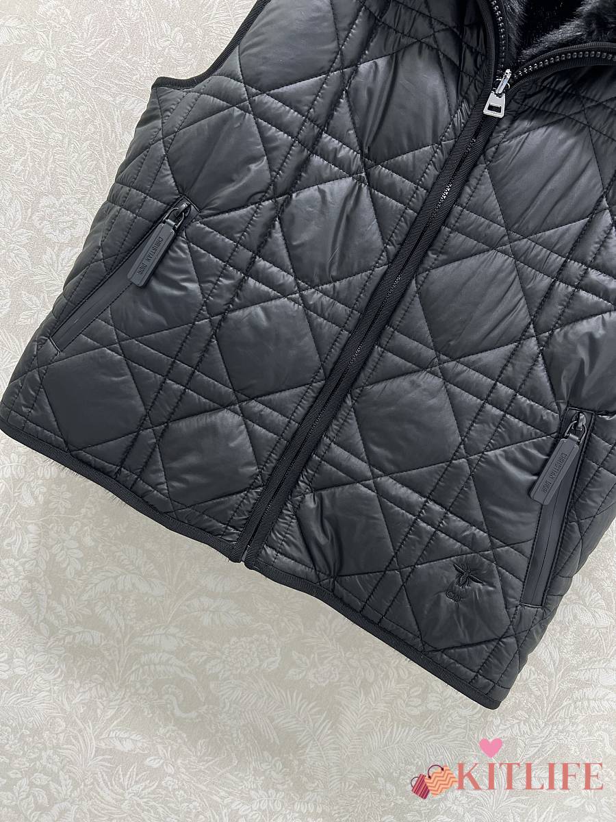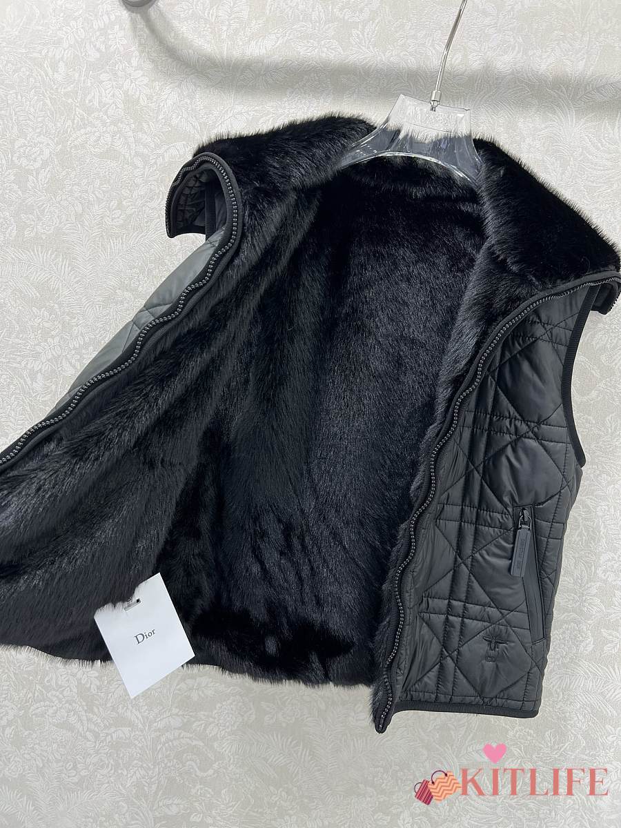 Kitlife Dior Quilted Reversible Eco-Fur Vest Black