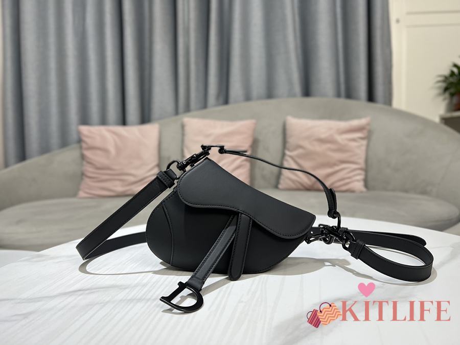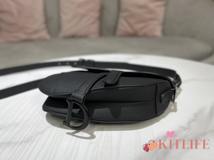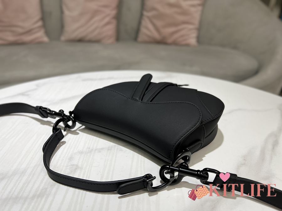 Kitlife Dior Saddle Bag with Strap Black Ultramatte Calfskin M9001 25.5x20x6.5cm