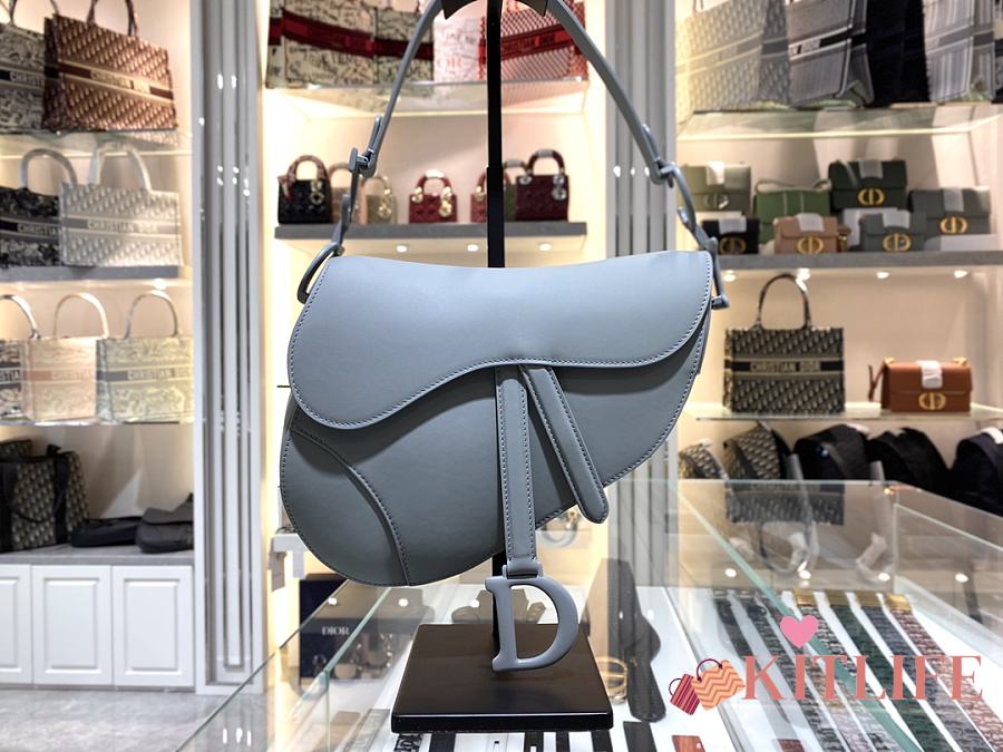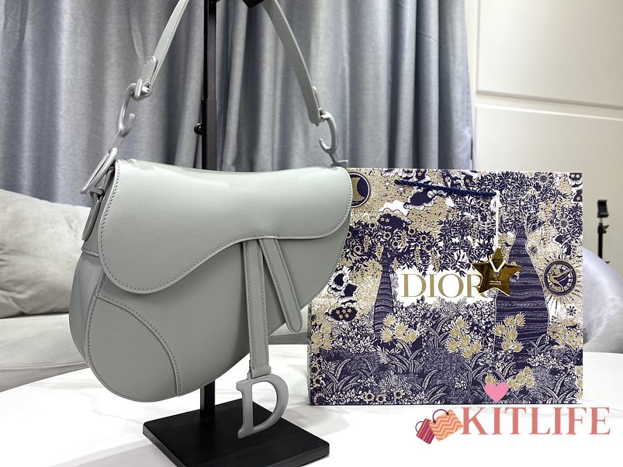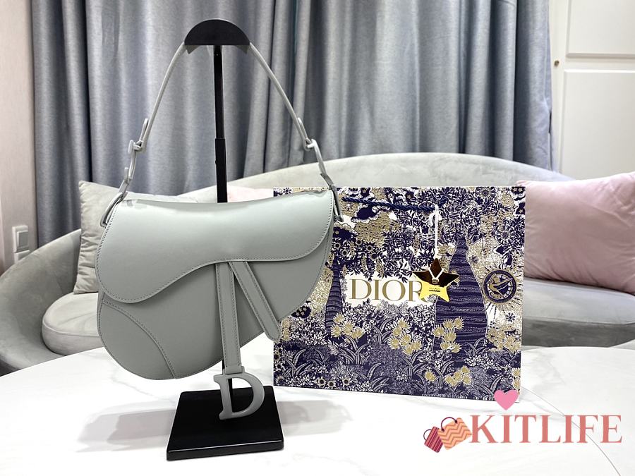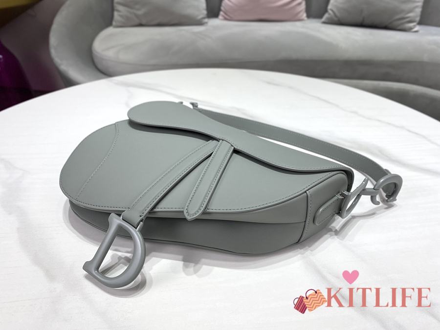 Kitlife Dior Saddle Bag with Strap Grey Ultramatte Calfskin M9001 25.5x20x6.5cm