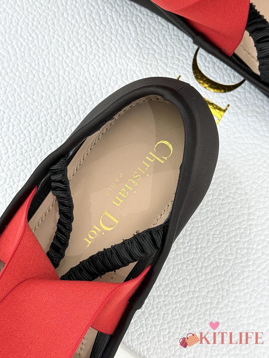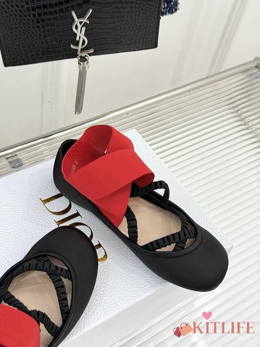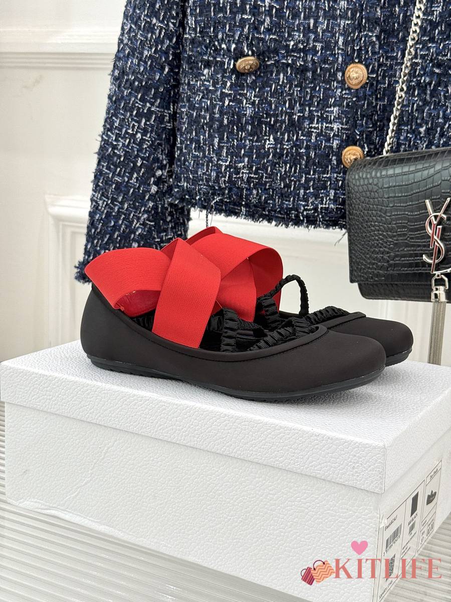 Kitlife Dior Shade Black Leather Ballerinas With Red Elastic Bands