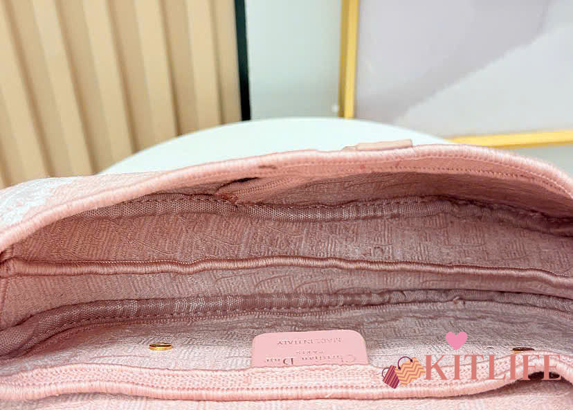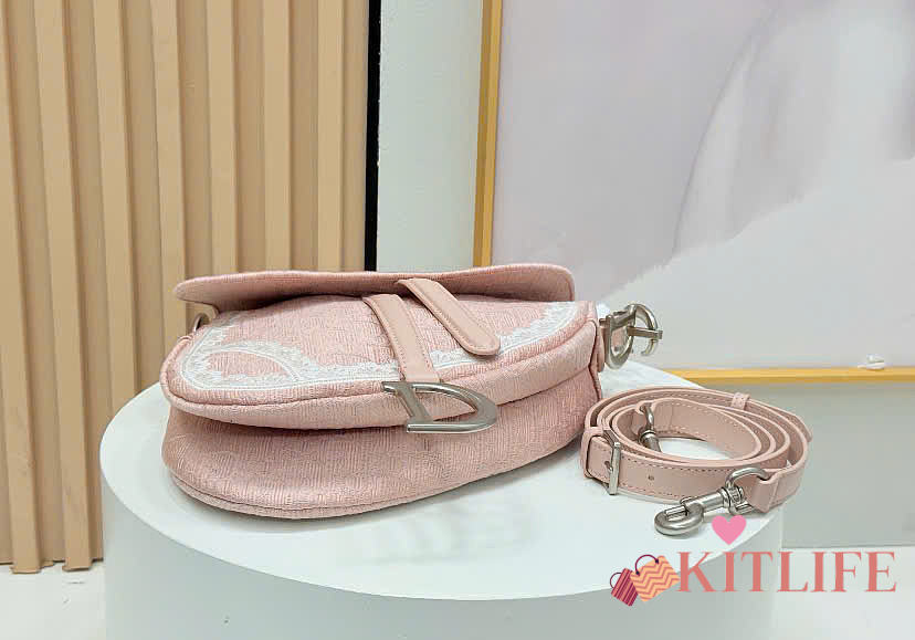 Kitlife Dior Small Saddle Bag with Strap Rose Soupir Dior Oblique Embroidery and White Lace 20x16x5cm
