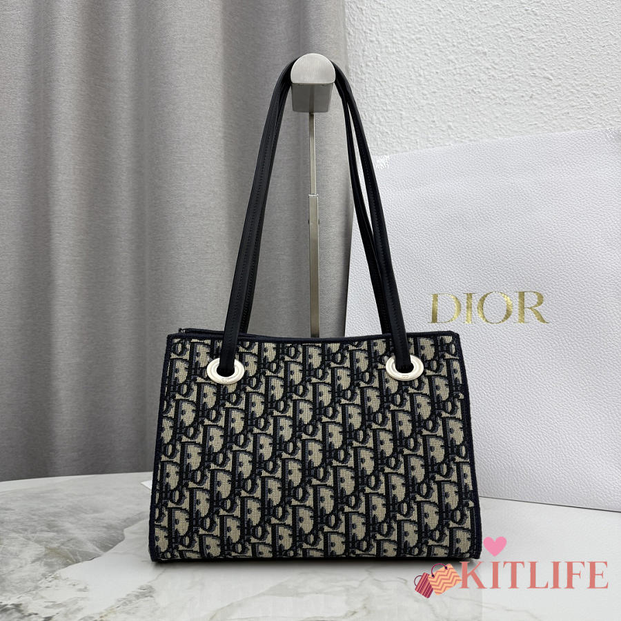 Kitlife Dior Small Shopping Bag Blue Dior Oblique Jacquard M1410 27x19x13.5cm