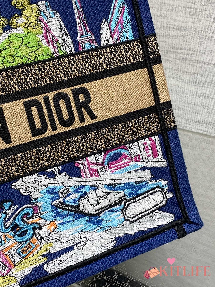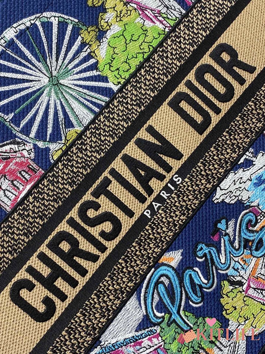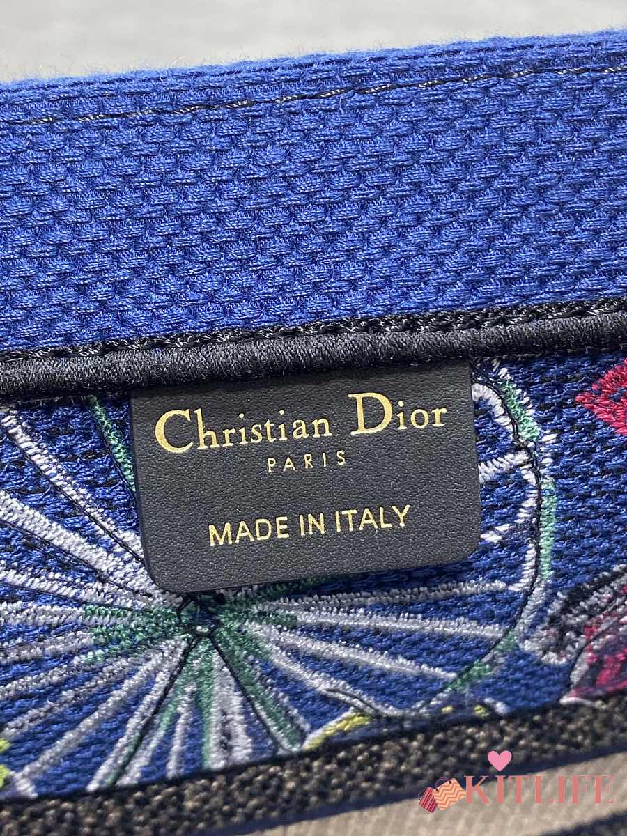 Kitlife Dior Souvenir Medium Dark Blue Natural Raffia And Multicolor Book Tote 36x18x28cm