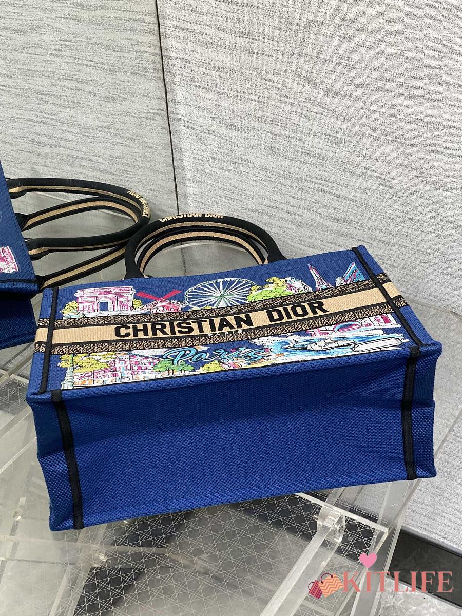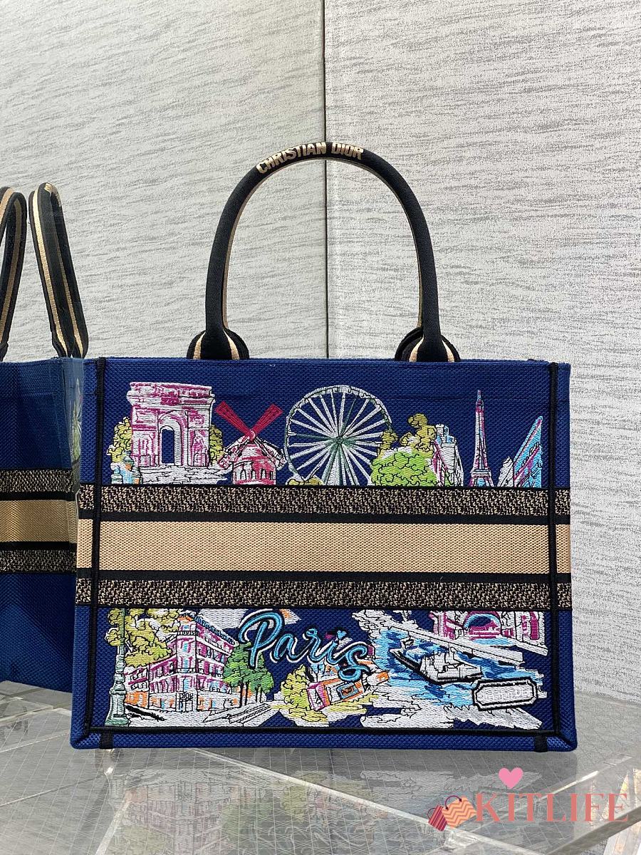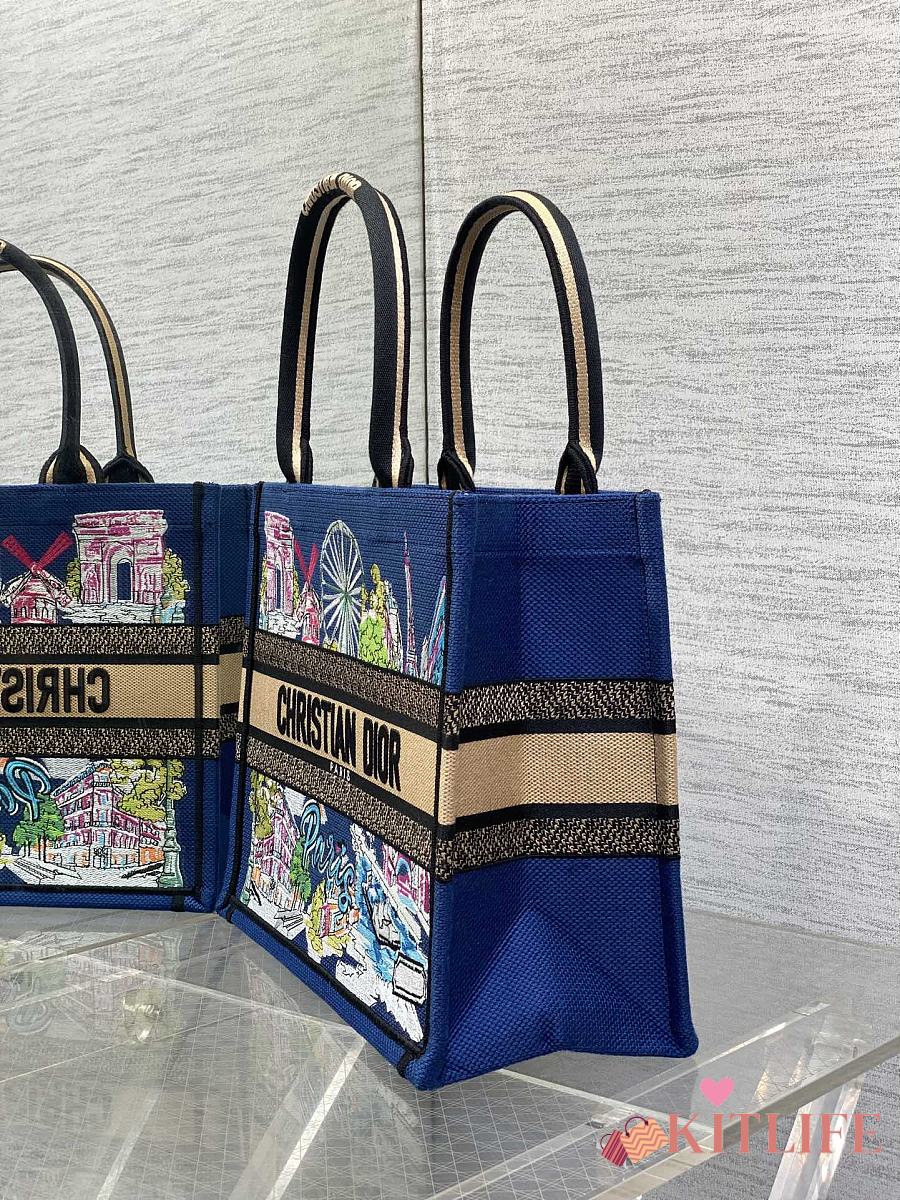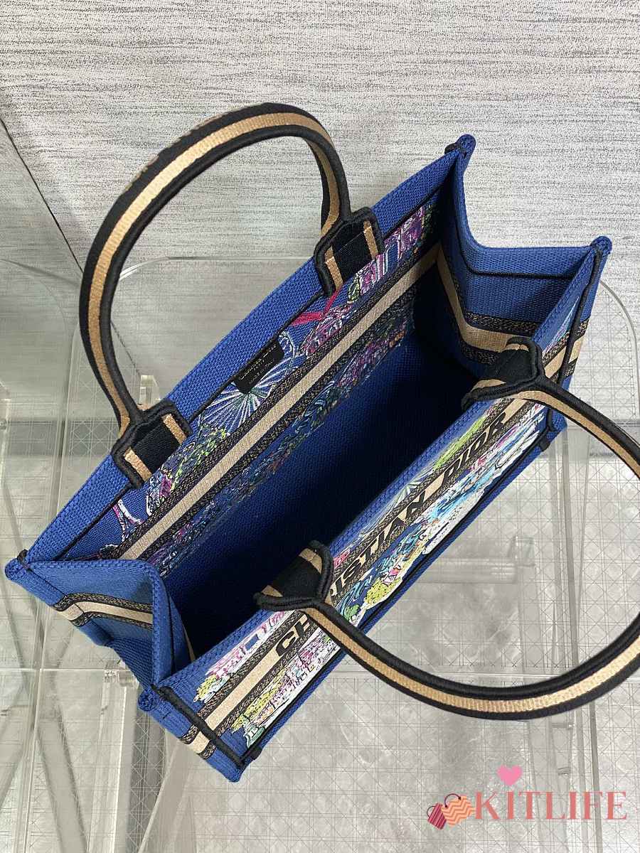 Kitlife Dior Space Blue and White Palms Jouy Embroidery Medium Book Tote 36x27.5x16.5cm
